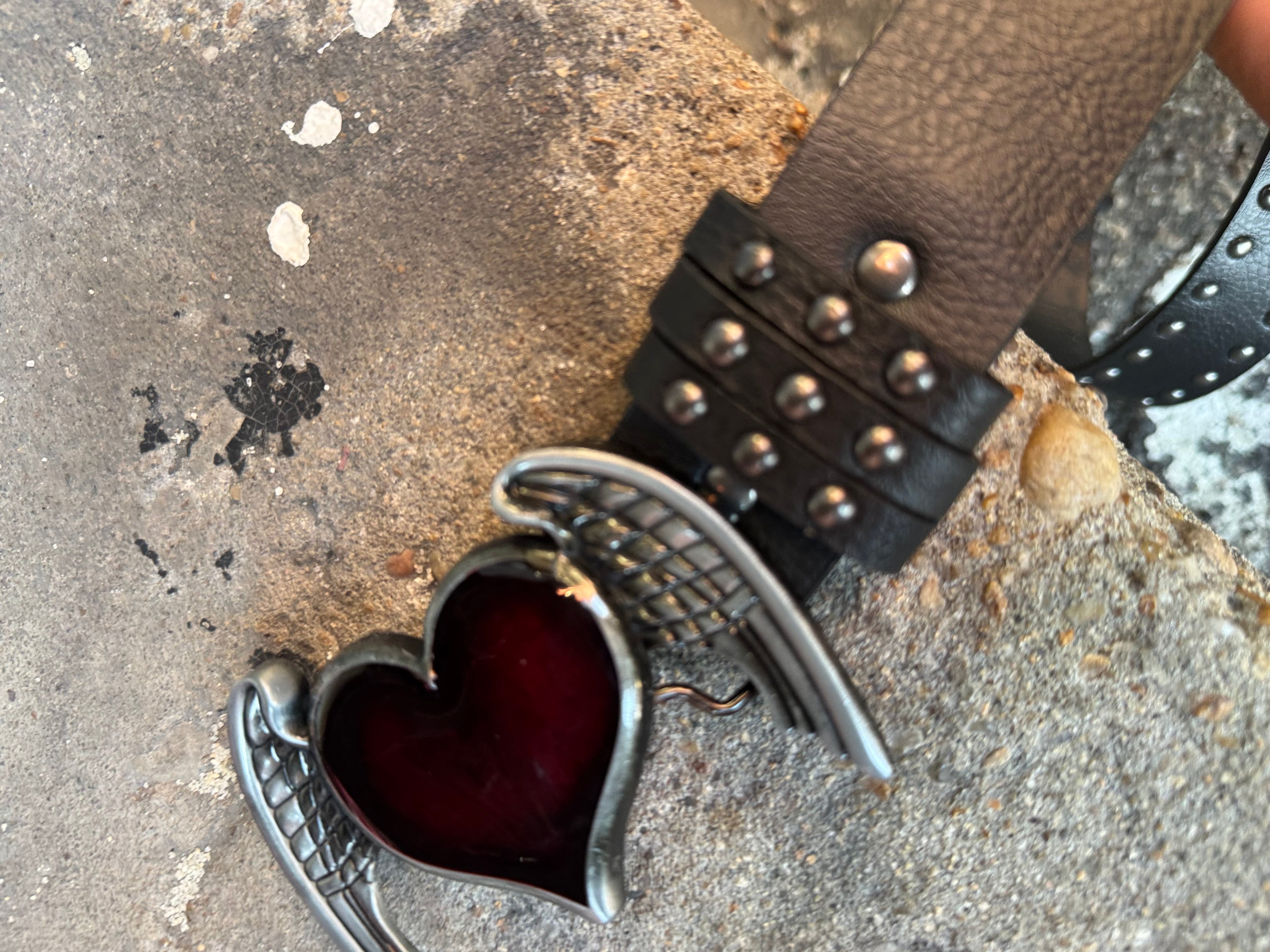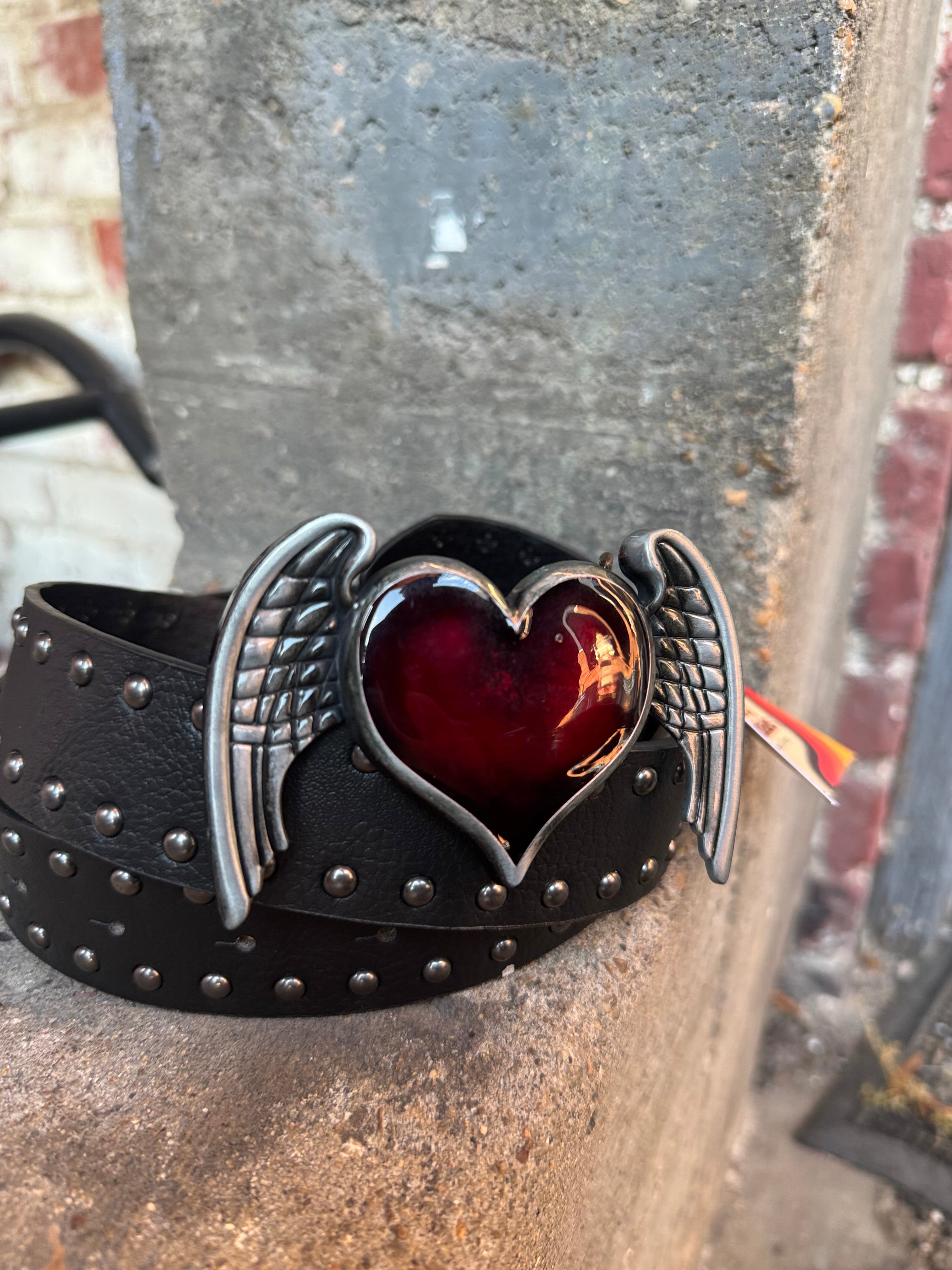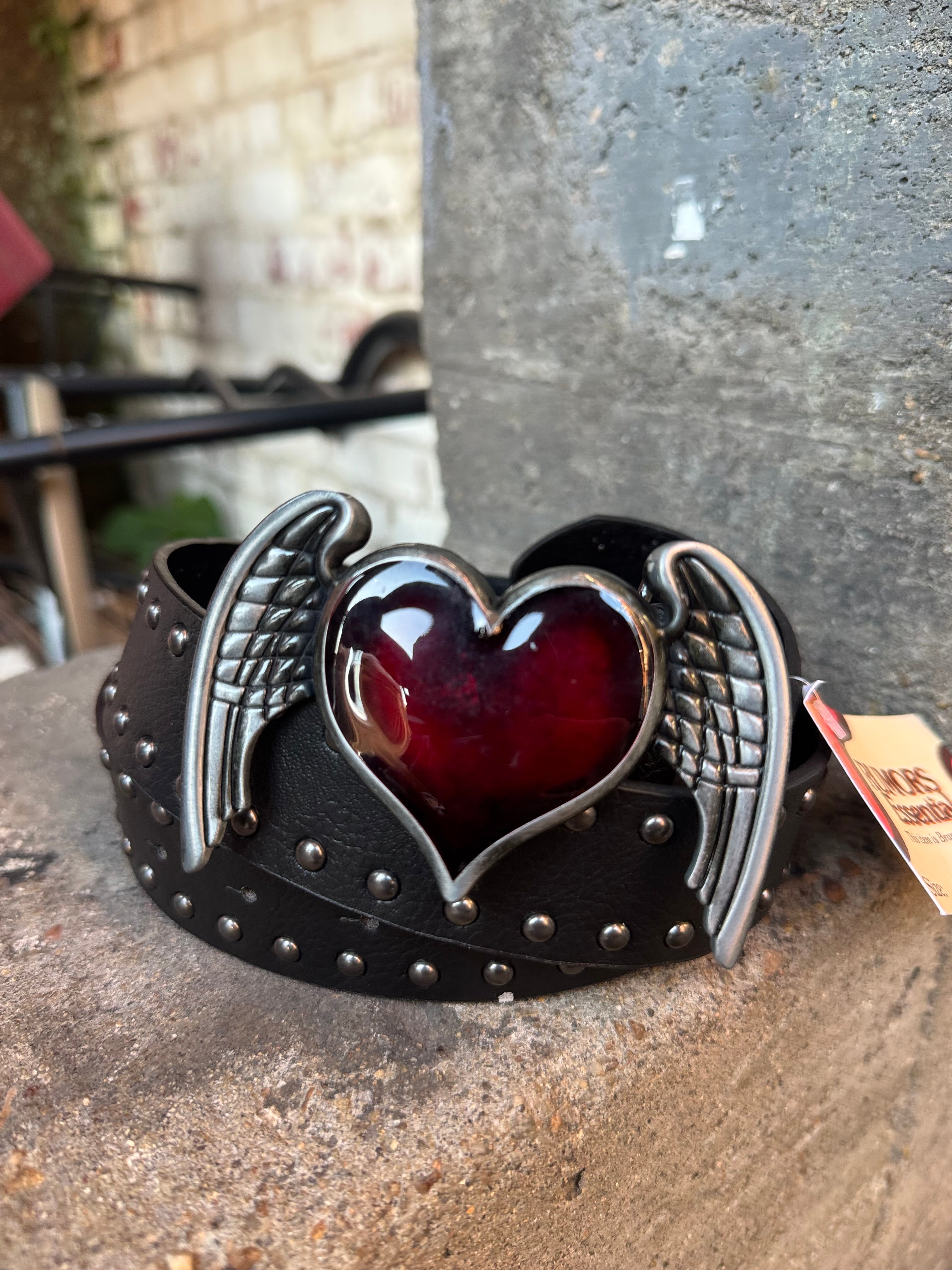 Winged Heart Faux Leather Studded Belt