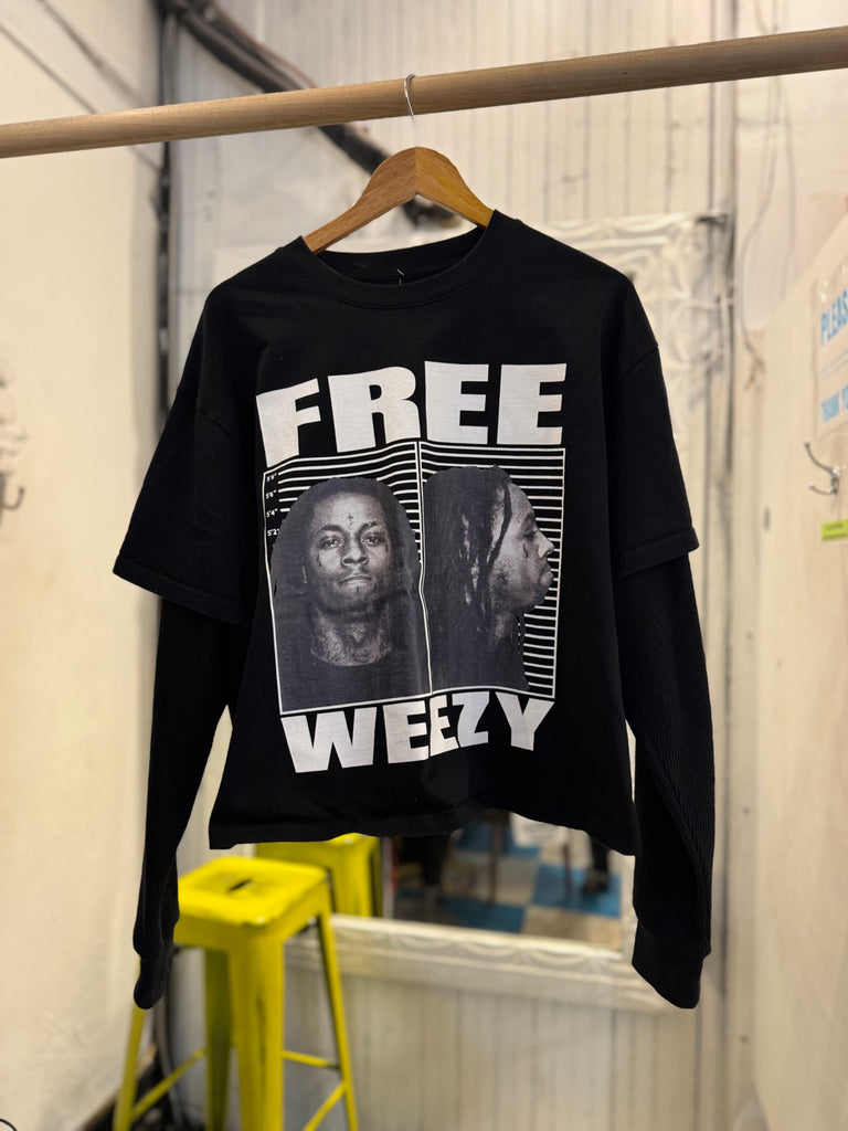 “FREE WEEZY” Thermal Layered Band Tee Size S