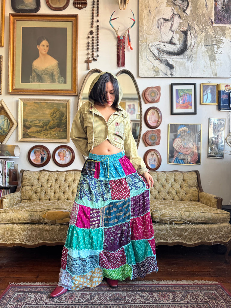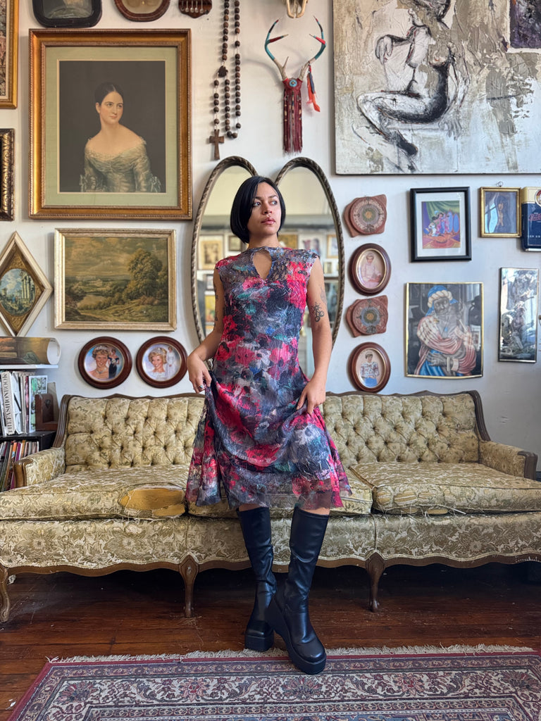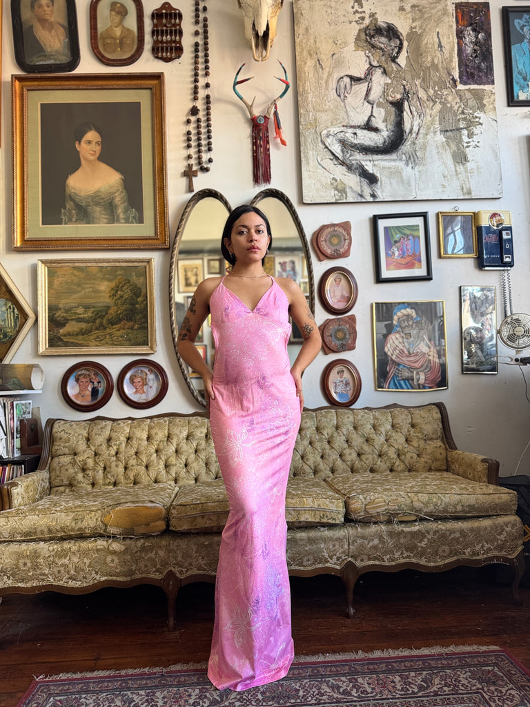 Y2k Angie Black Pink Ornate Print Sequined Midi Skirt Size S