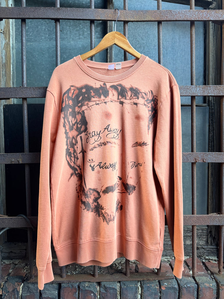 One of a Kind Vintage Bright Pink Neon Patchwork Crewneck Sweatshirt Ladies Large