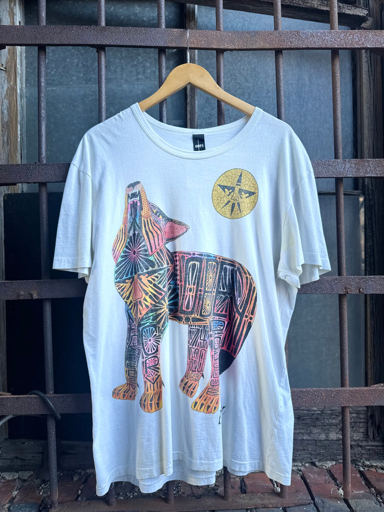 90s Vintage Six Flags Amusement Park Black Sweatshirt with Neon Text Mens Large