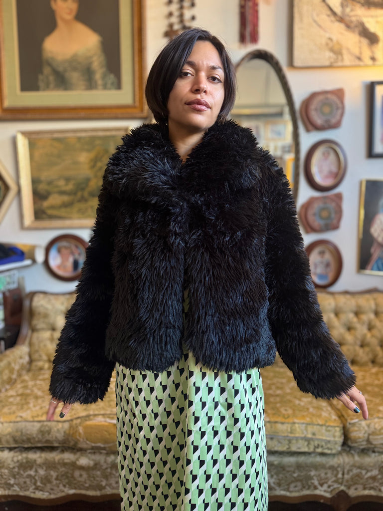 NWT Black Faux Fur Sherpa Cropped Jacket