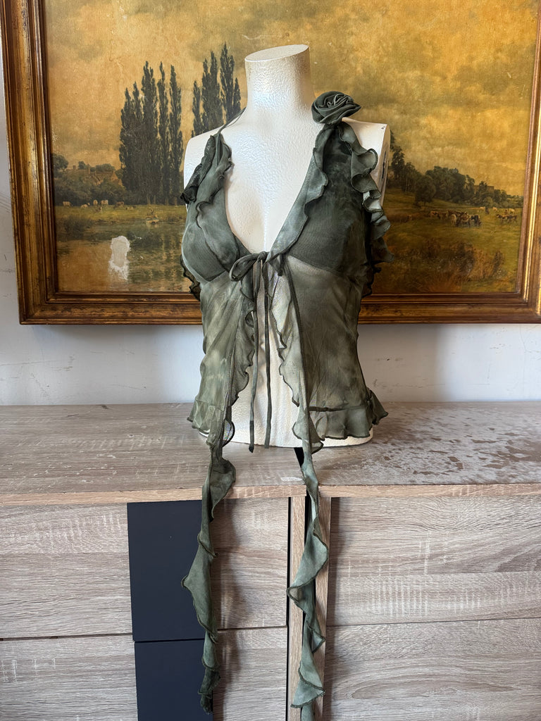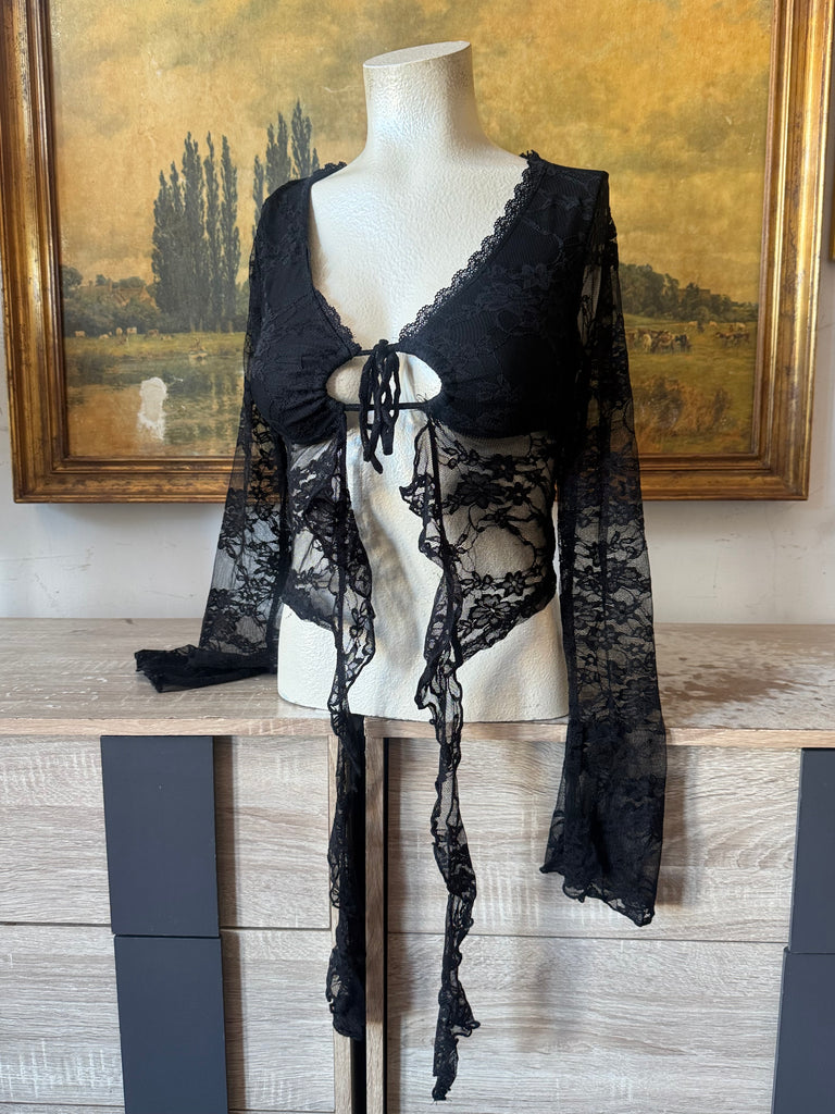 Free People Black & White Polka Dot Puff Sleeve Crop Top Size 4 AS IS