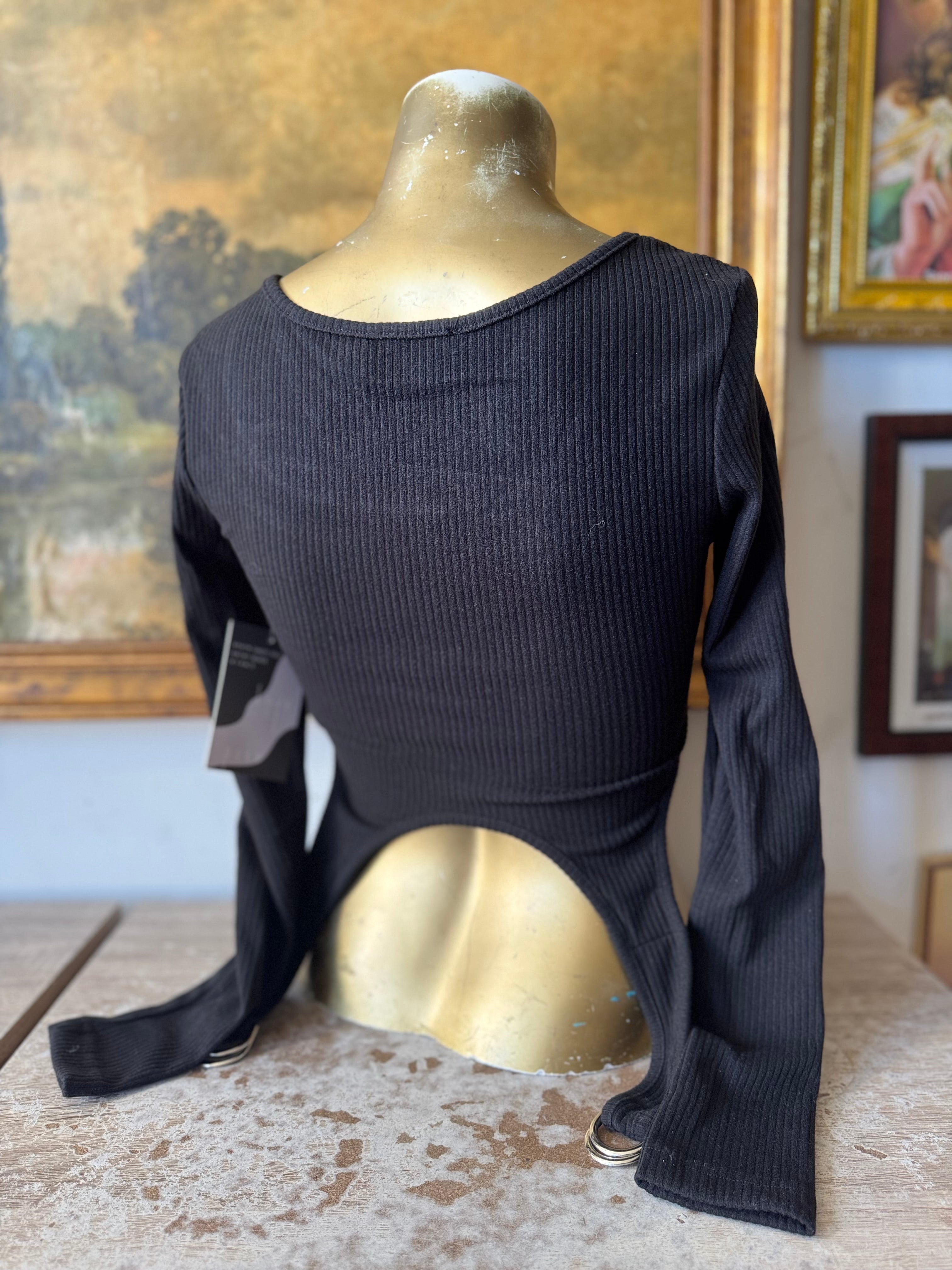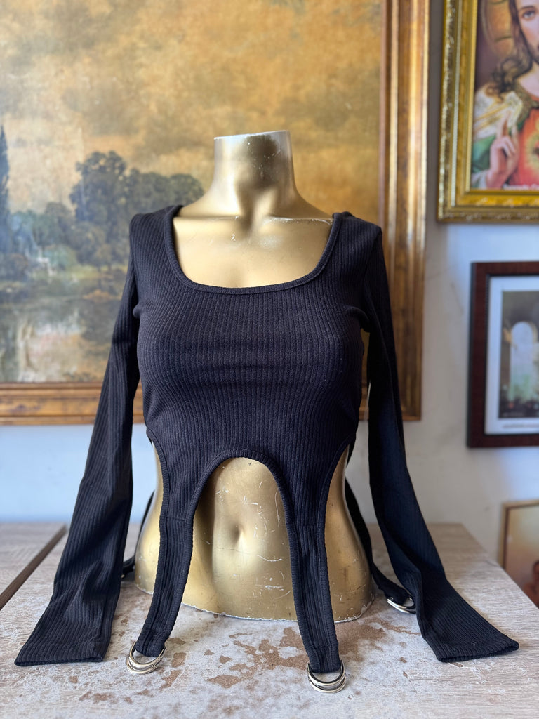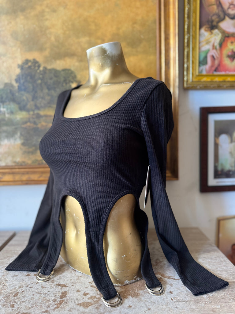 NWT Soft Ribbed Garter D Ring Long Sleeve Top
