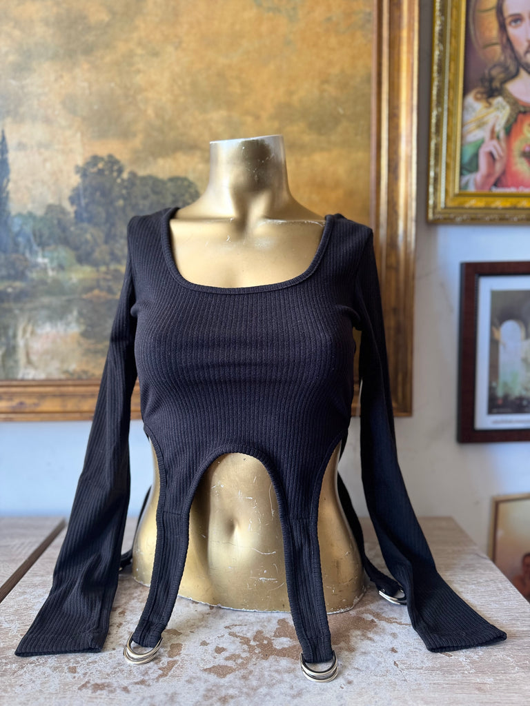 Soft Ribbed Garter D Ring Long Sleeve Top