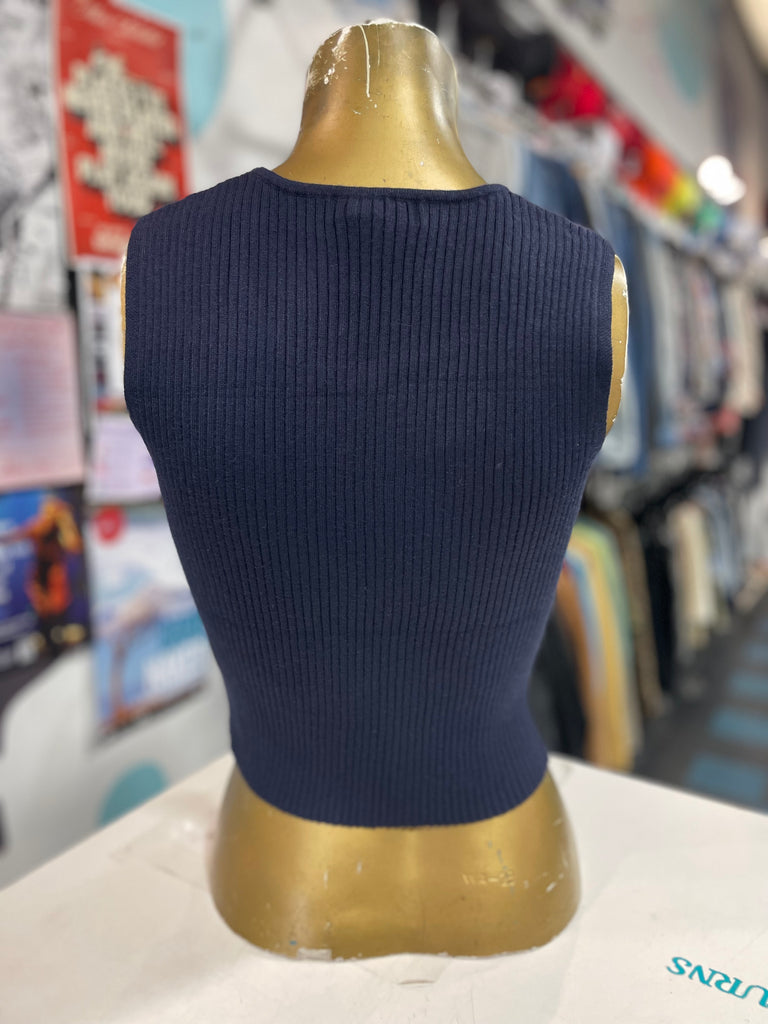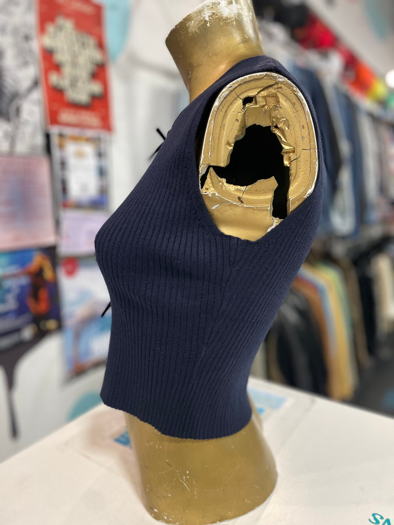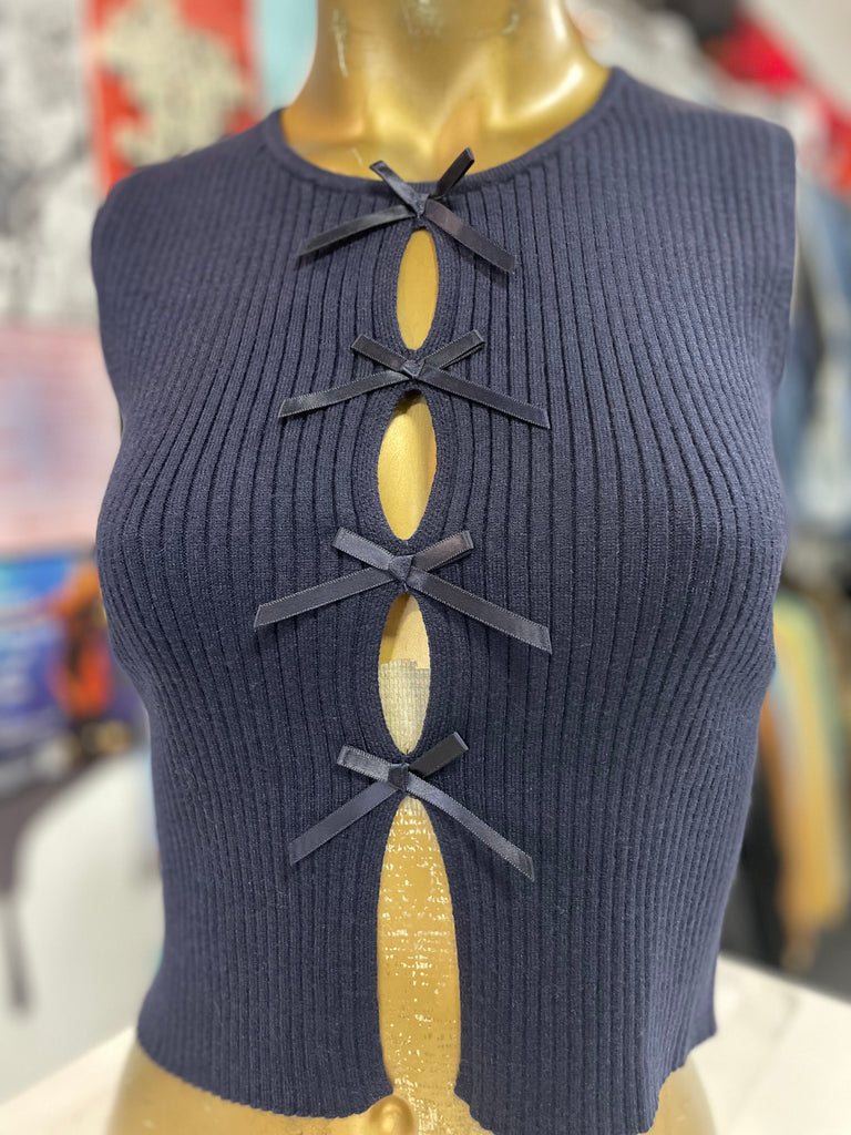 Navy Knit Bow Tank