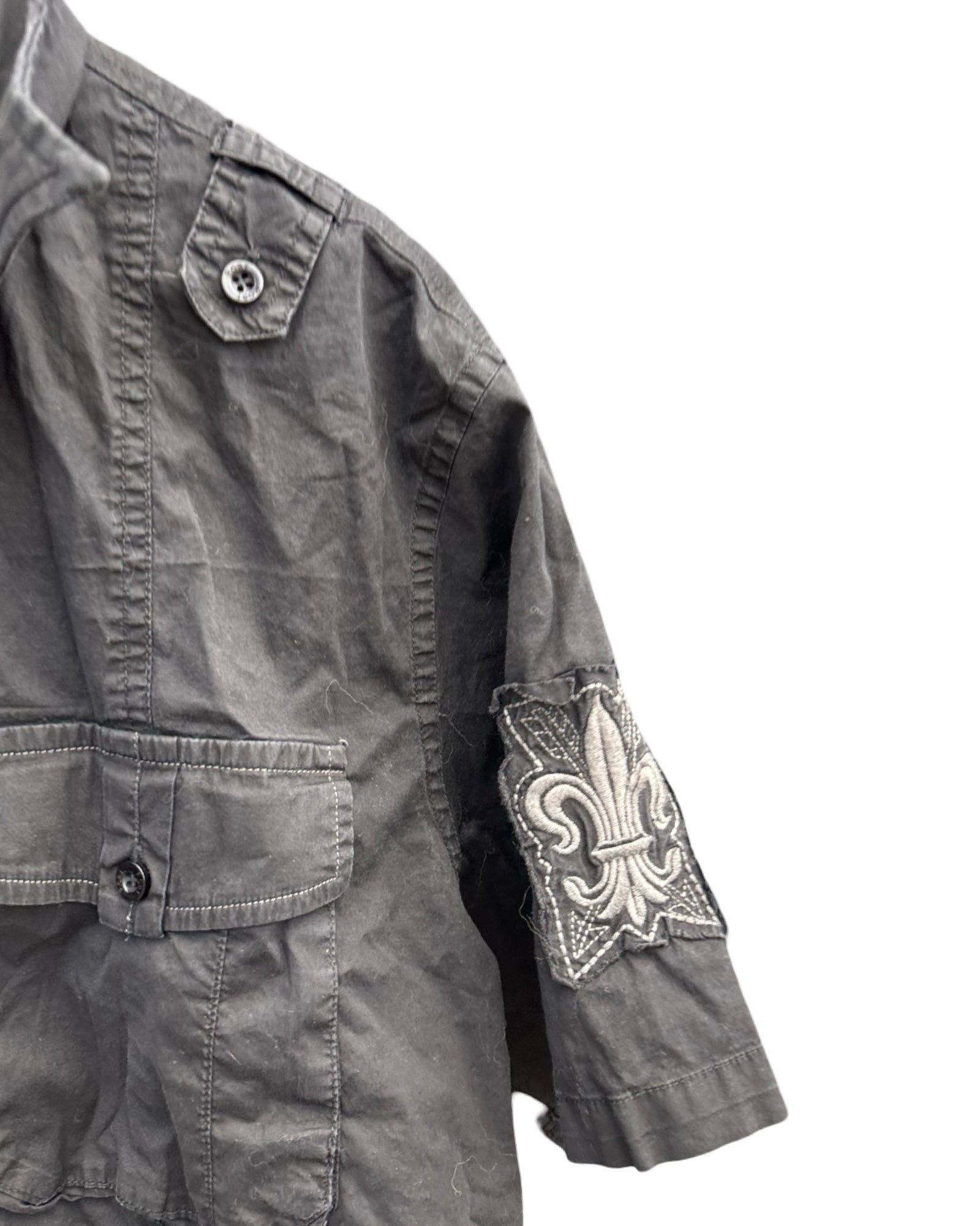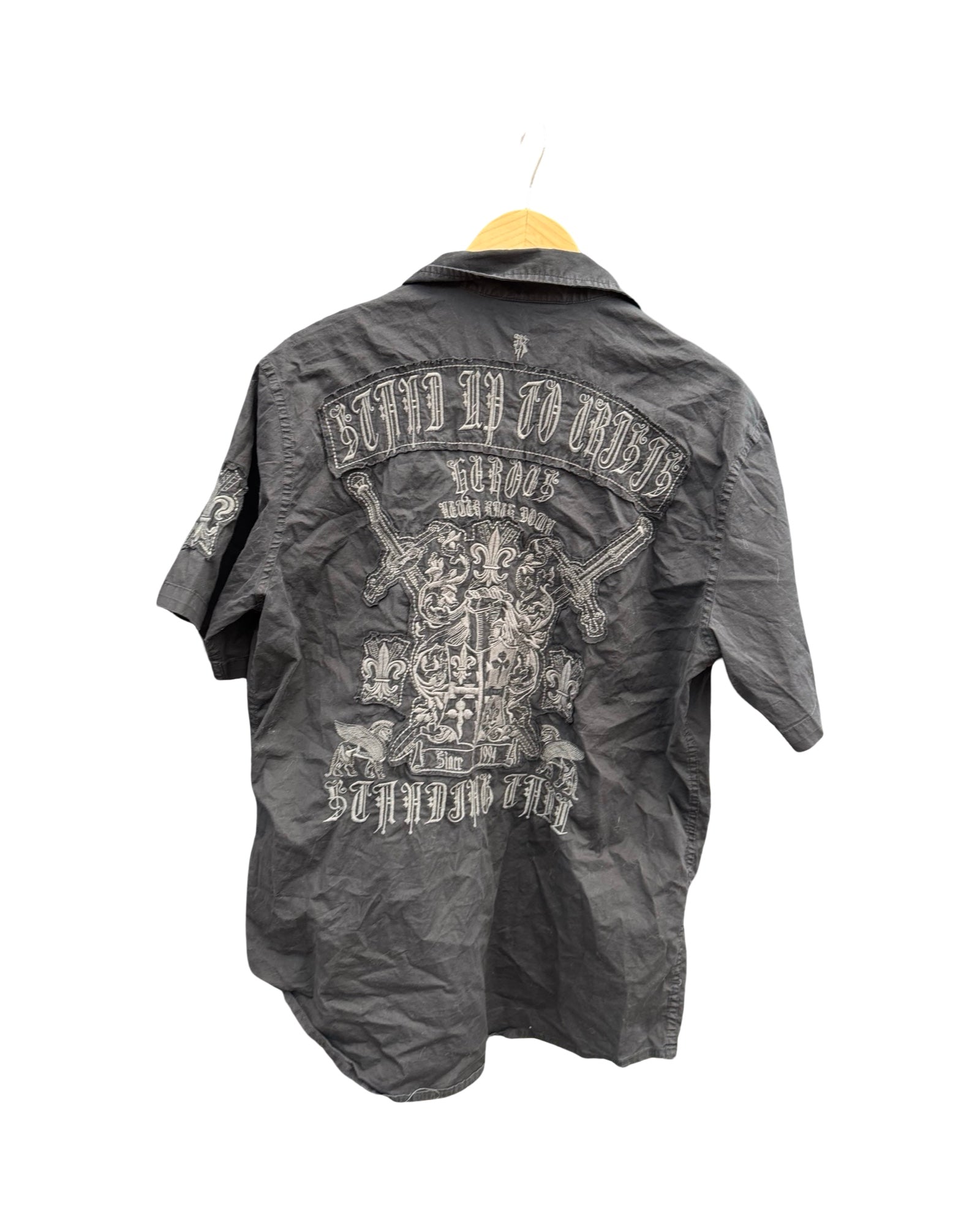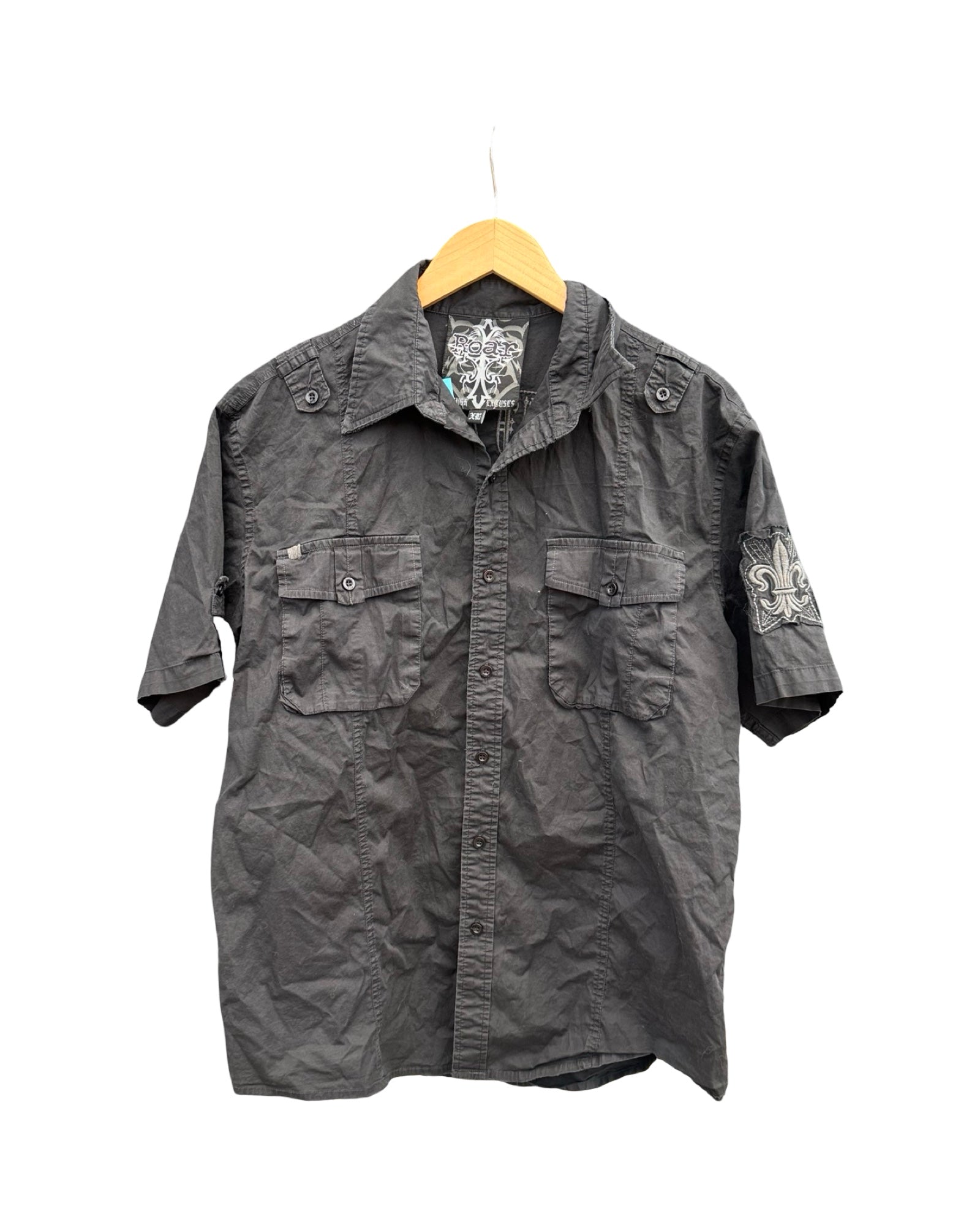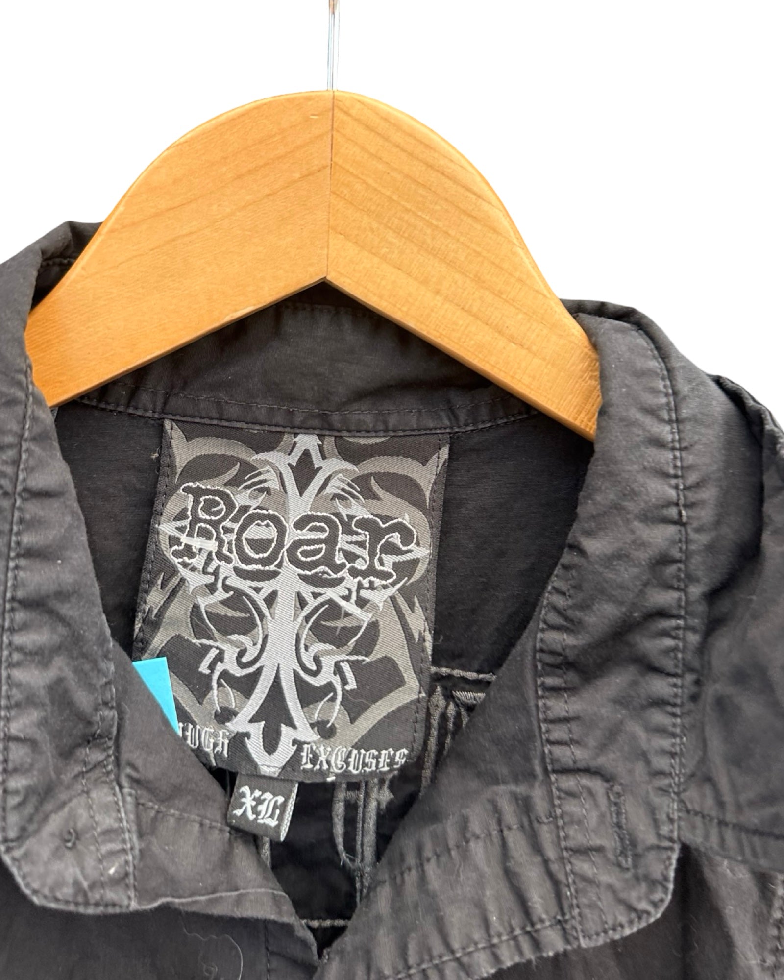 Y2k Roar Black Embroidered Short Sleeve Button Up Size XL