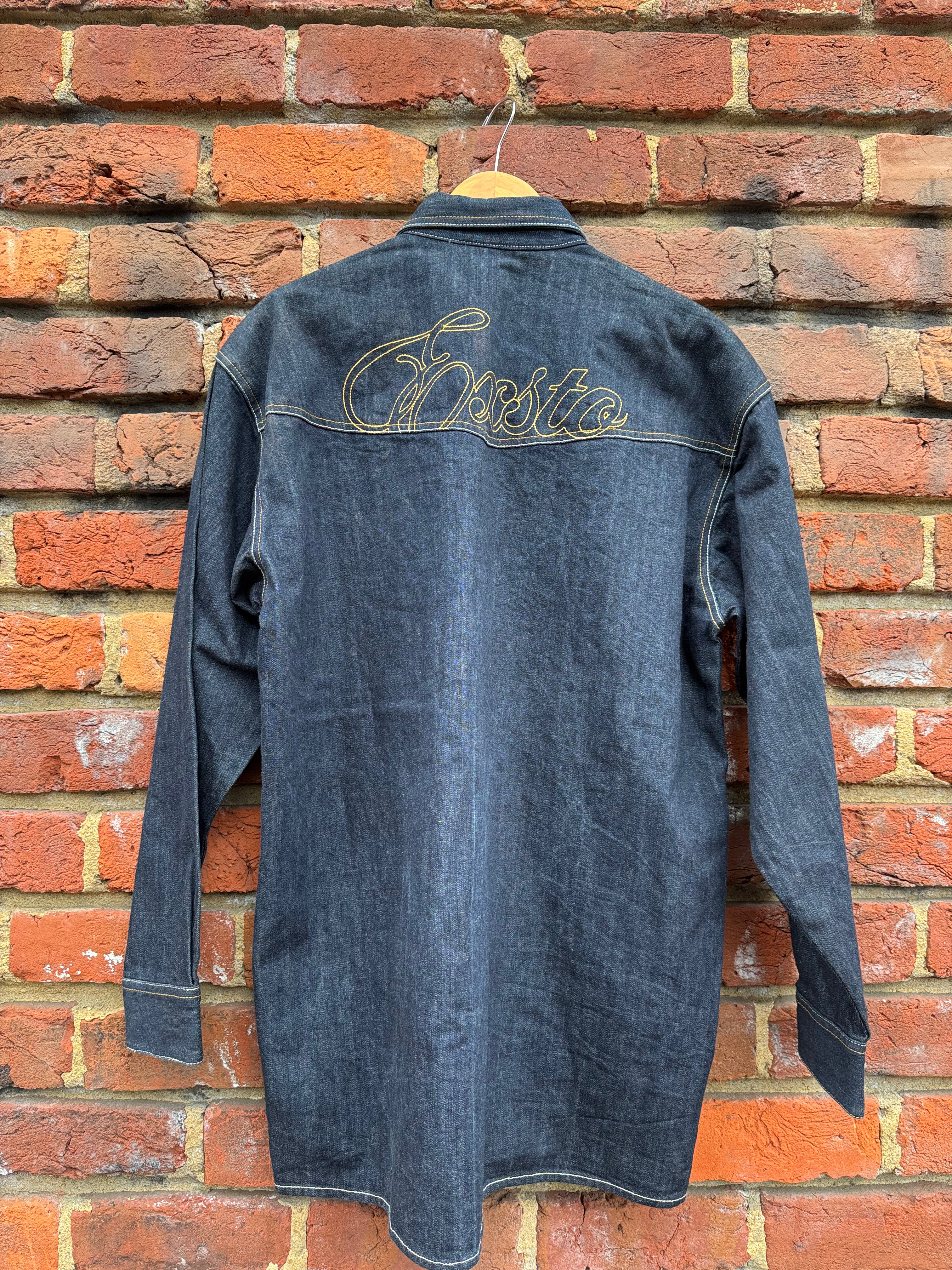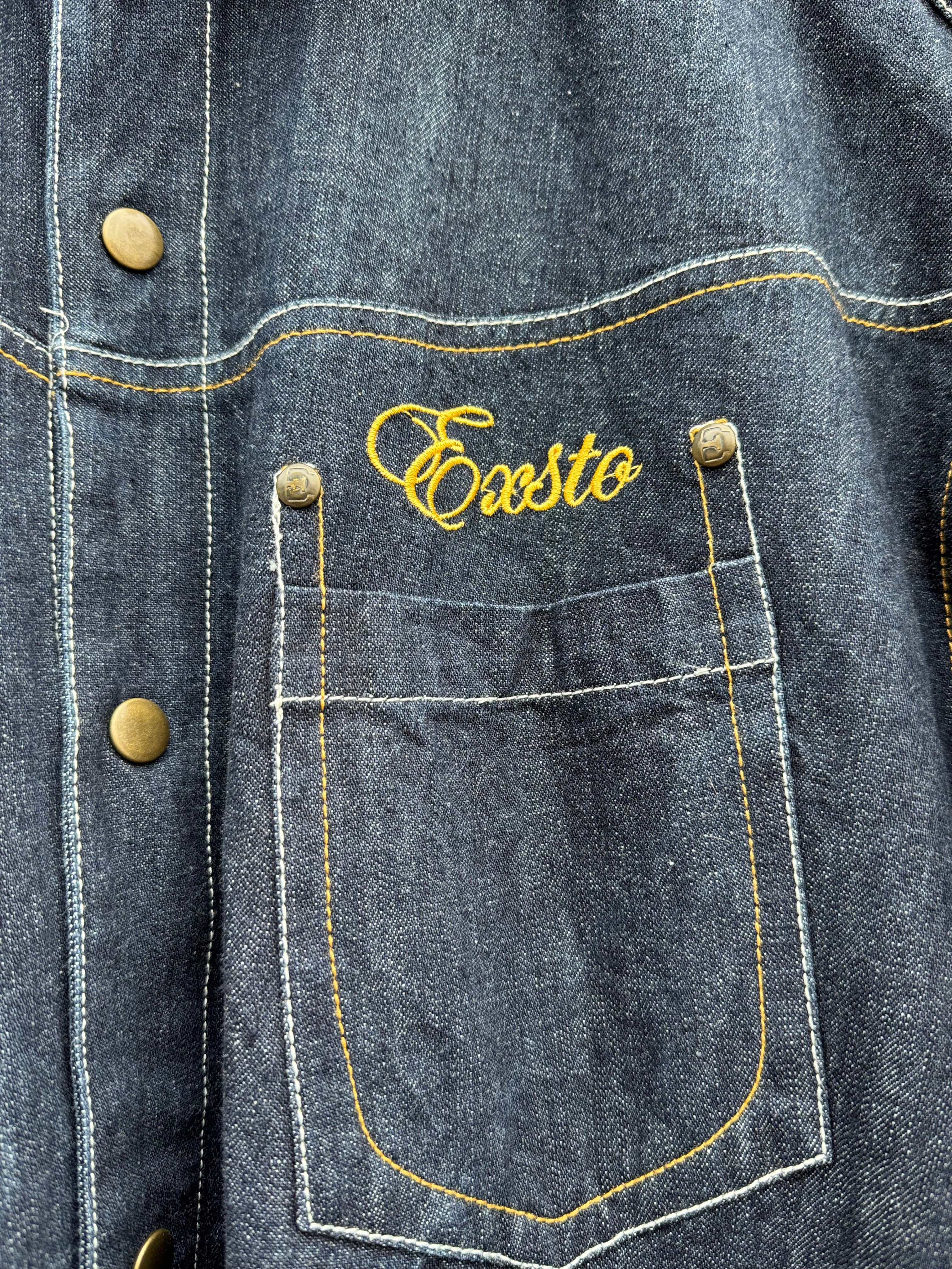 Y2k Denim Embroidered Exsto Denim Button Up Size L