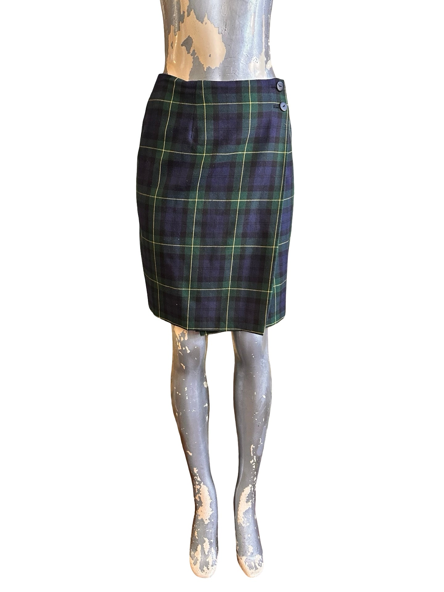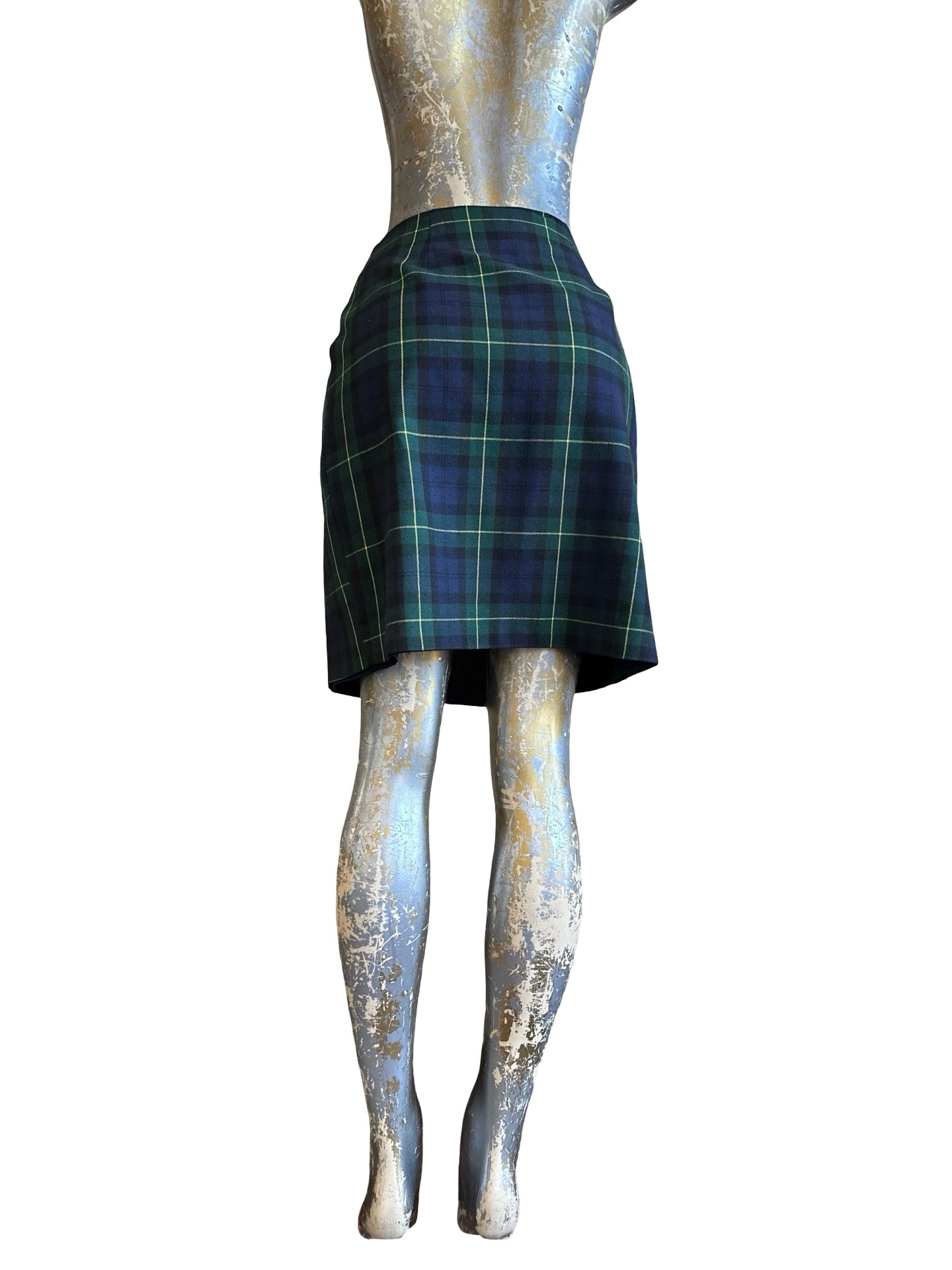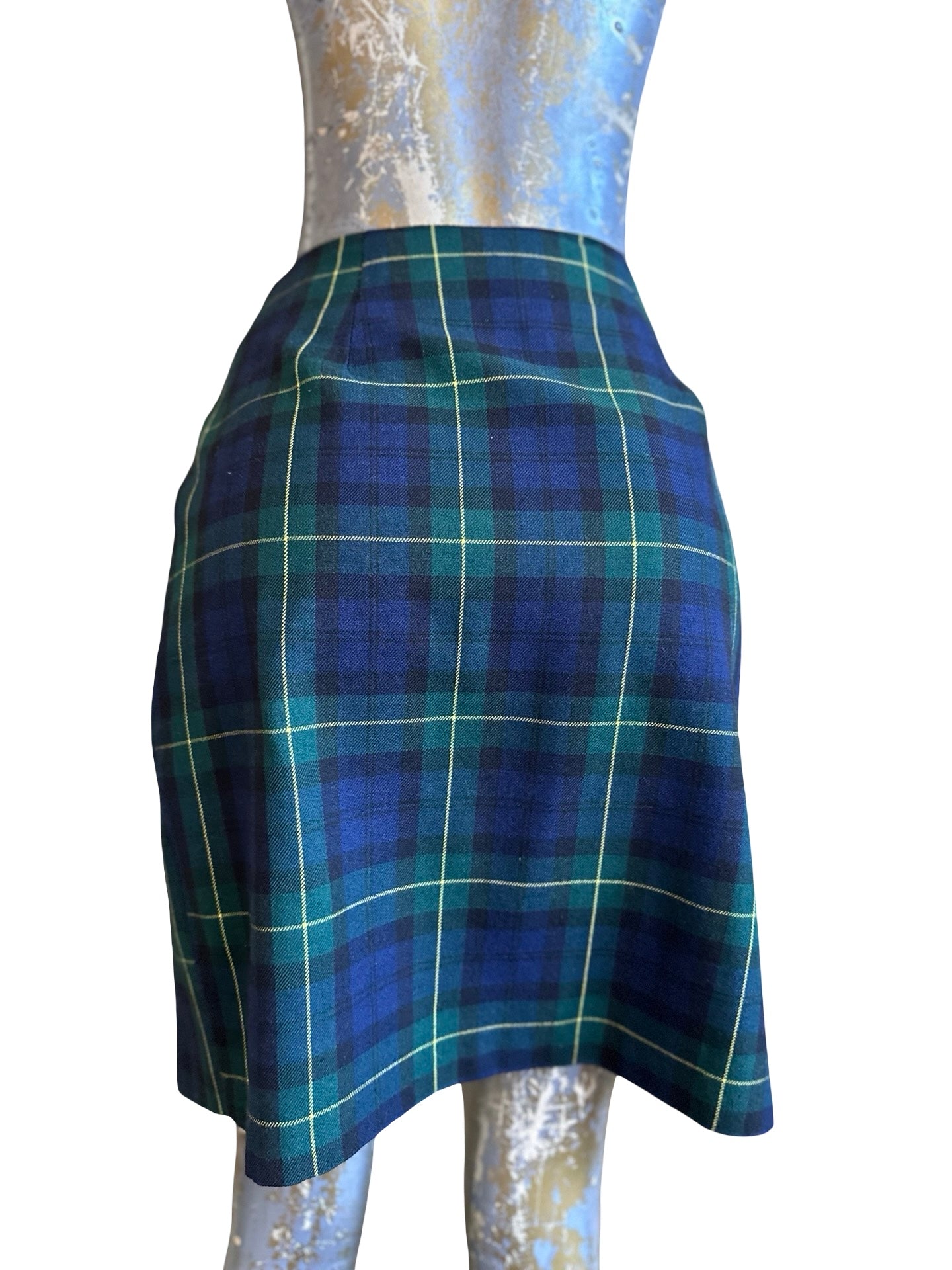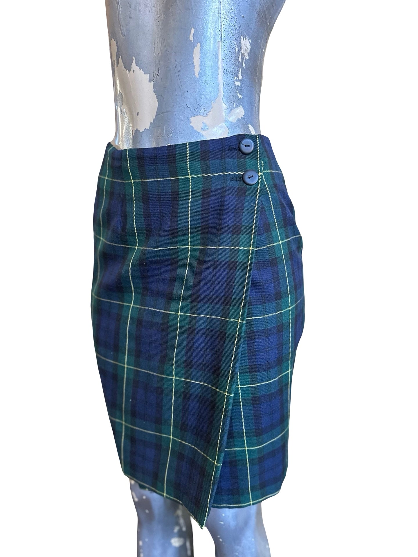 90s Navy Plaid Tartan Midi Skirt Size M/8