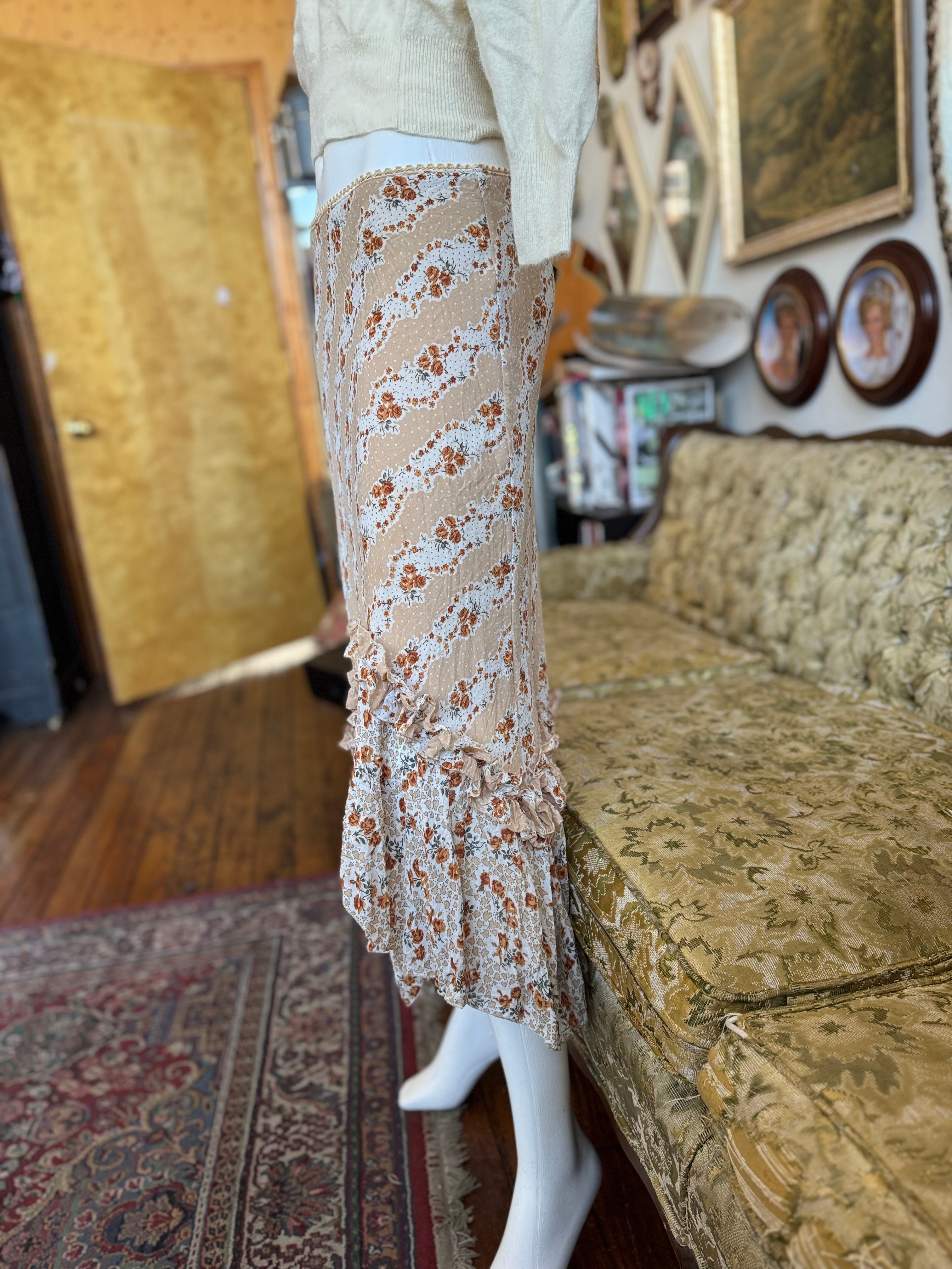 Y2k Kadra Floral Ruffle Maxi Skirt Size 3
