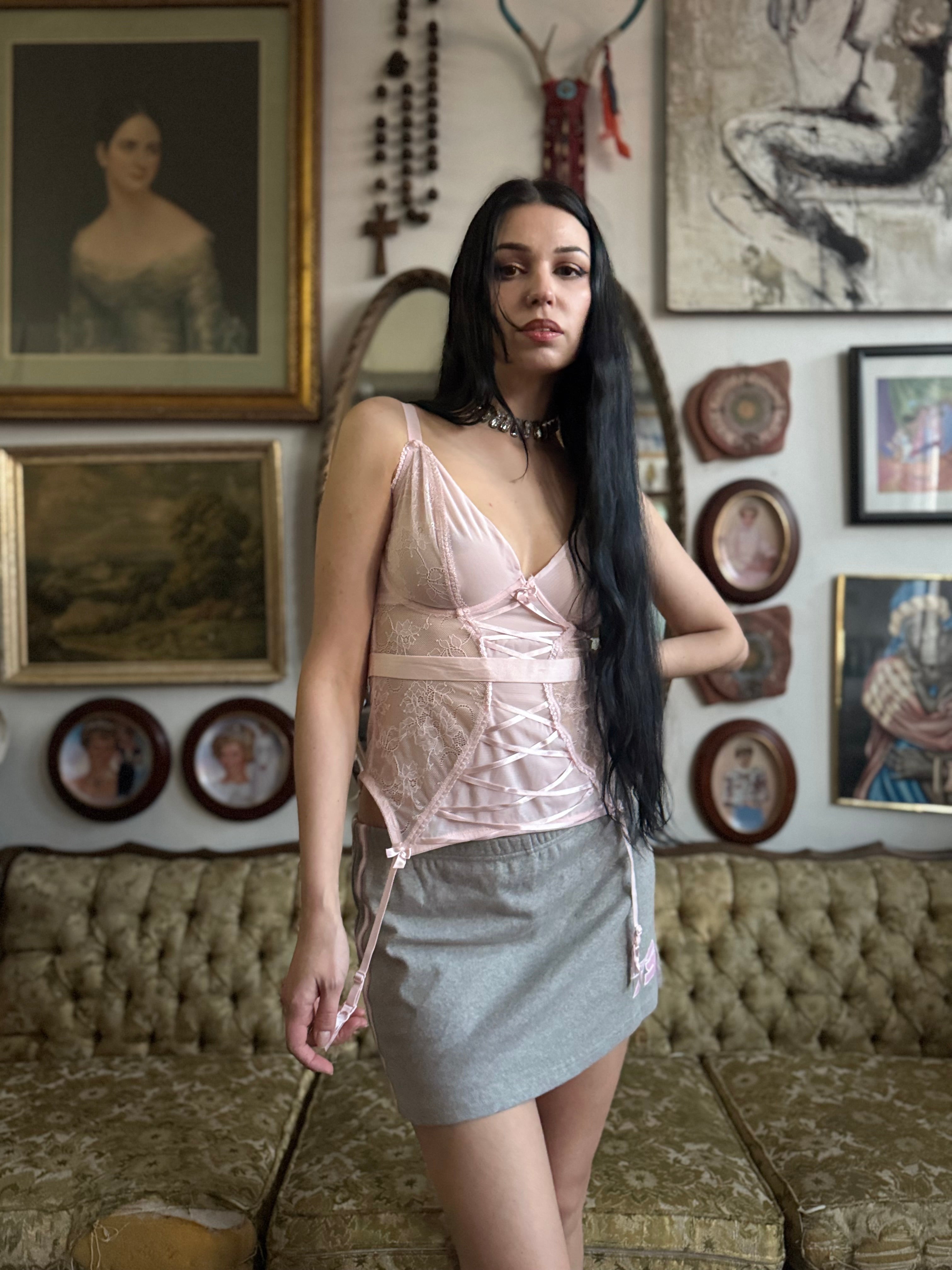 Description: Y2K ESPN Heather Gray & Pink Skort with Side Stripe Detail