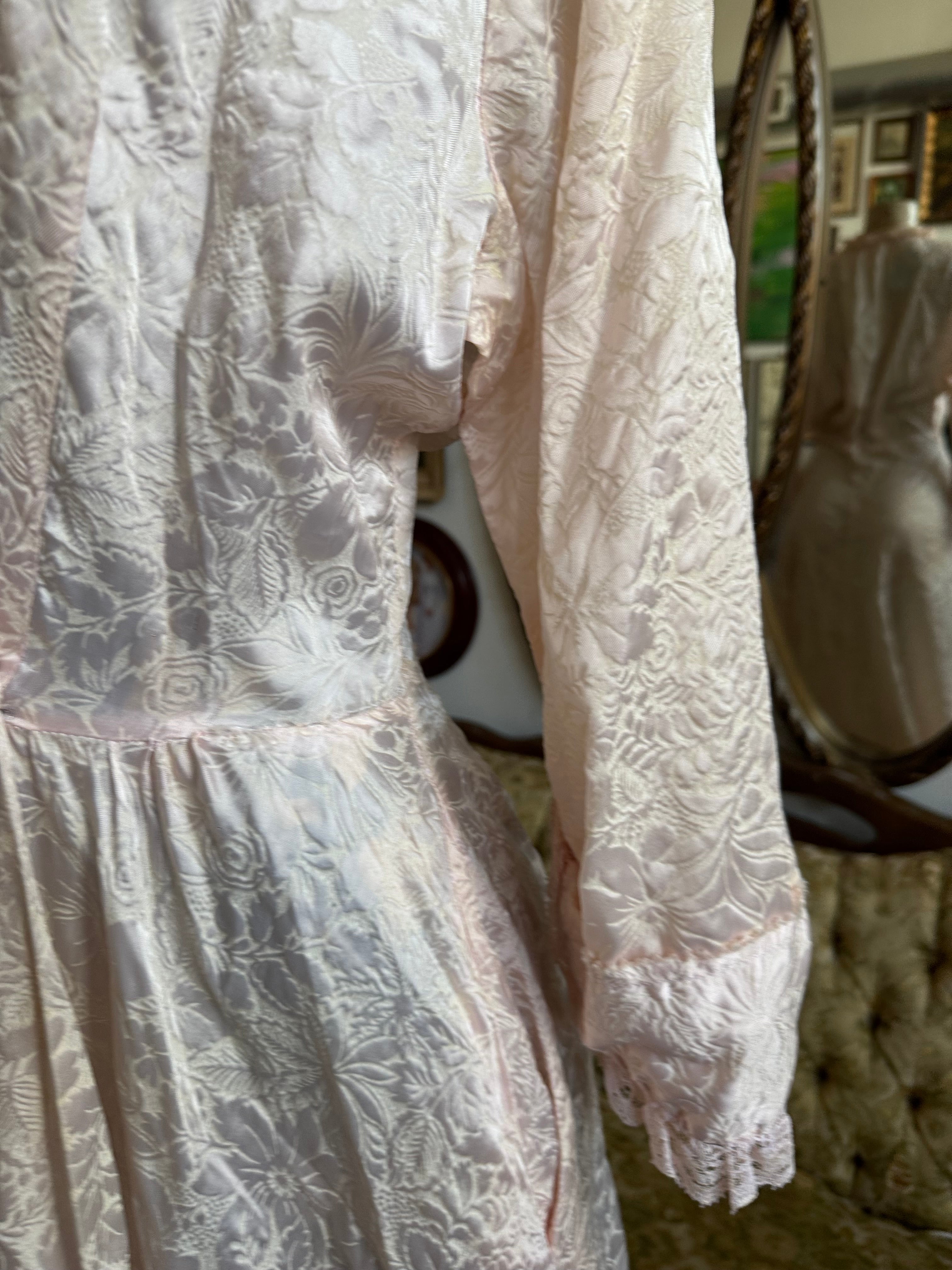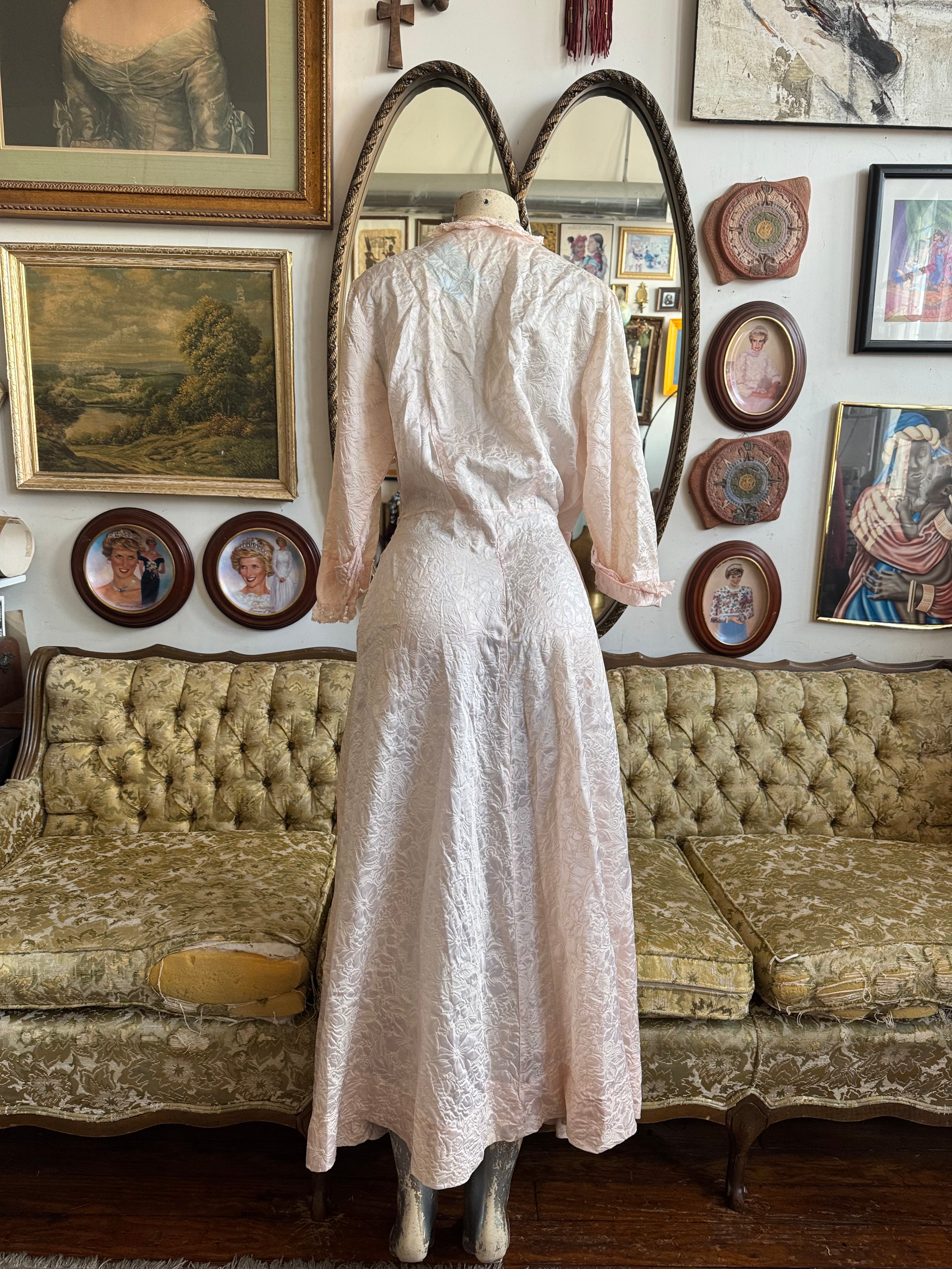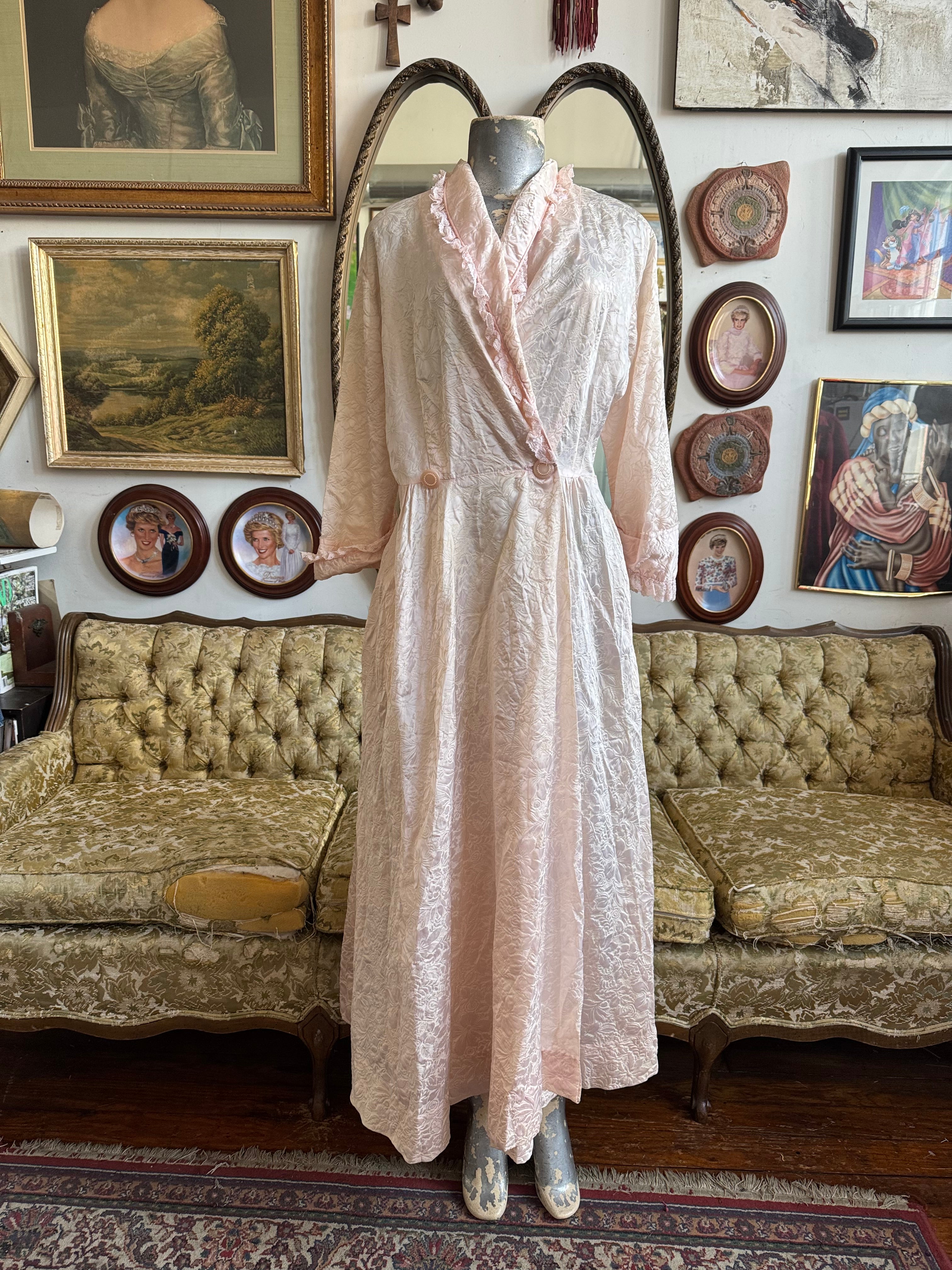 Vintage Blush Pink Floral Lace Trim Robe Size S AS IS
