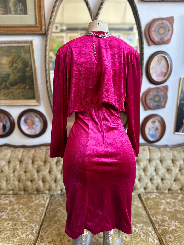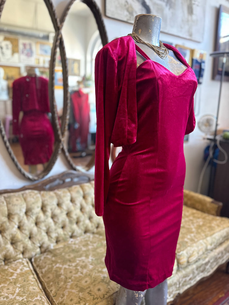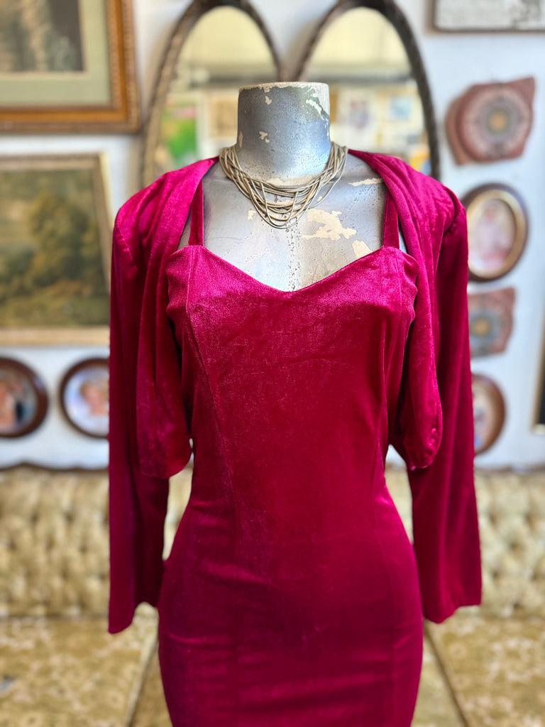 One of a Kind Handmade 90s Cranberry Velvet Bodycon w Bolero Size Small