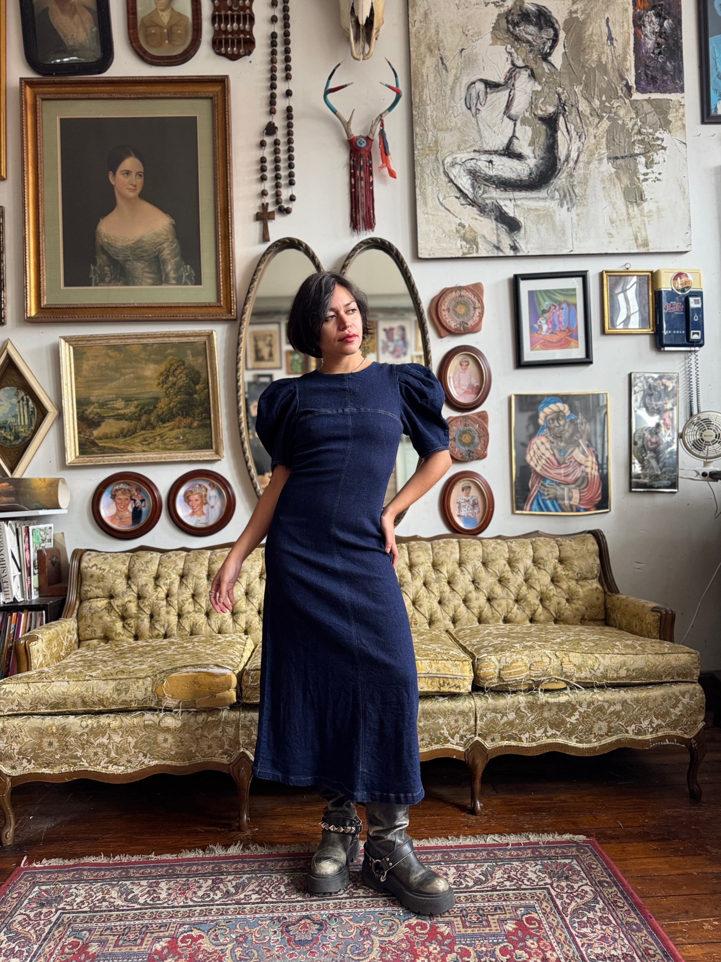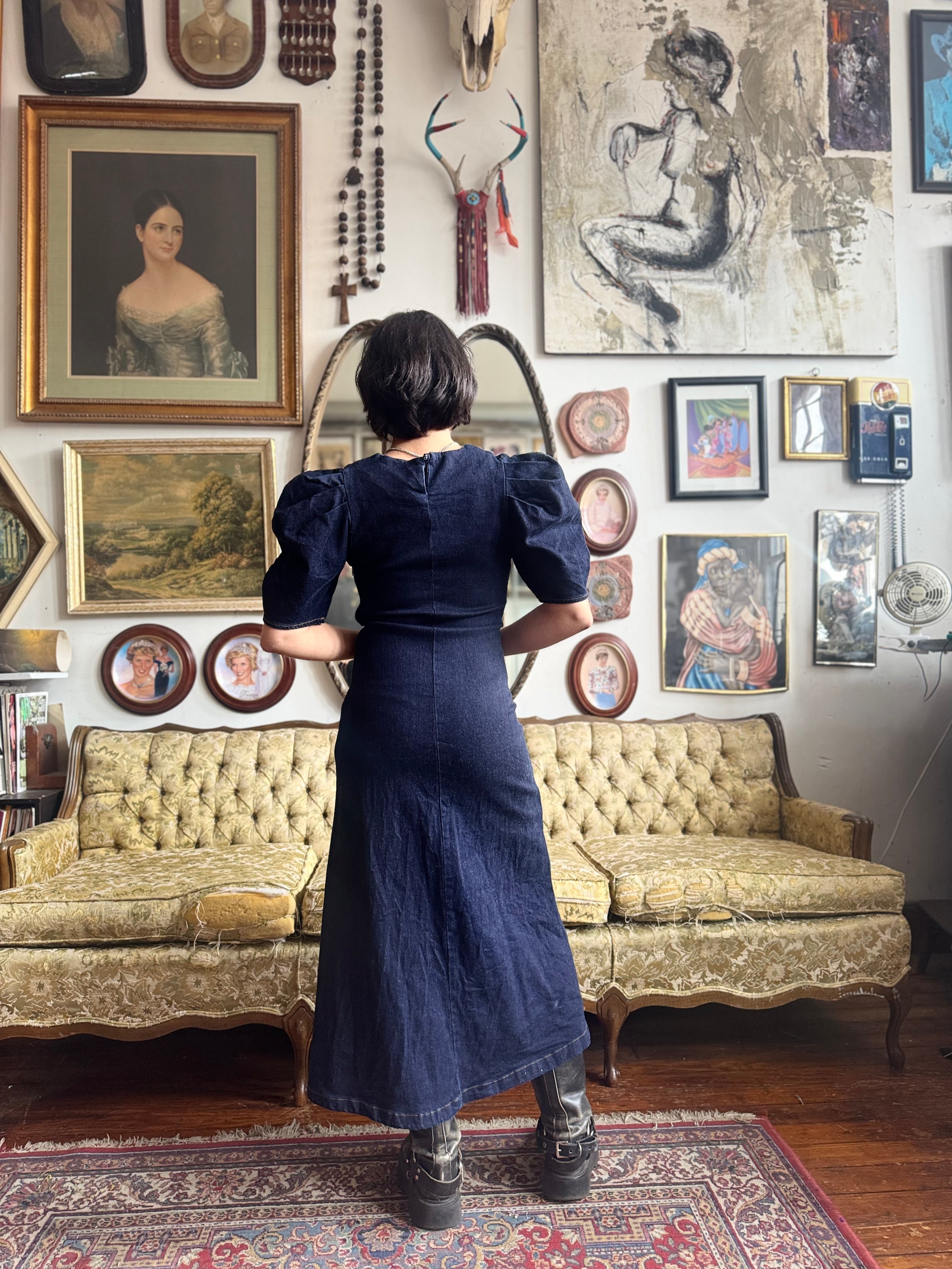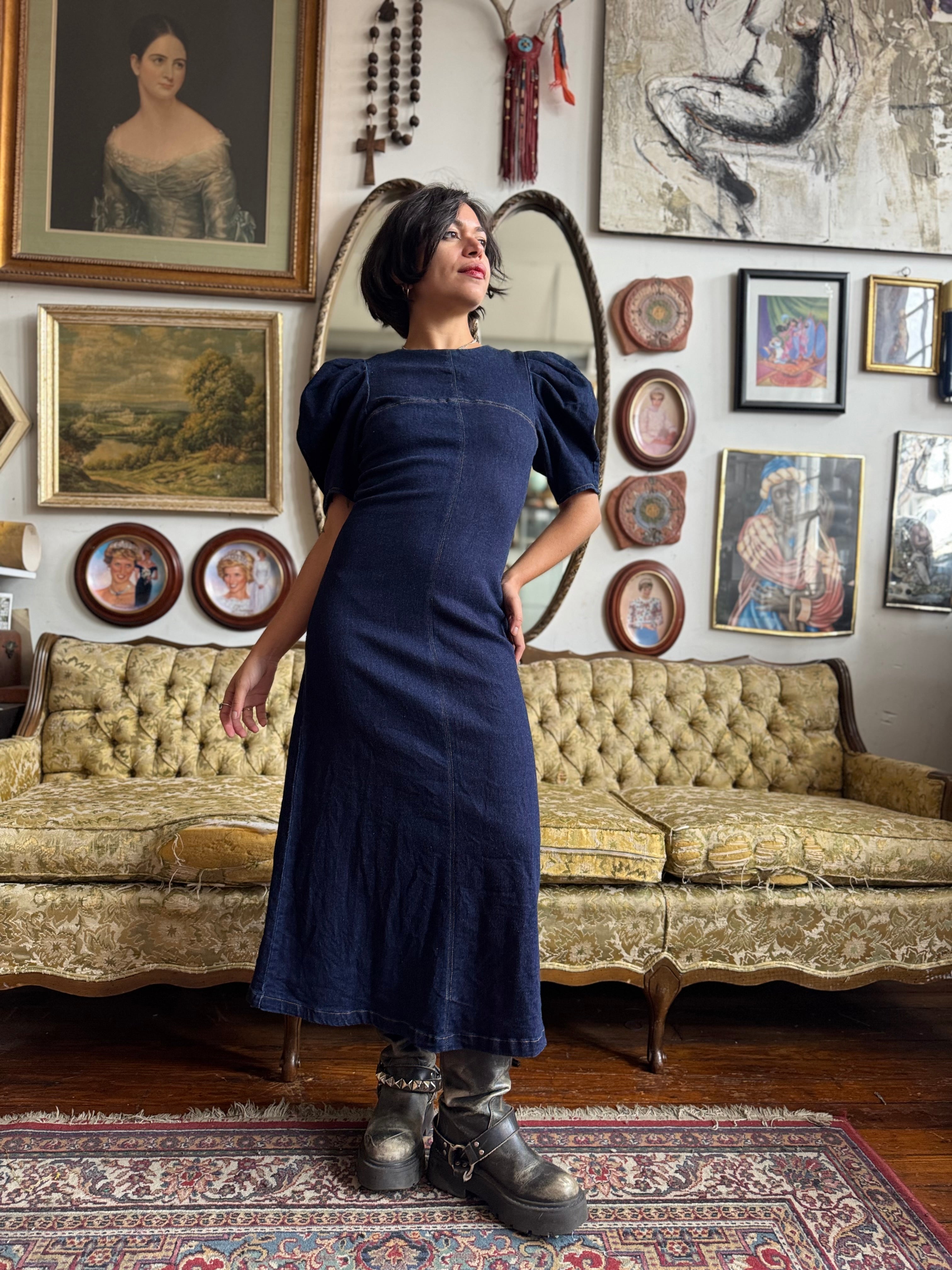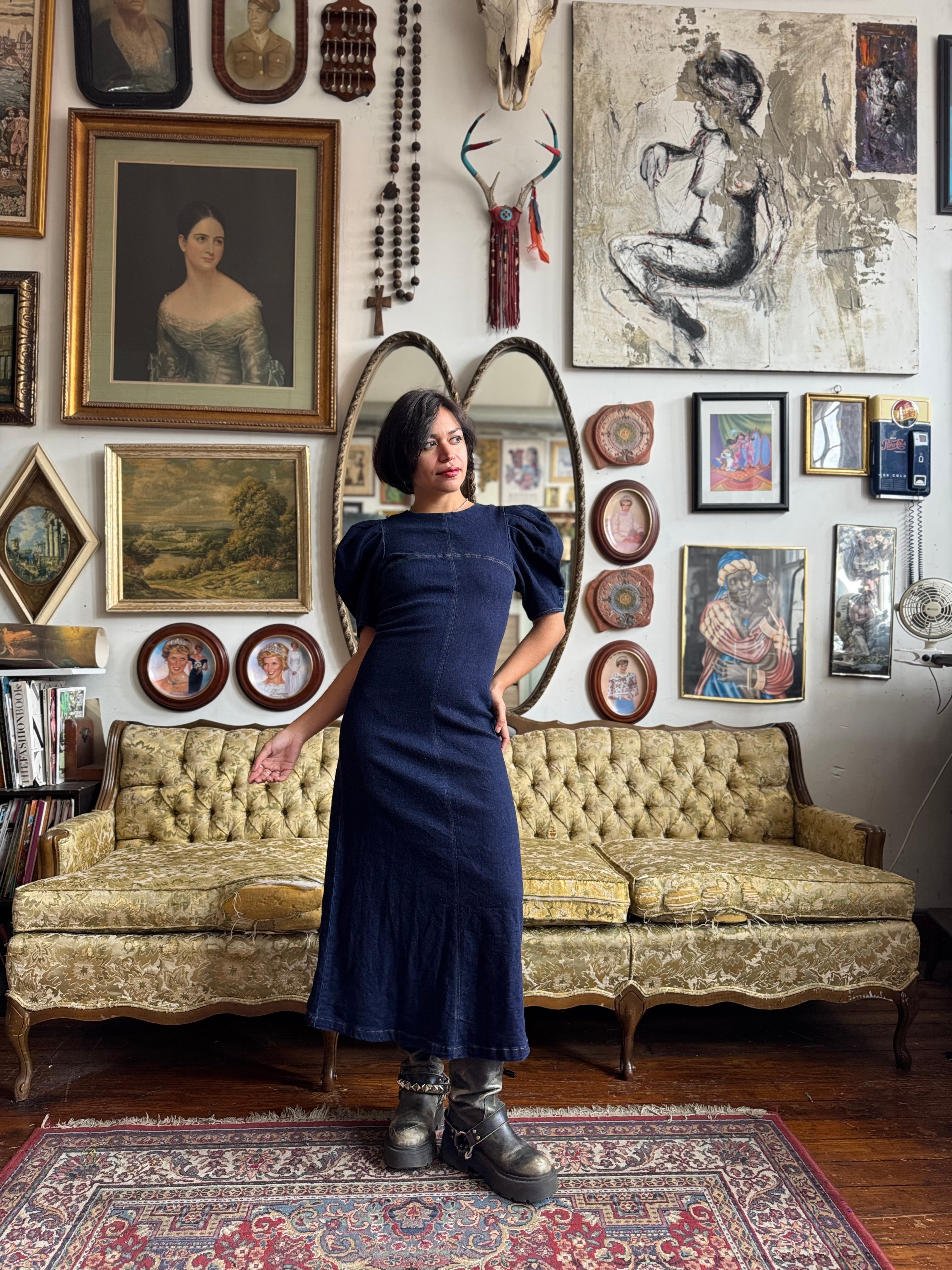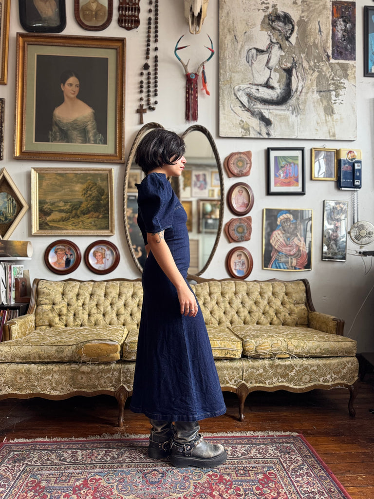Dark Denim Western Sadie Puff Sleeve Maxi Dress XS by Bohme