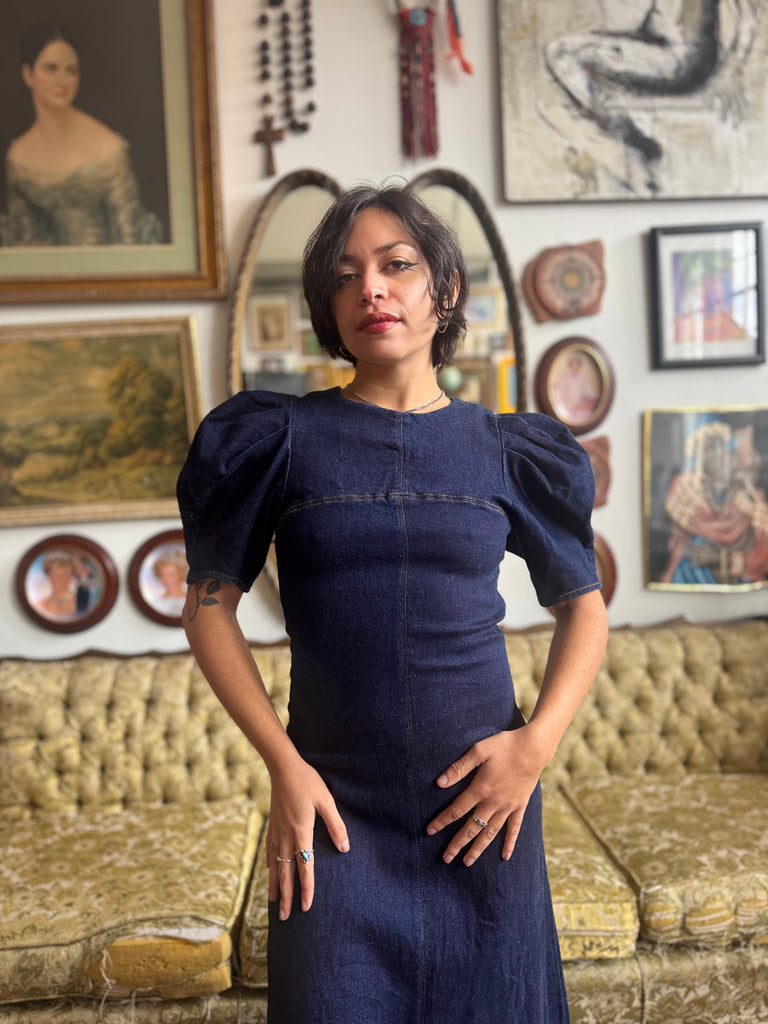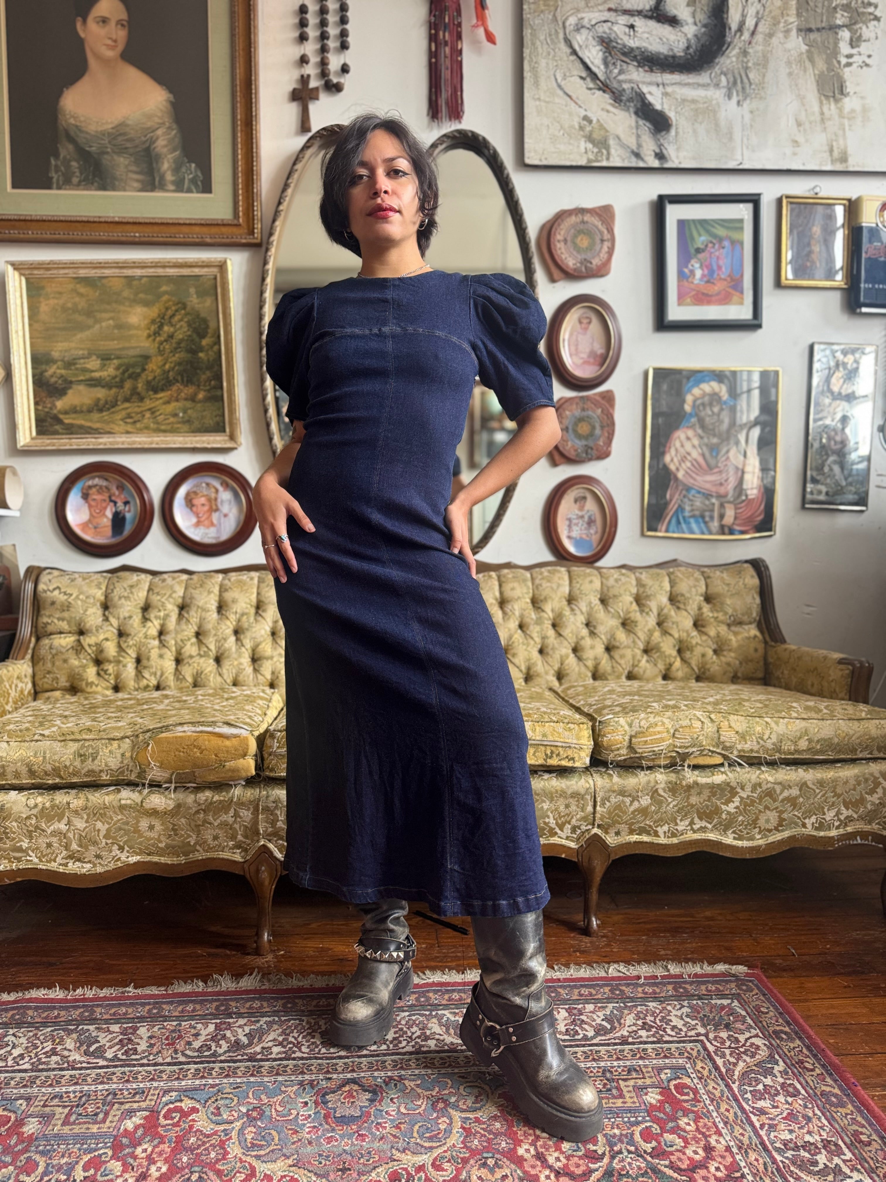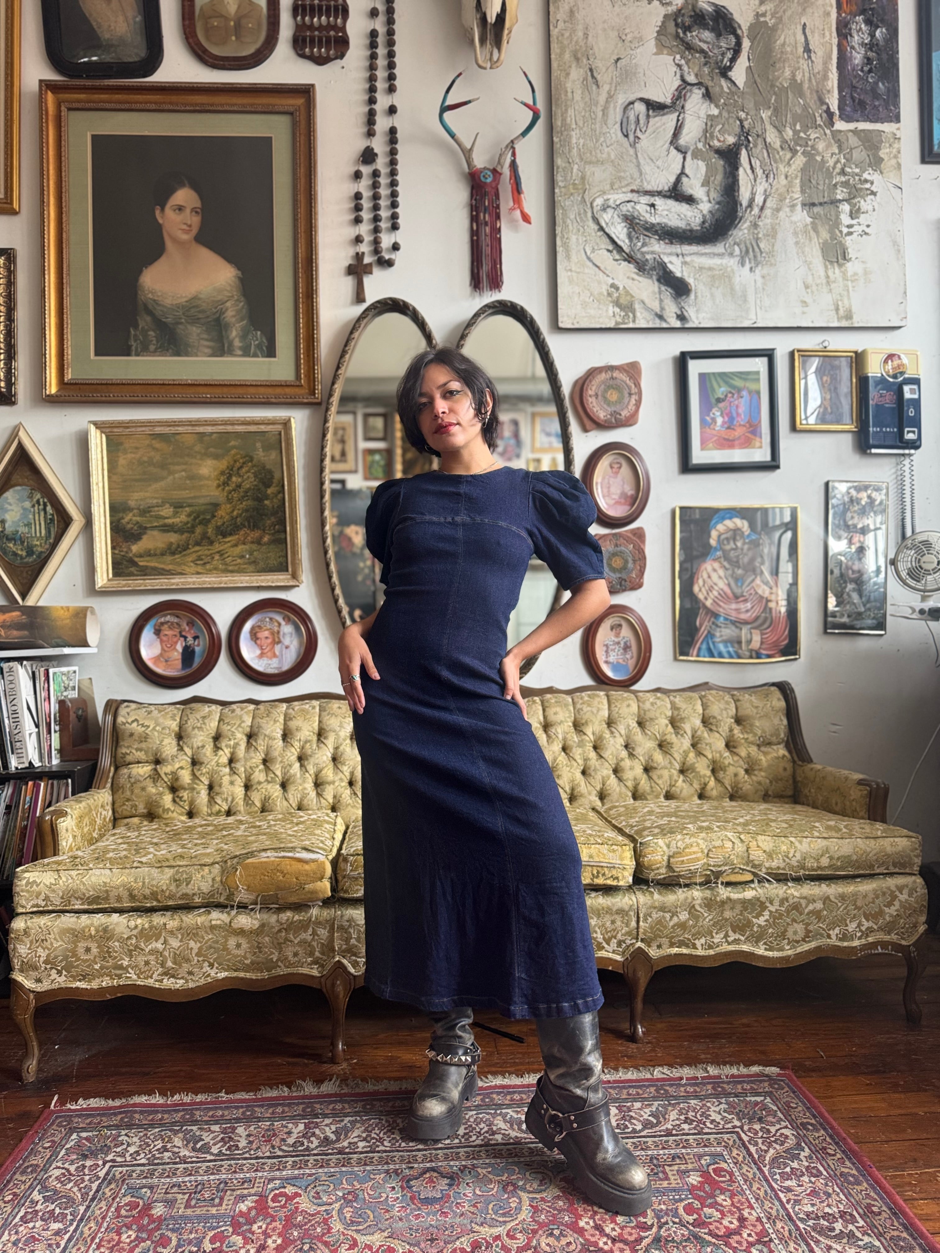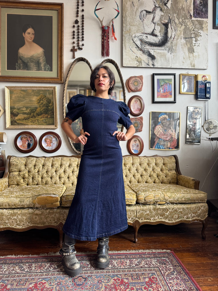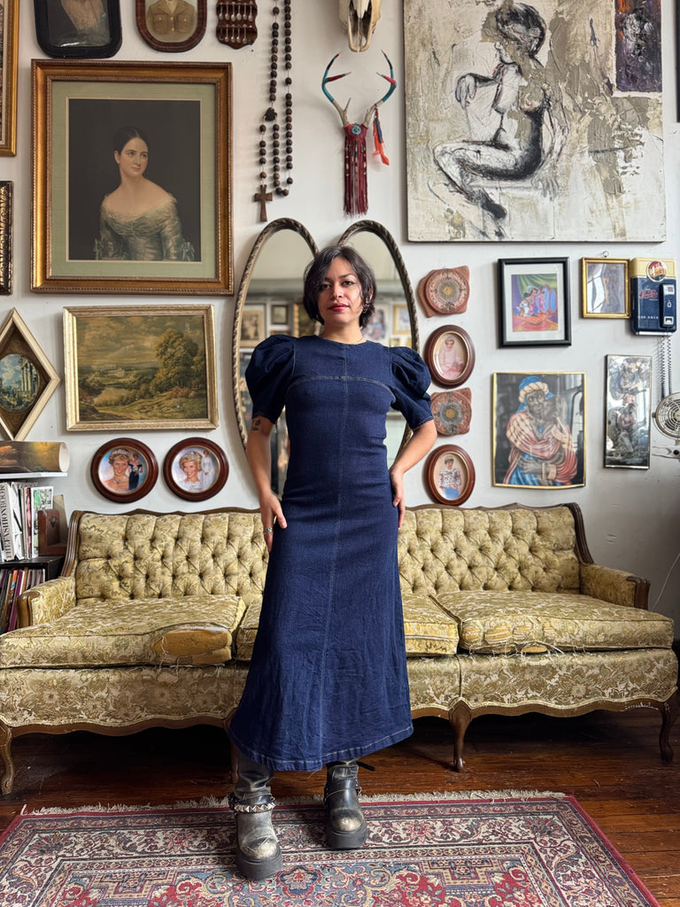 Dark Denim Western Sadie Puff Sleeve Maxi Dress XS by Bohme