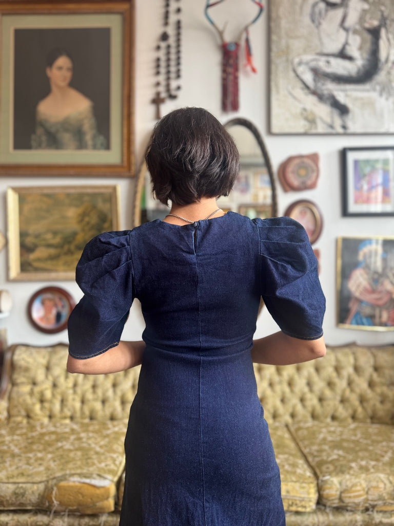 Dark Denim Western Sadie Puff Sleeve Maxi Dress XS