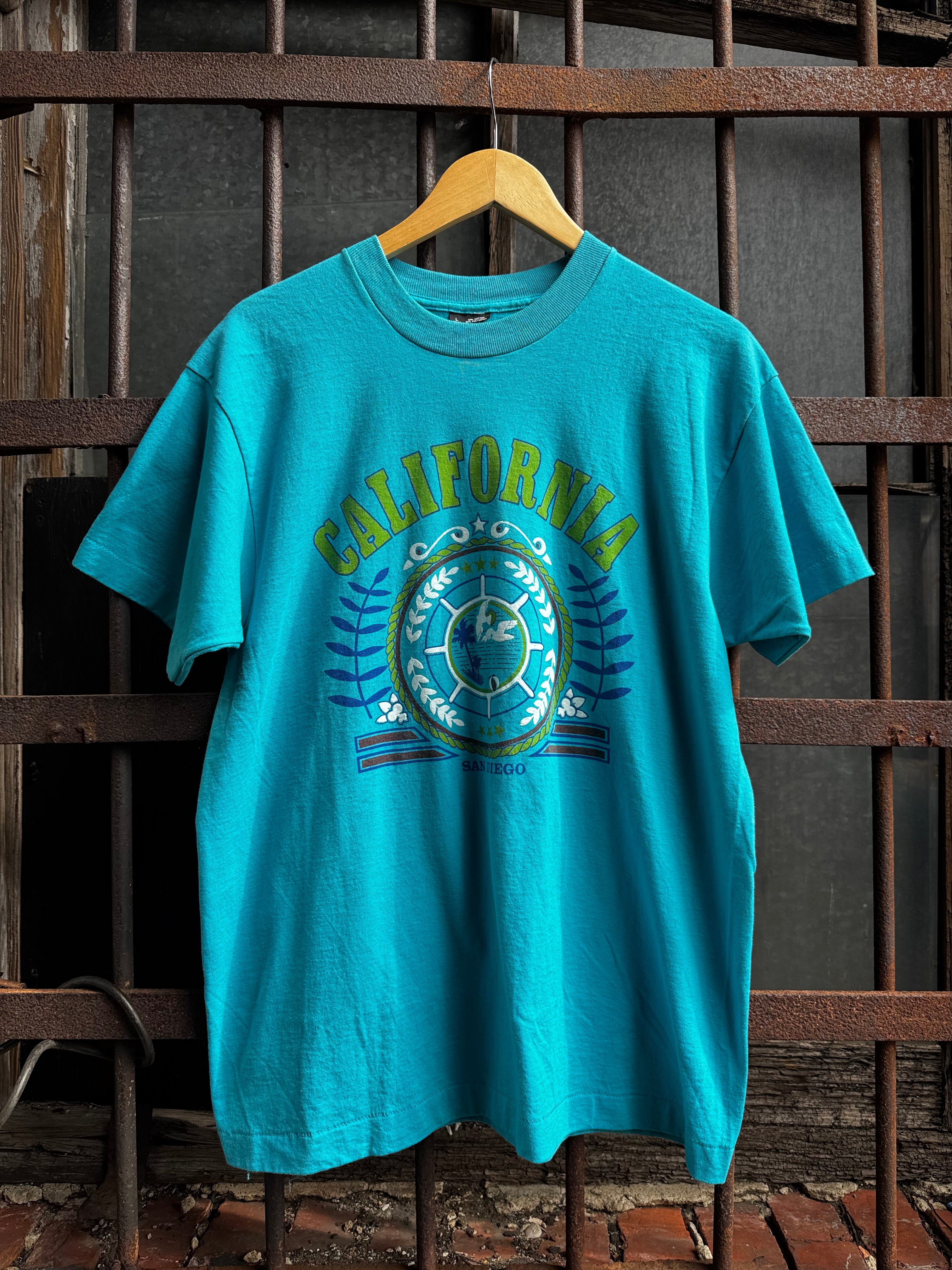 Vintage 80s California Teal Single Stitch Tee Size L