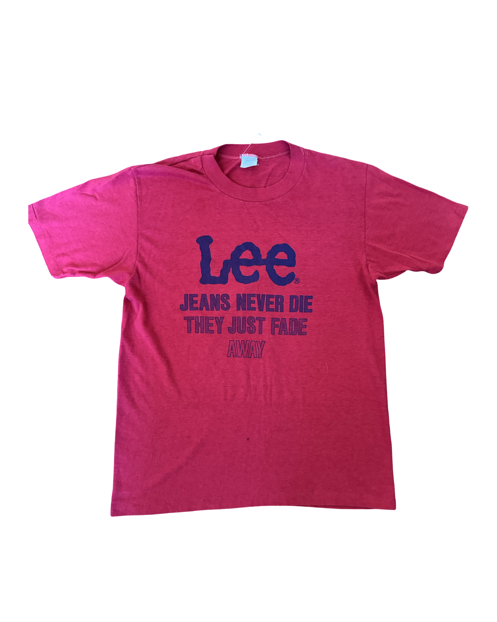 Vintage 80s Lee "Jeans Never Die" Single Stitch Red Tee Size L