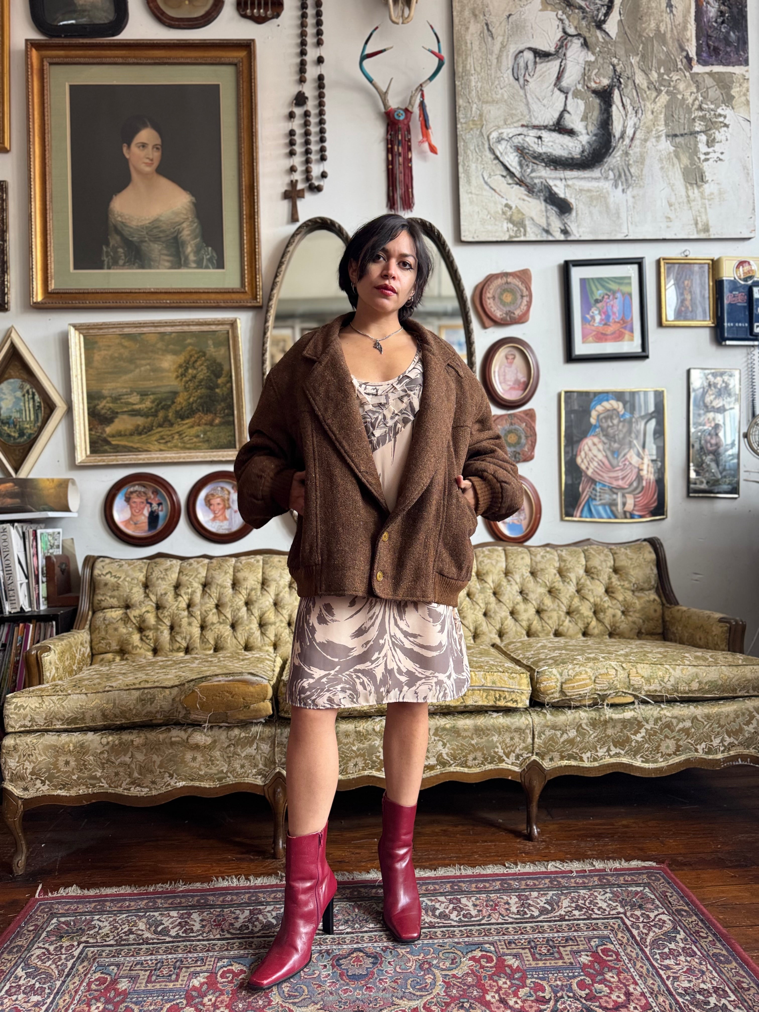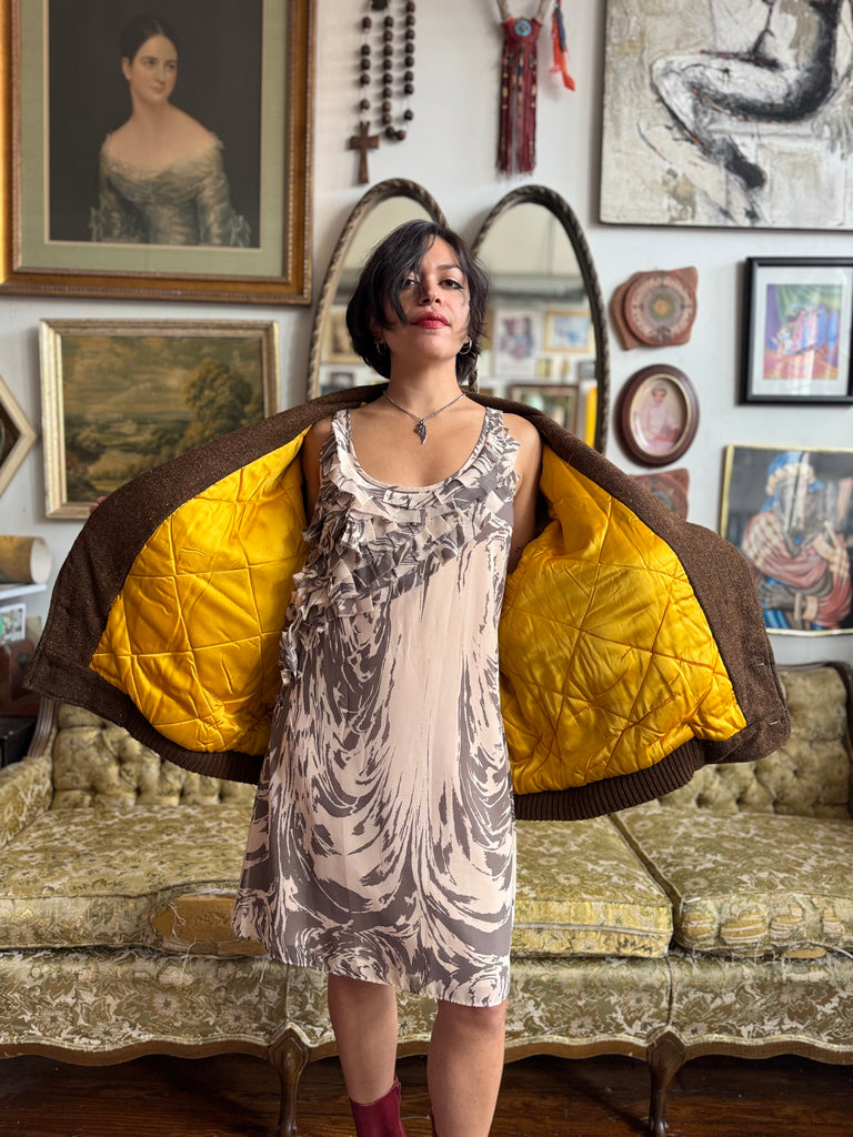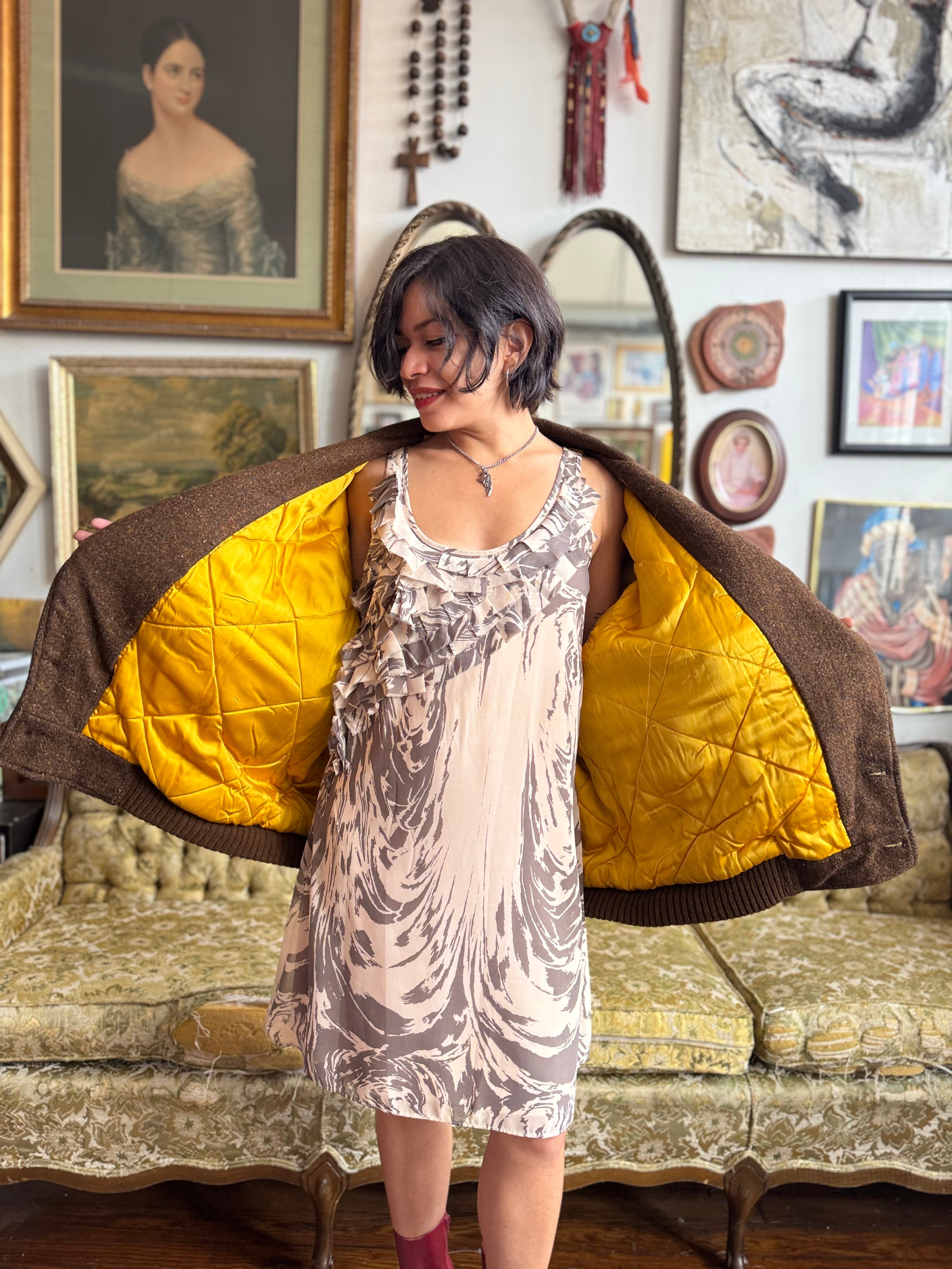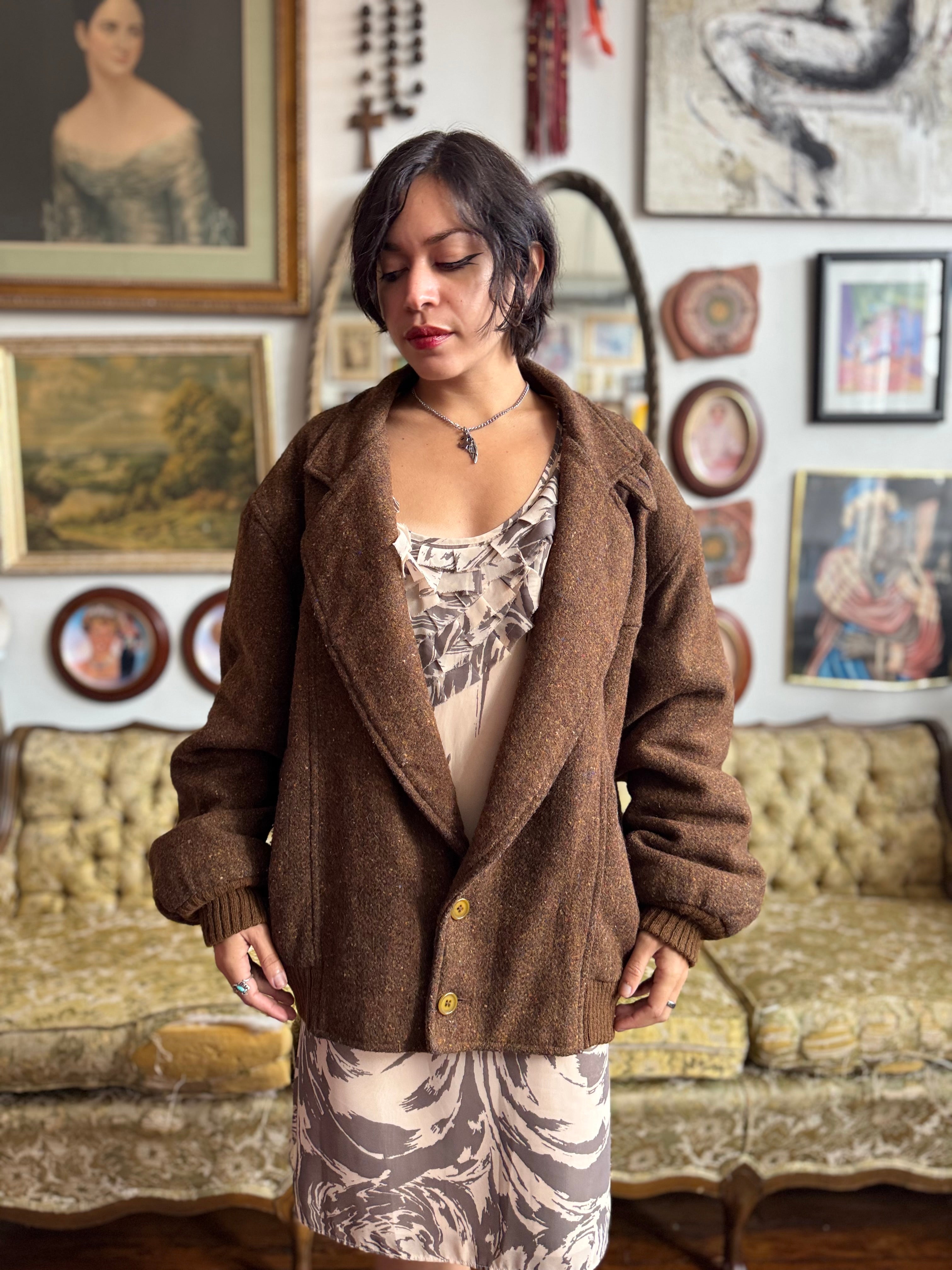 70s Vintage Wool Benetton Herringbone Bomber Jacket w Double Button Waist Size XL