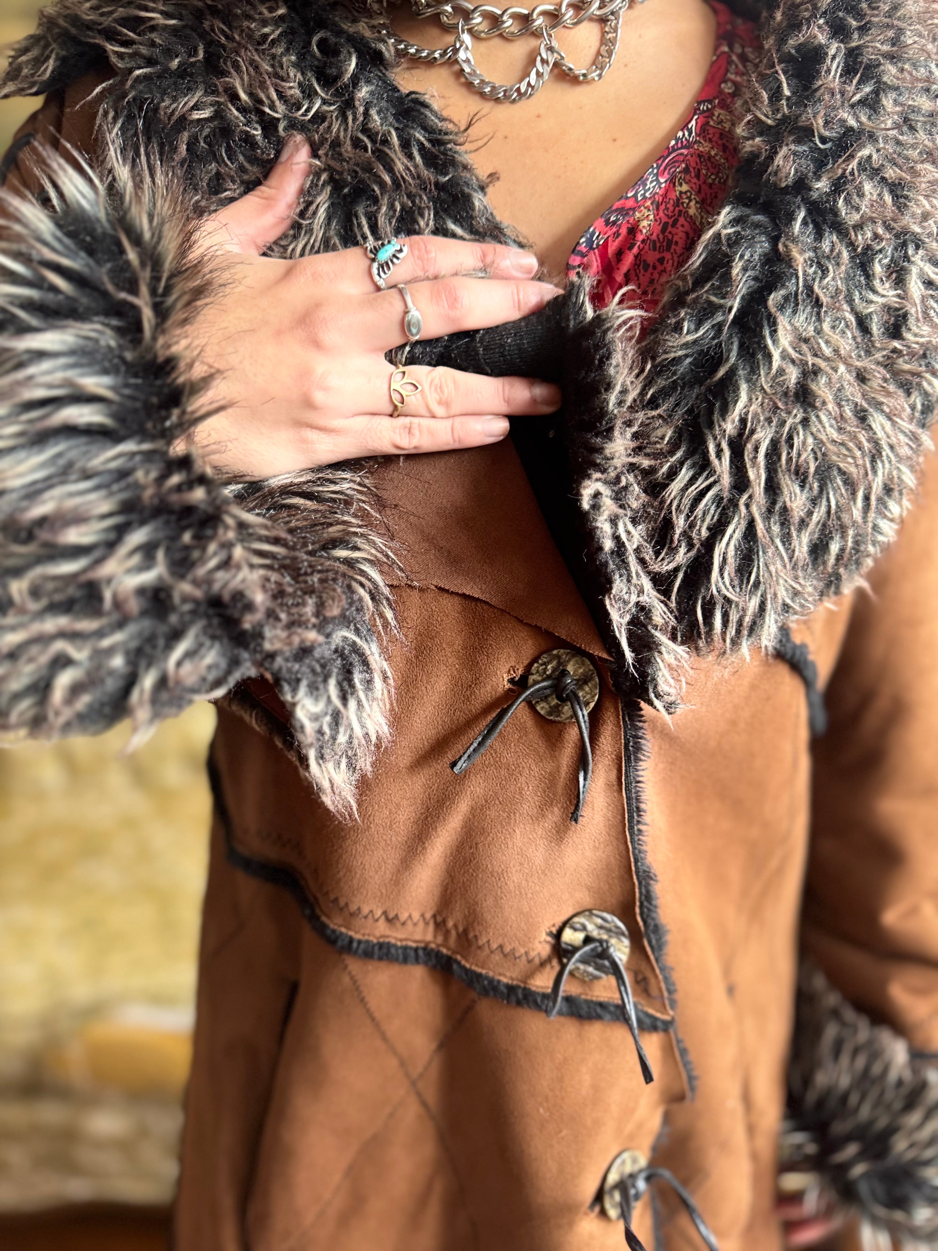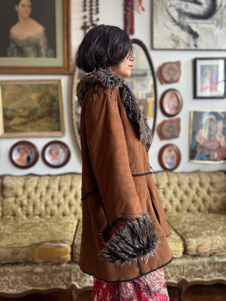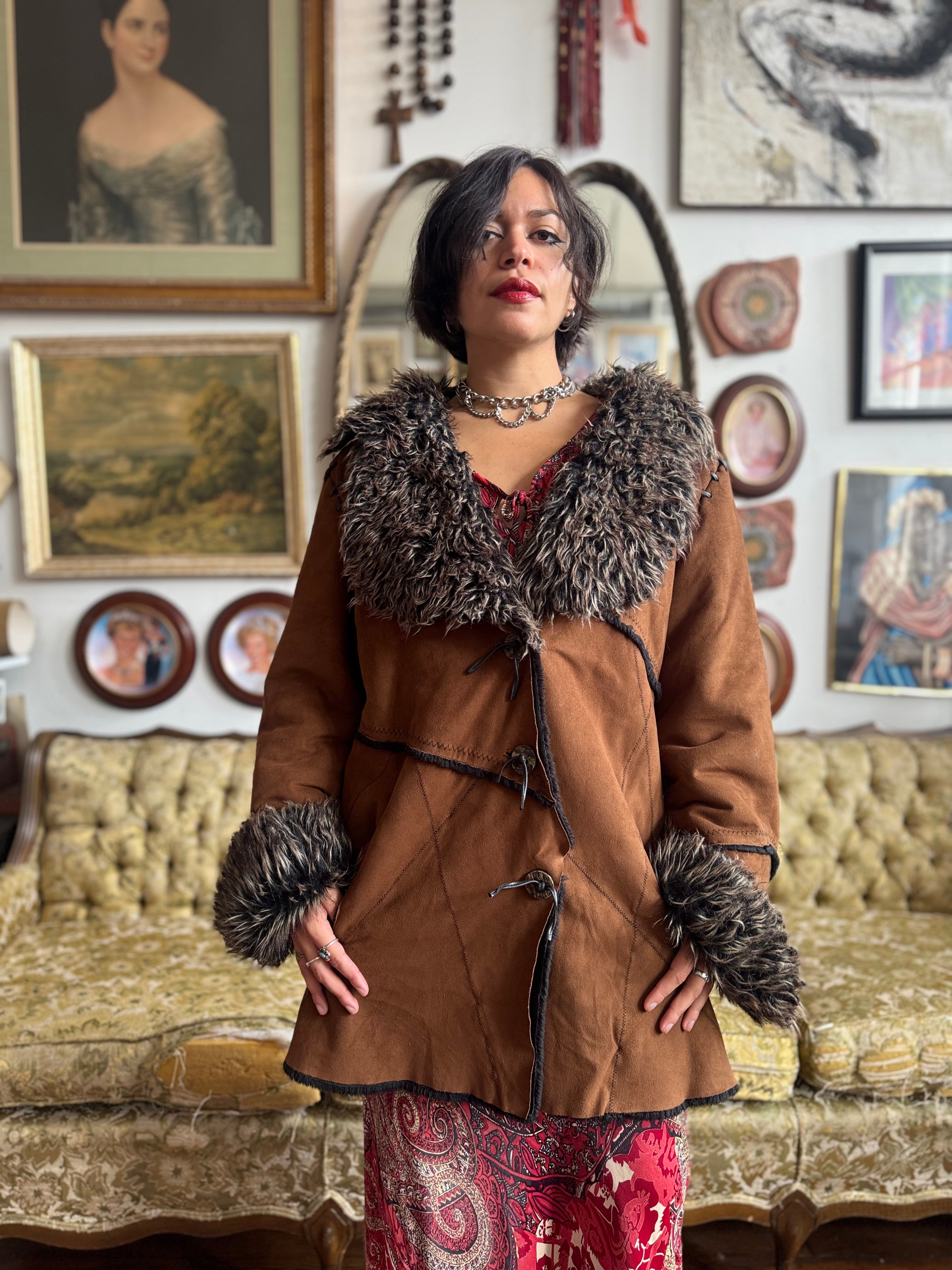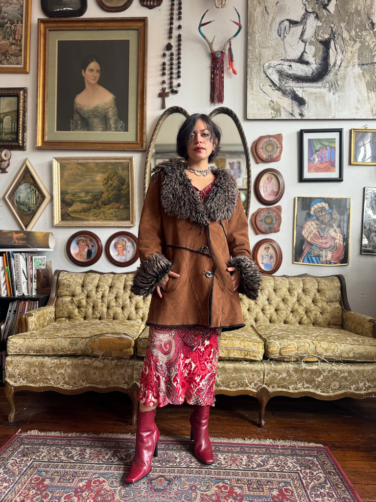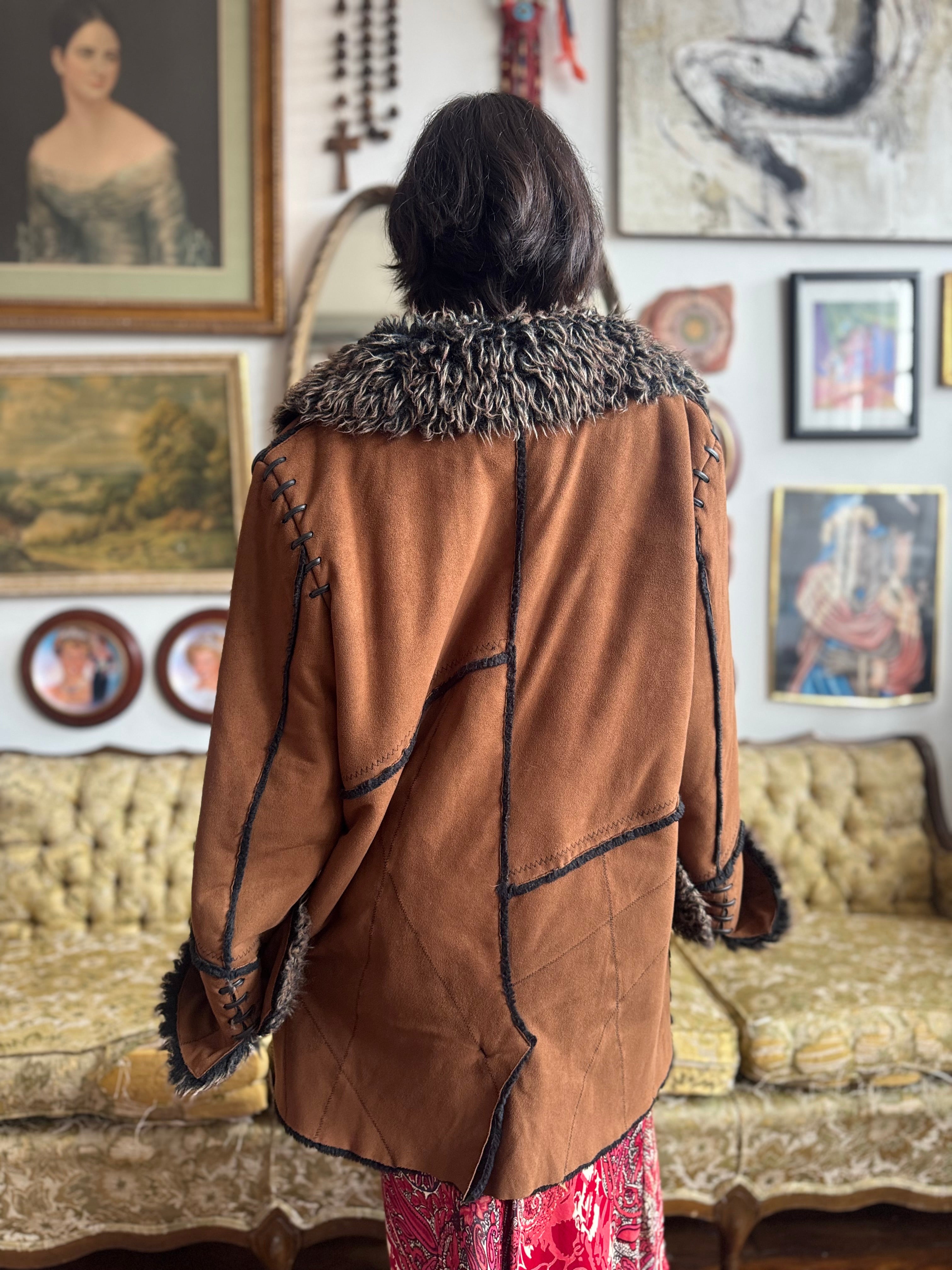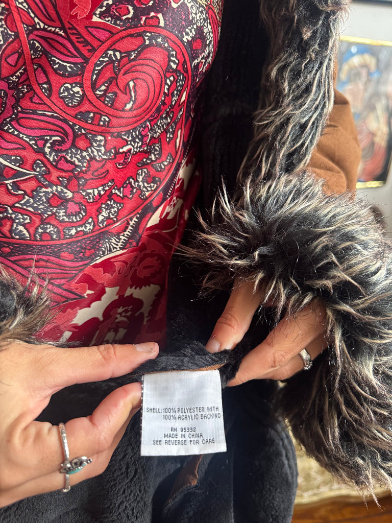 Vintage Faux Fur and Faux Suede Winter Jacket Ladies XL by Witch and Wolf
