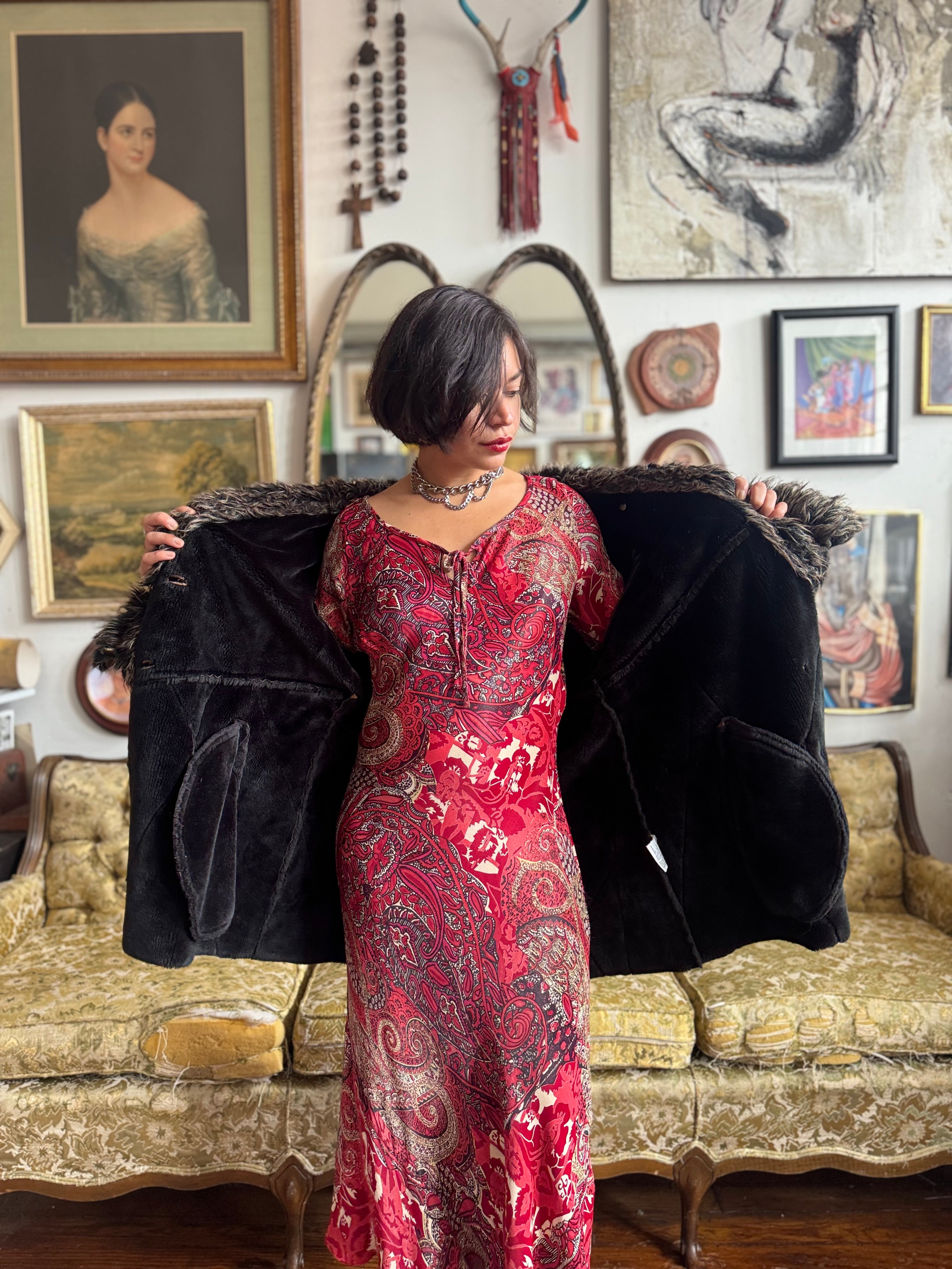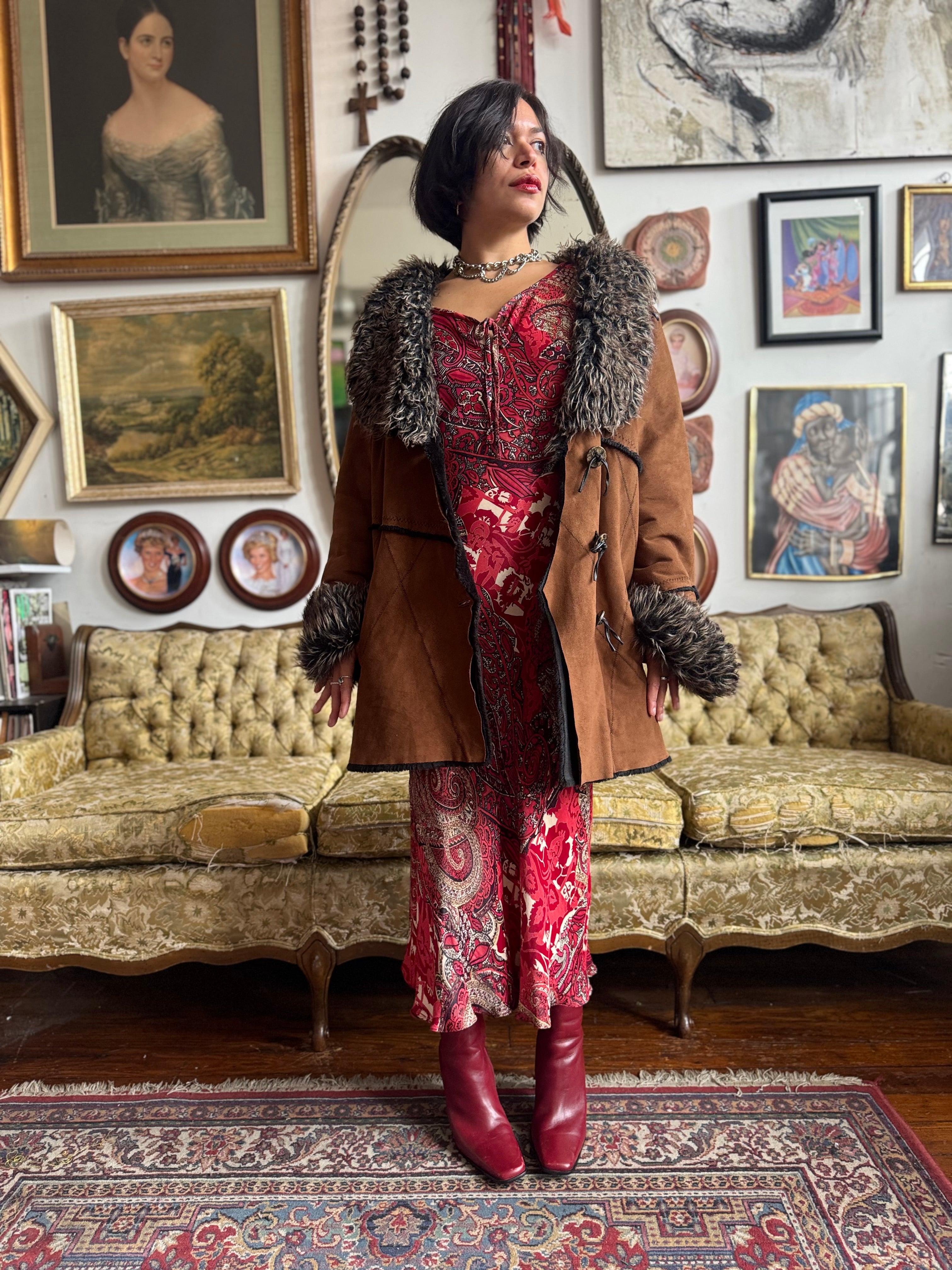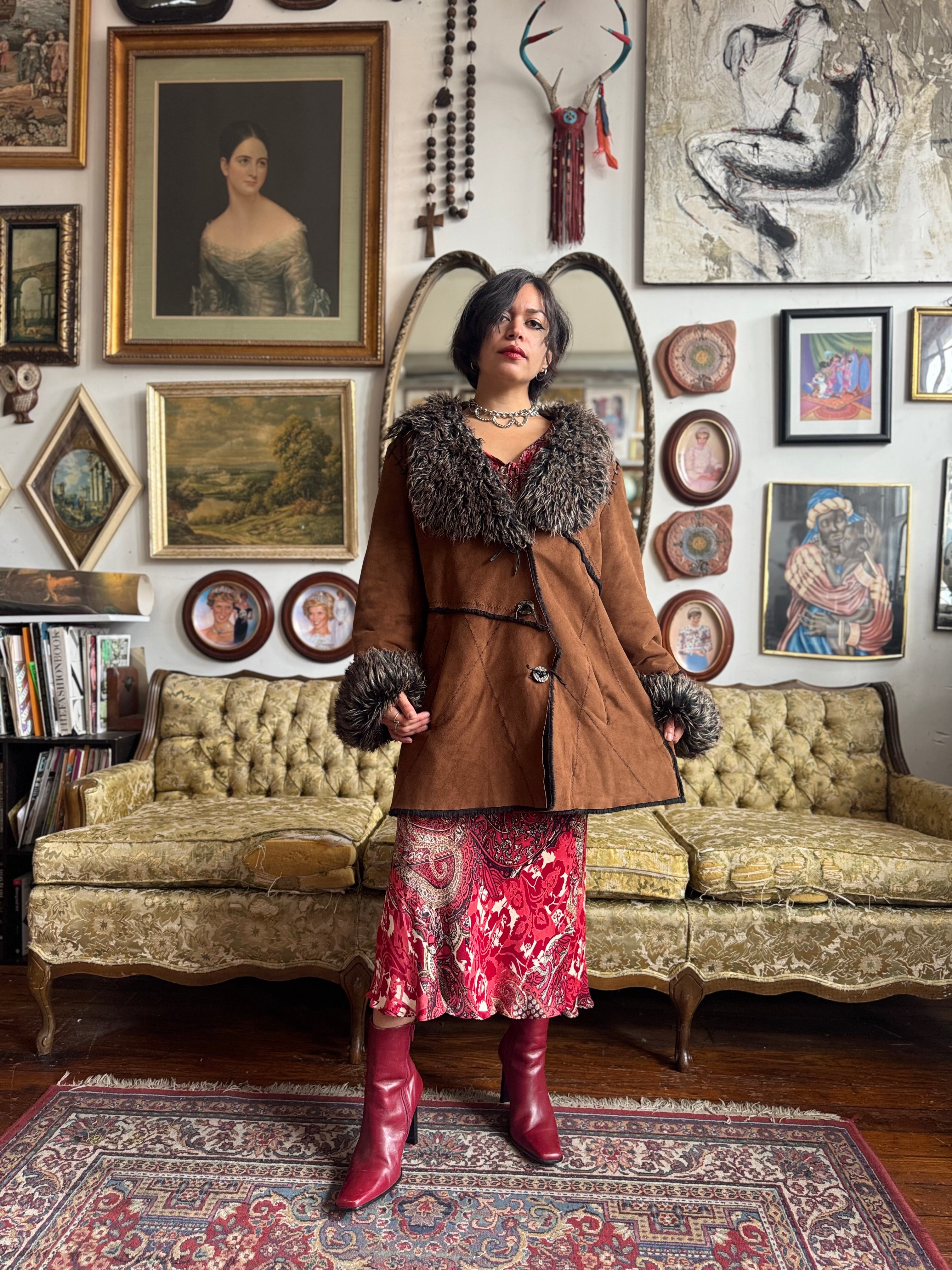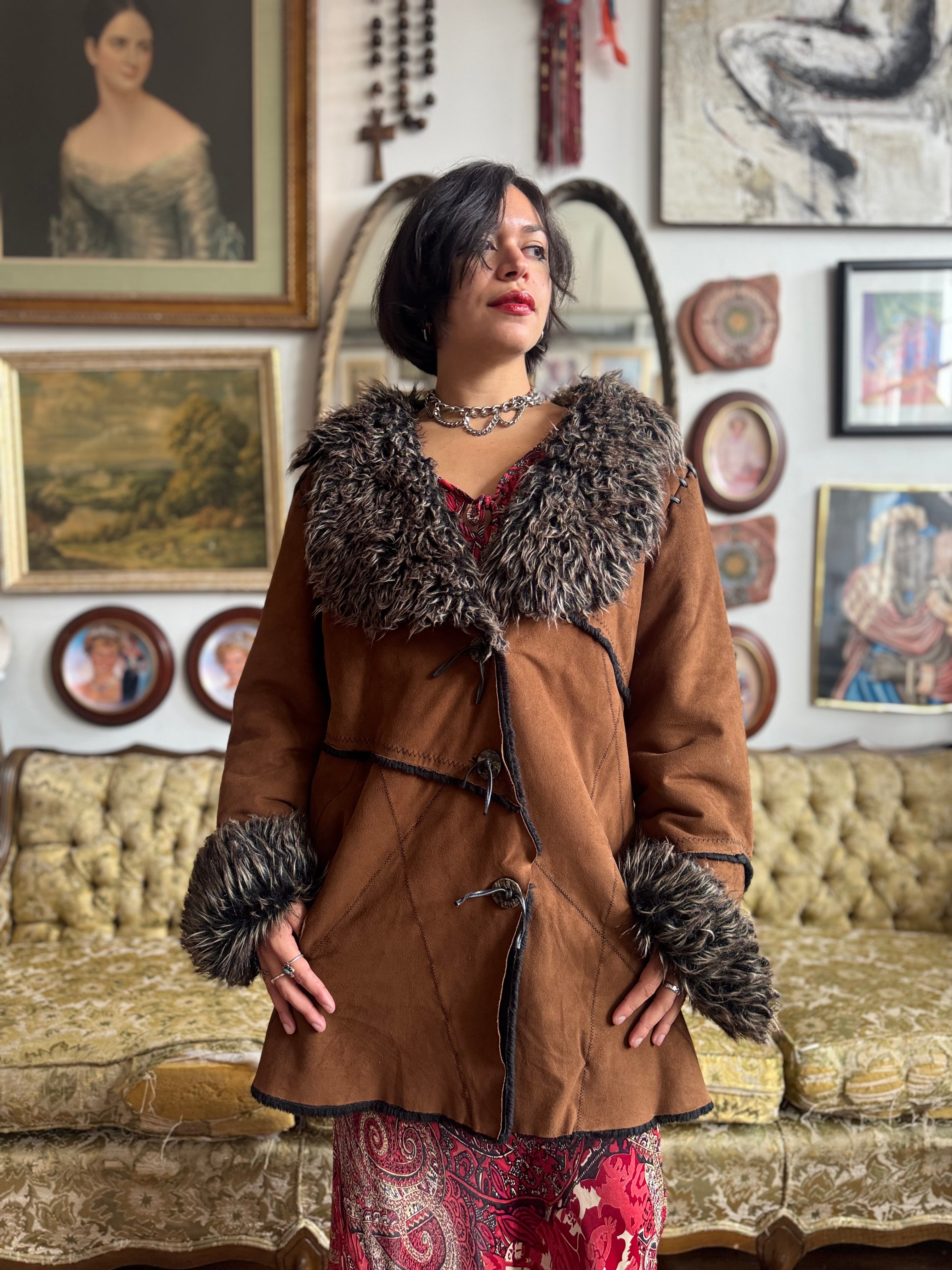 Vintage Faux Fur and Faux Suede Winter Jacket Ladies XL by Witch and Wolf
