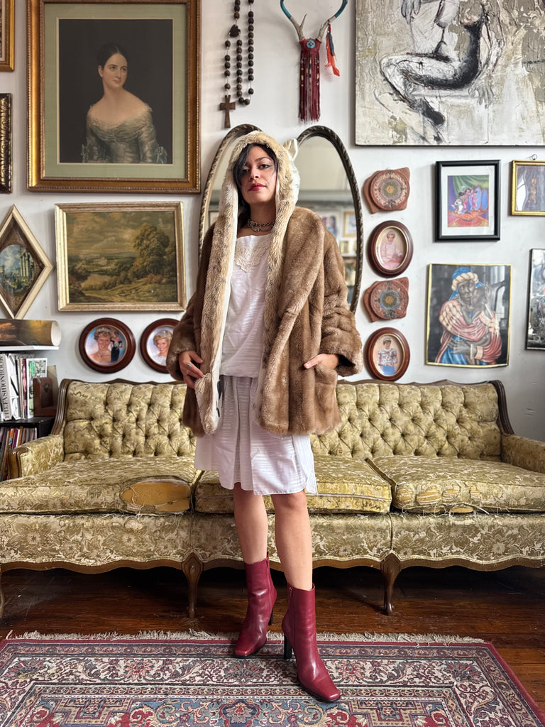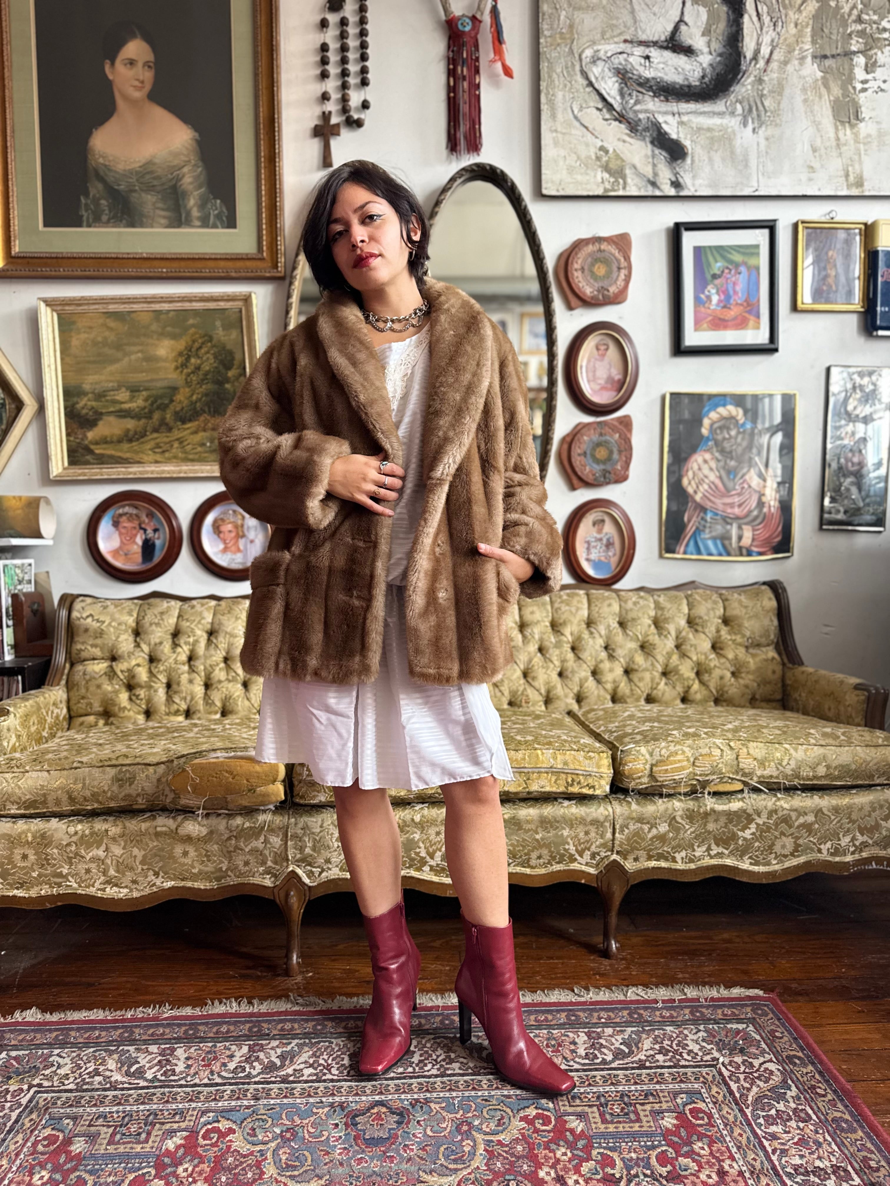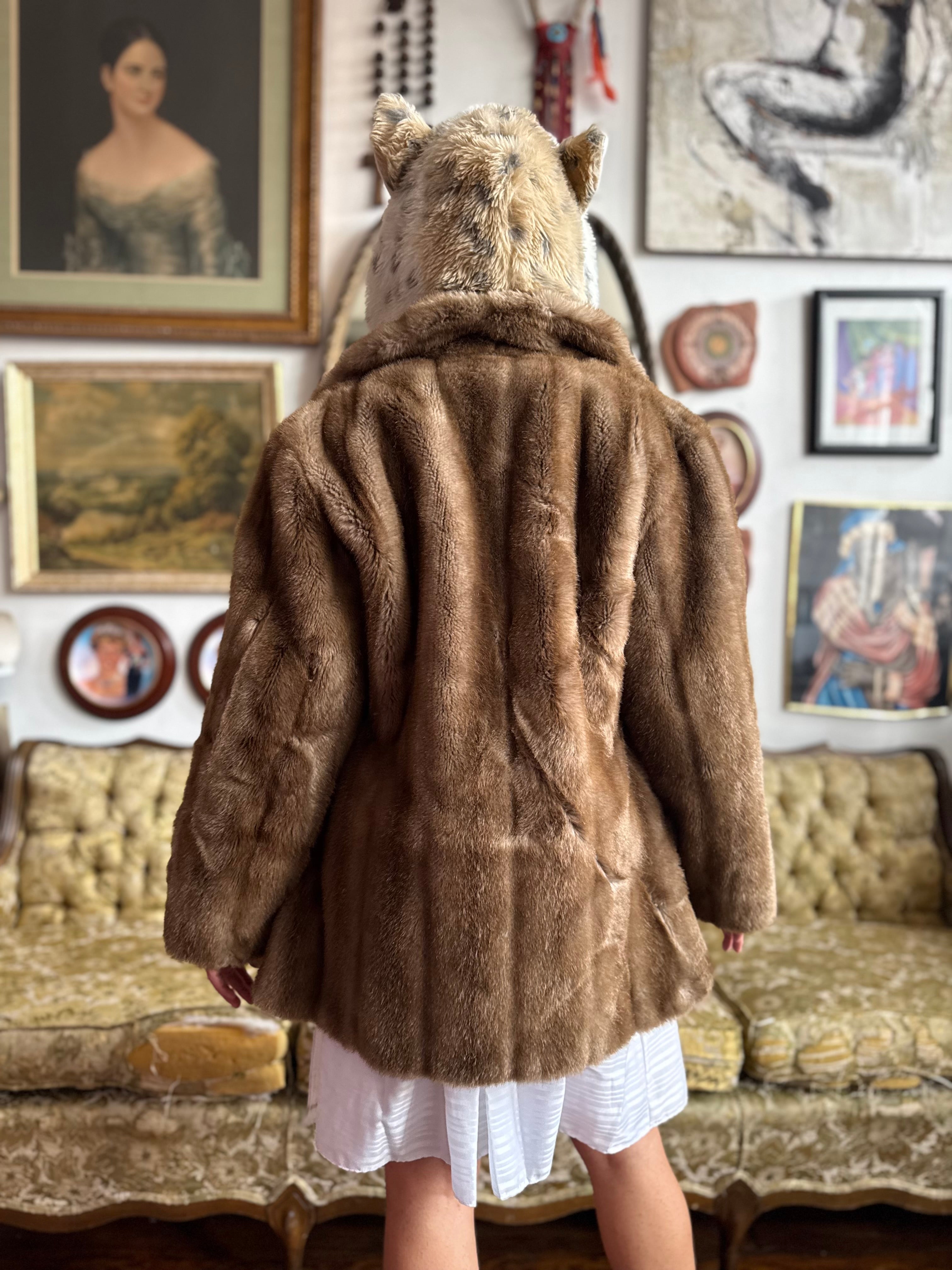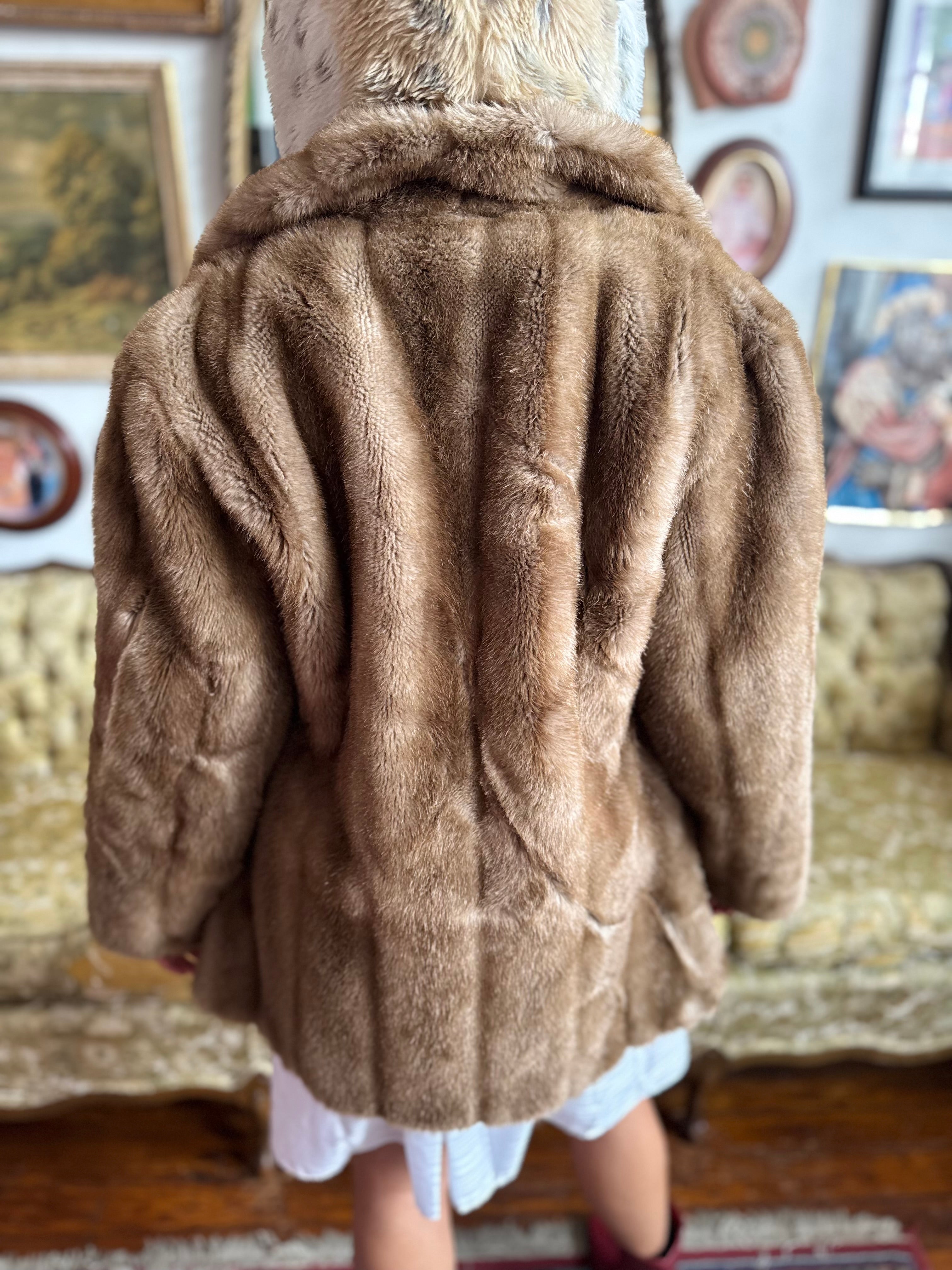 70s Vintage Faux Mink Fur Winter Coat Size Medium