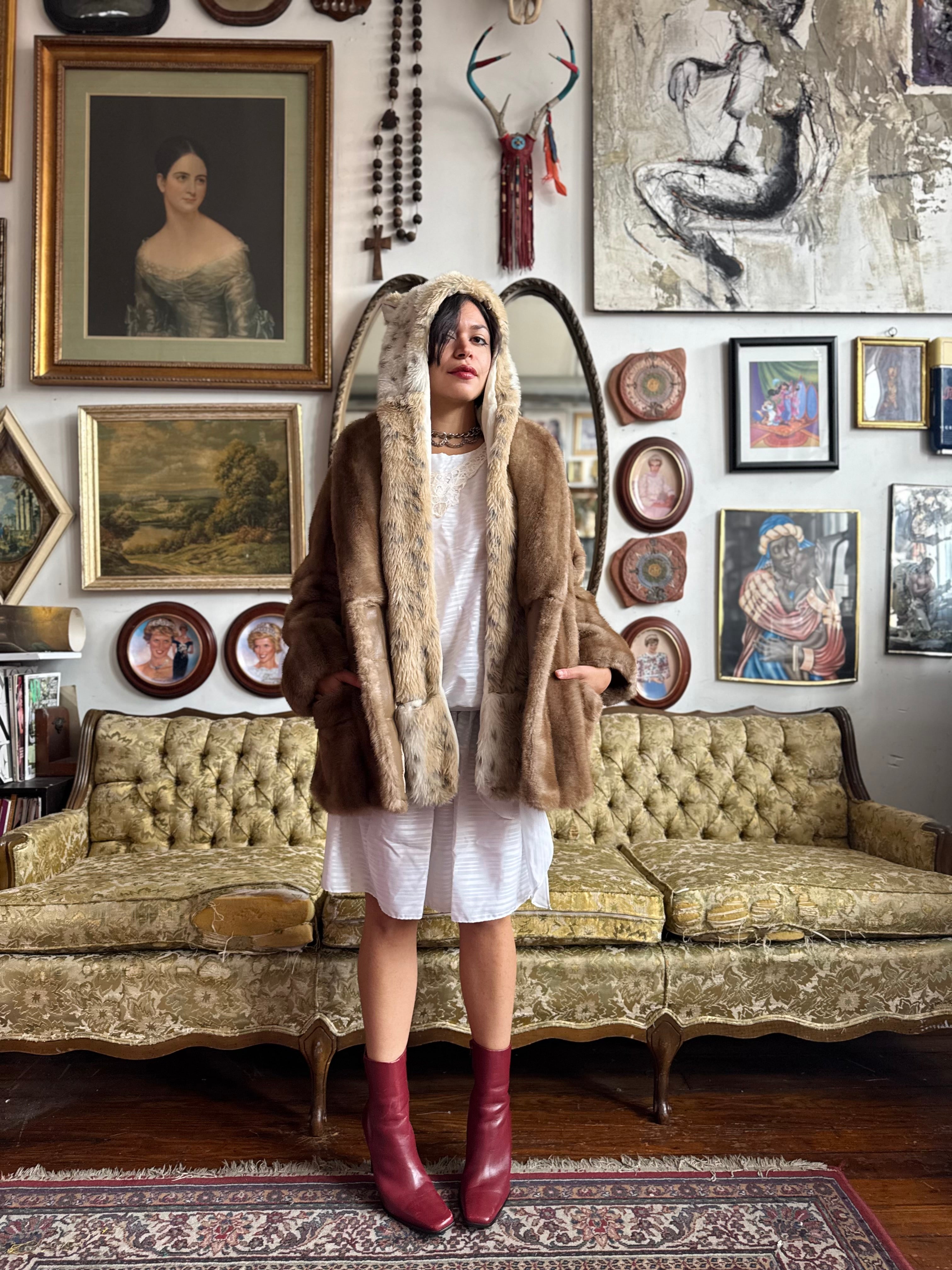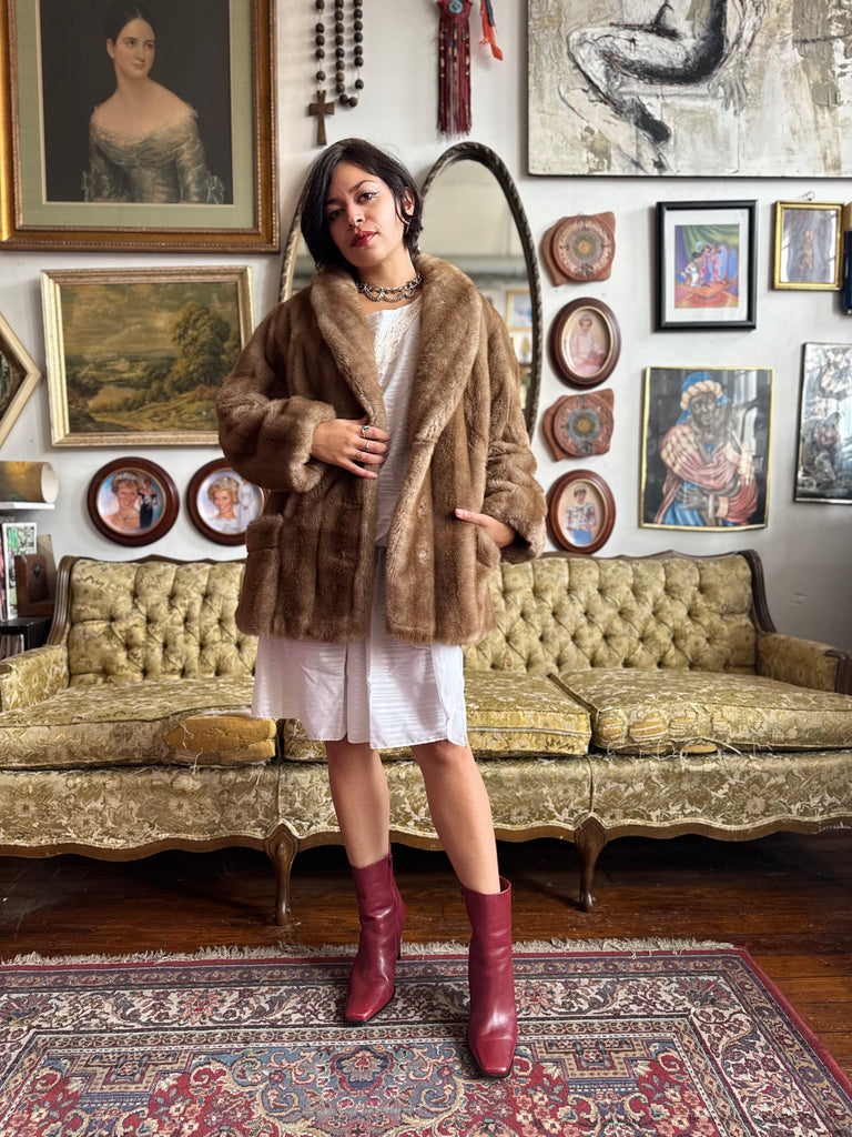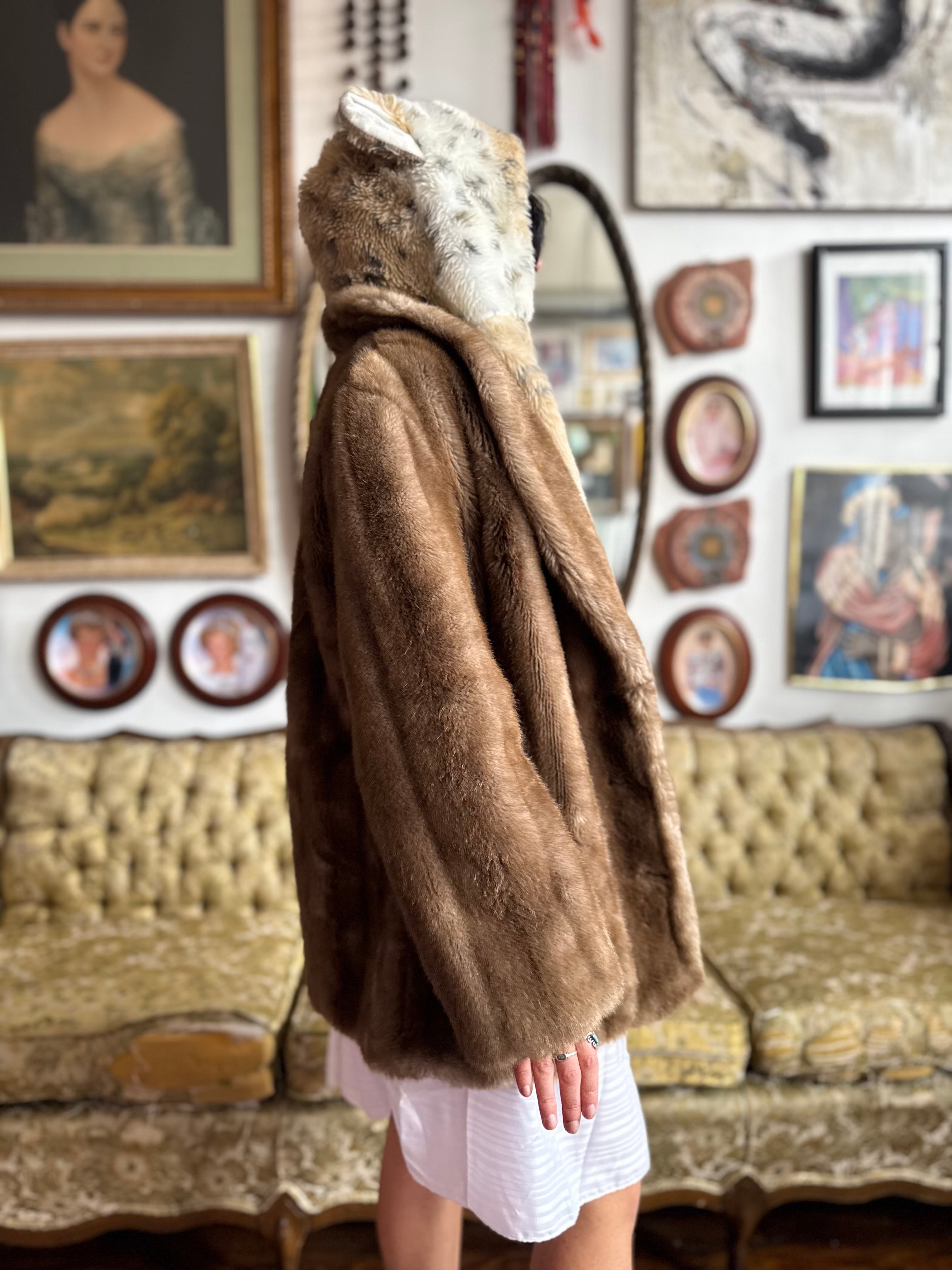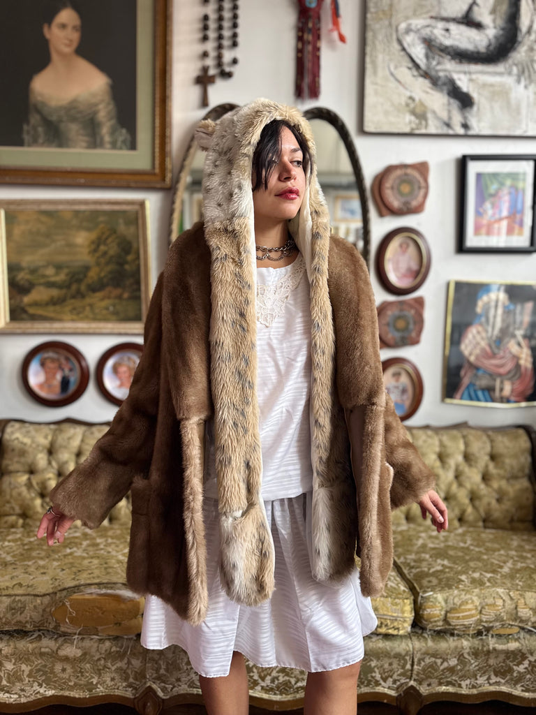 70s Vintage Faux Mink Fur Winter Coat Size Medium