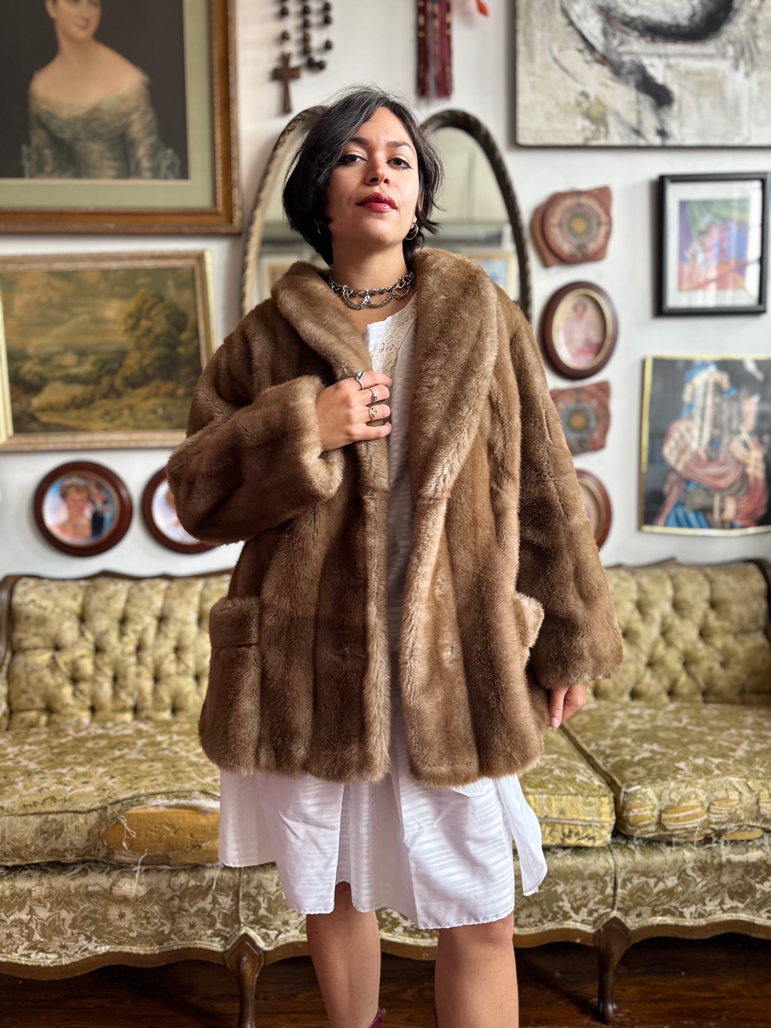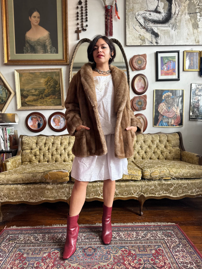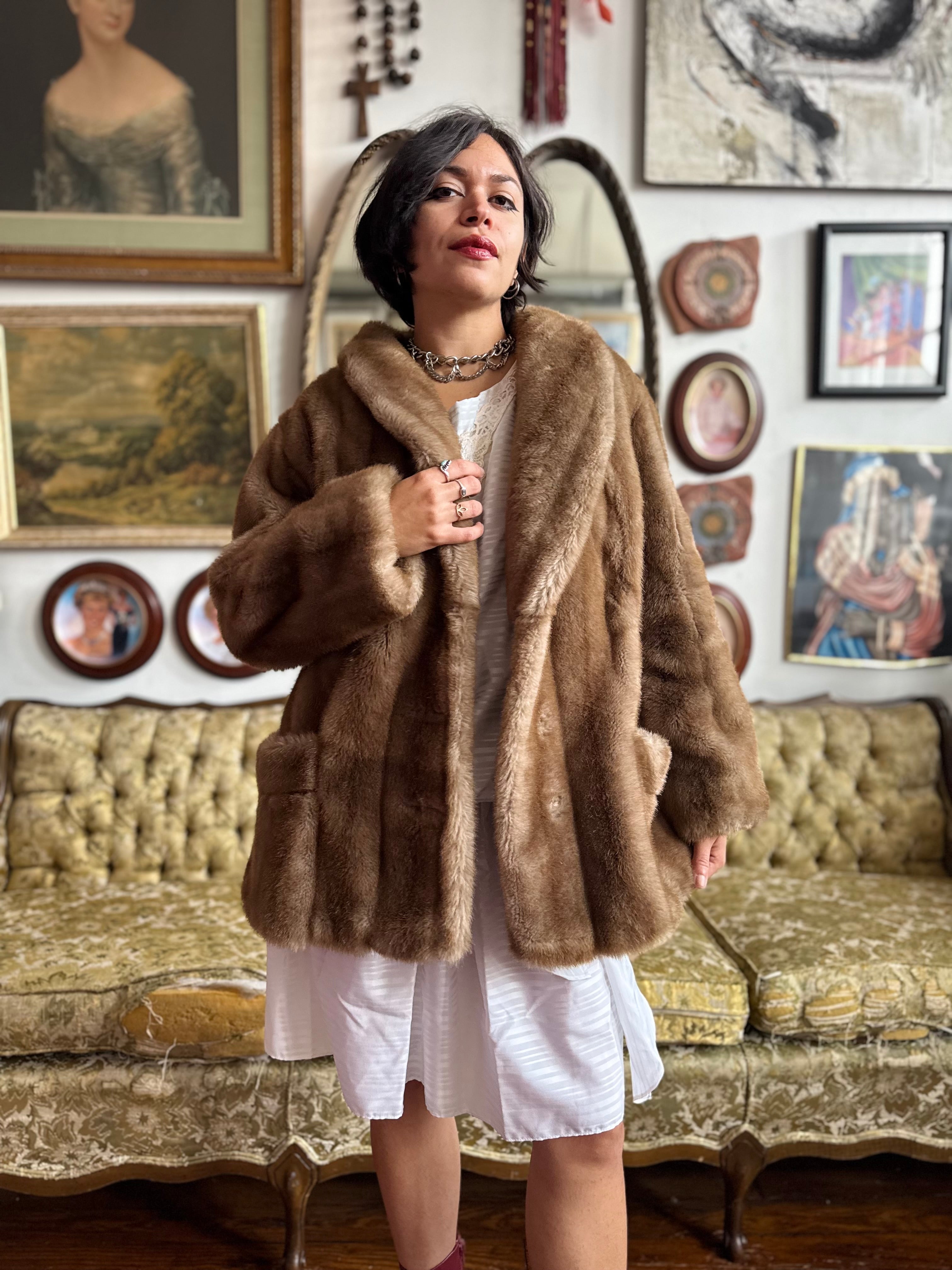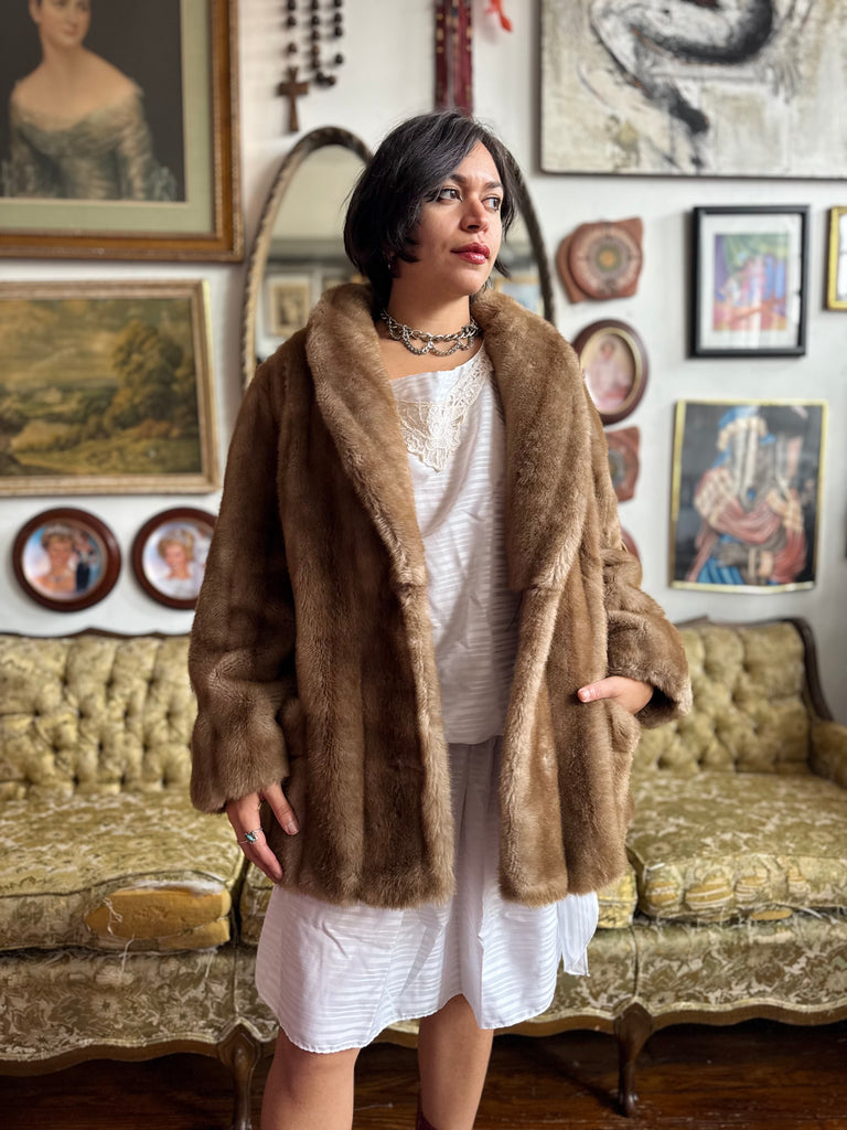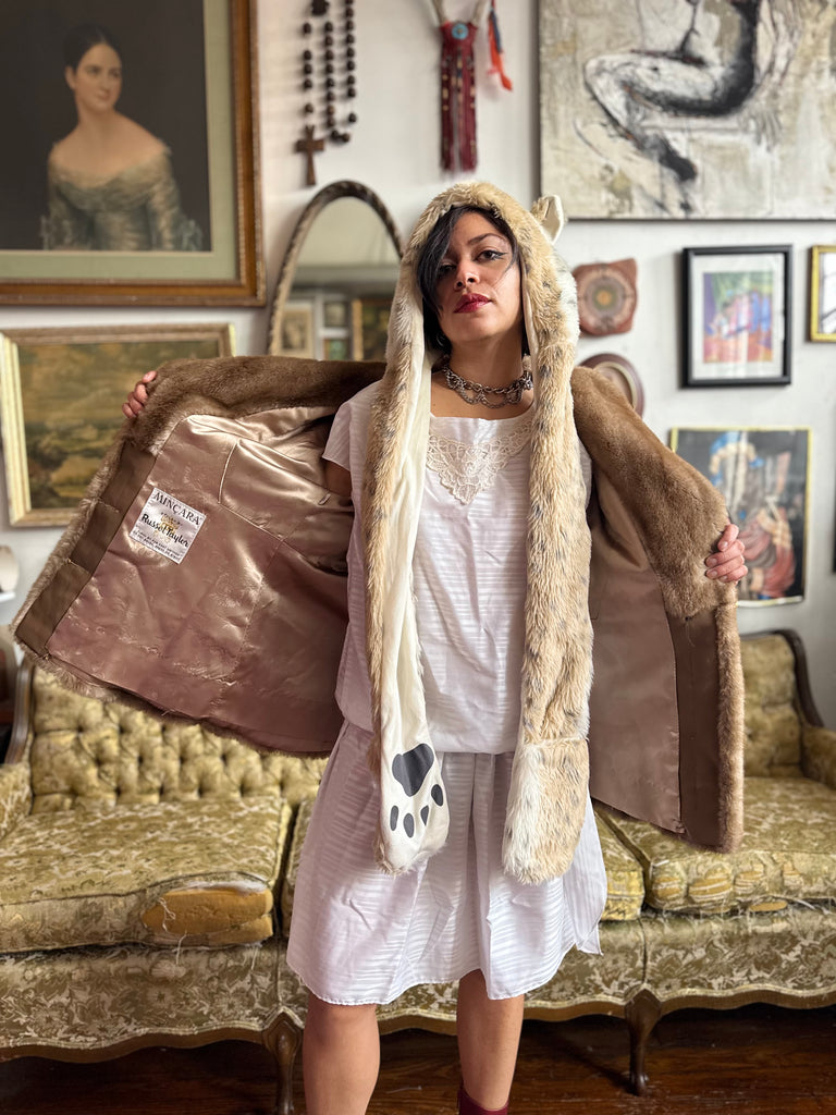 70s Vintage Faux Mink Fur Winter Coat Size Medium