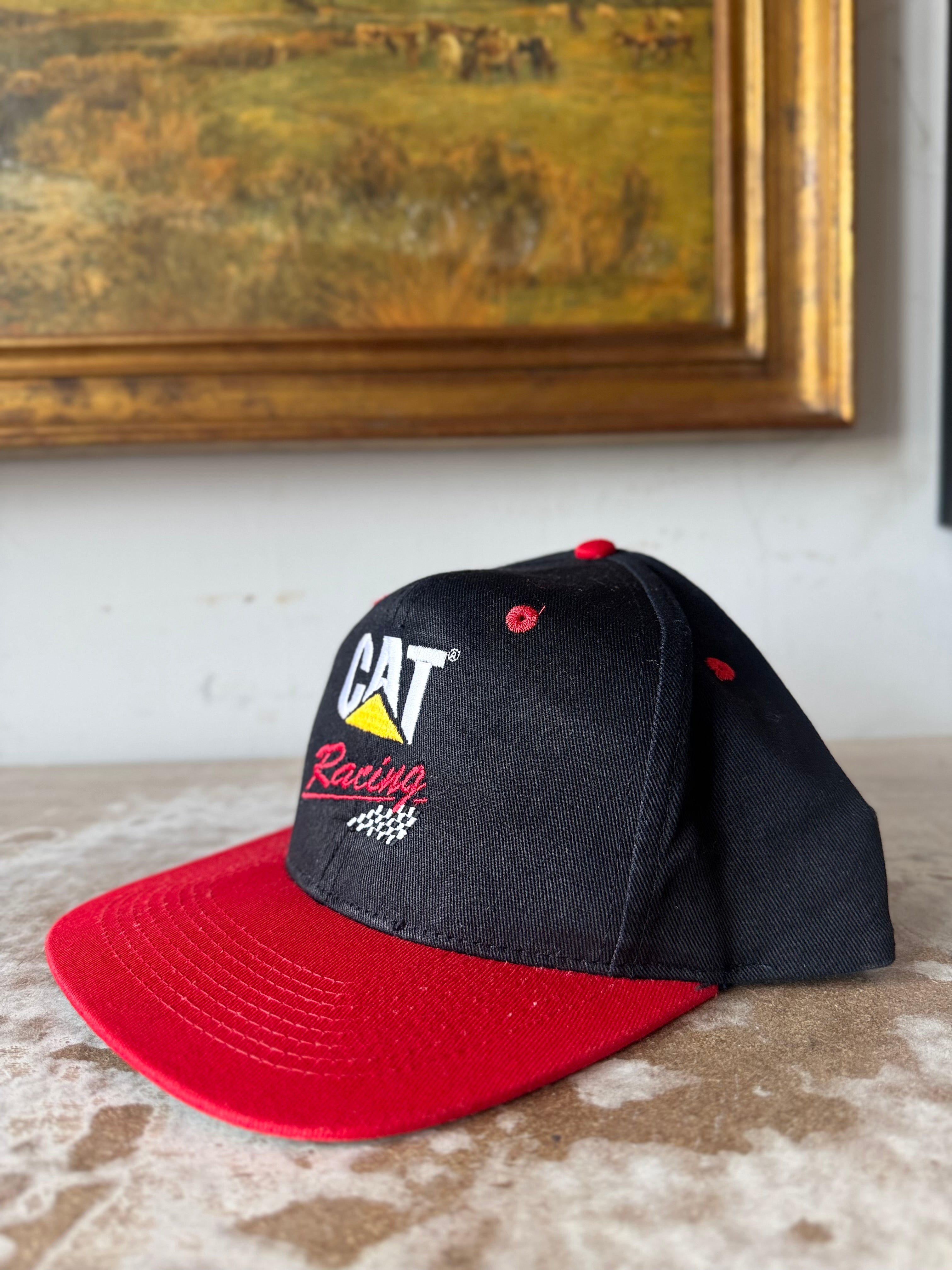 Vintage CAT Racing Baseball Cap Caterpillar NASCAR Hat Black Red Flames