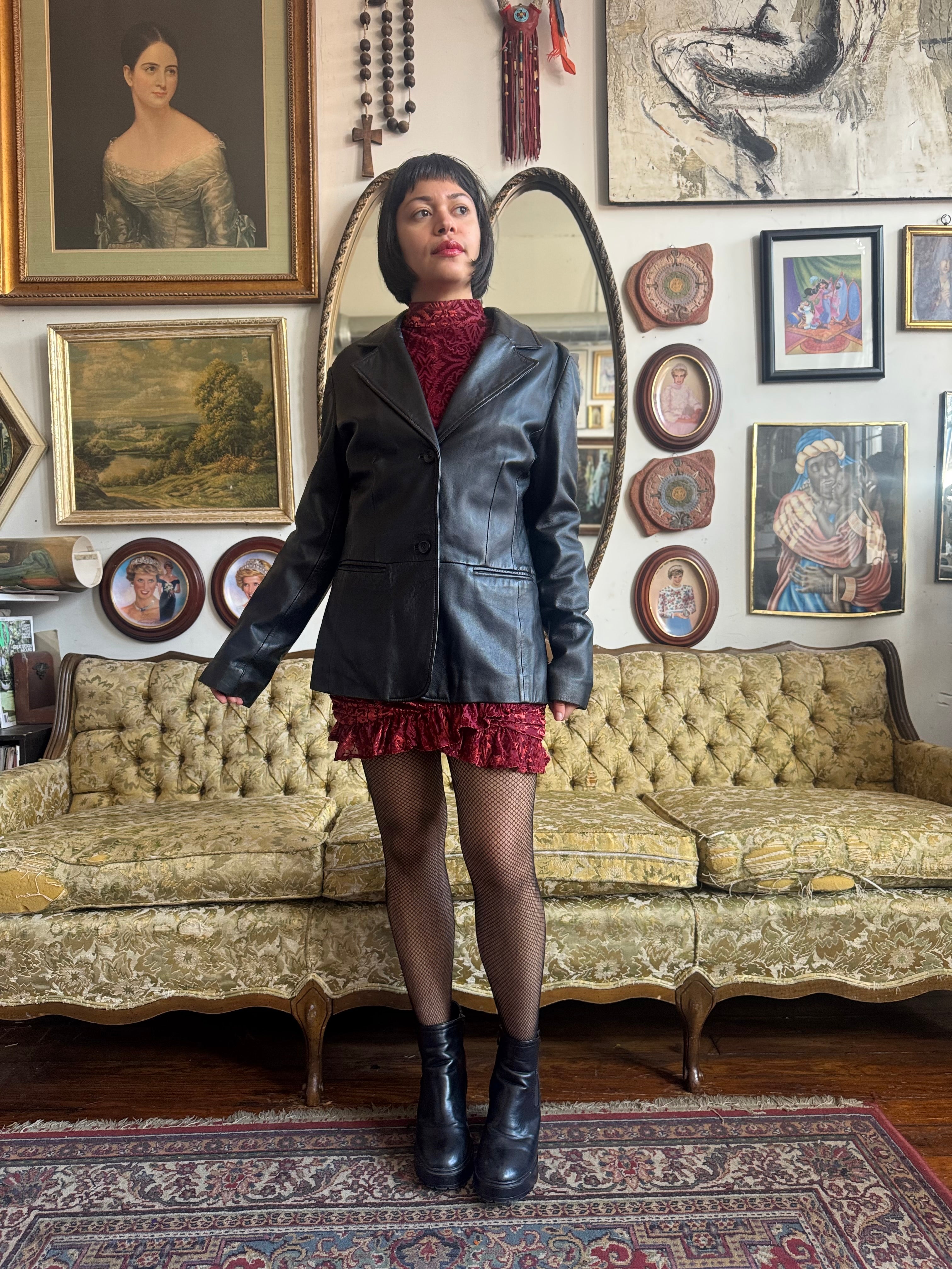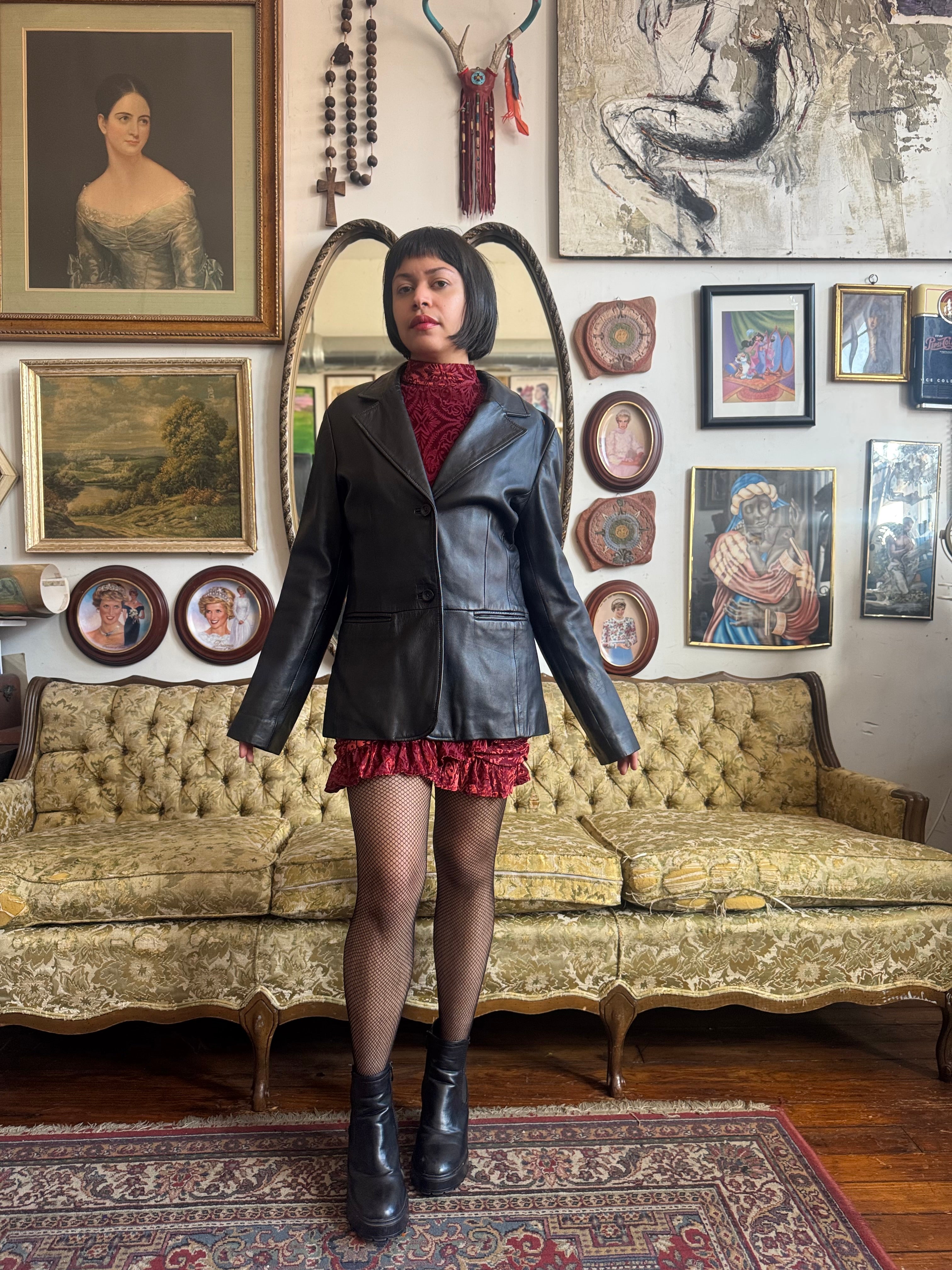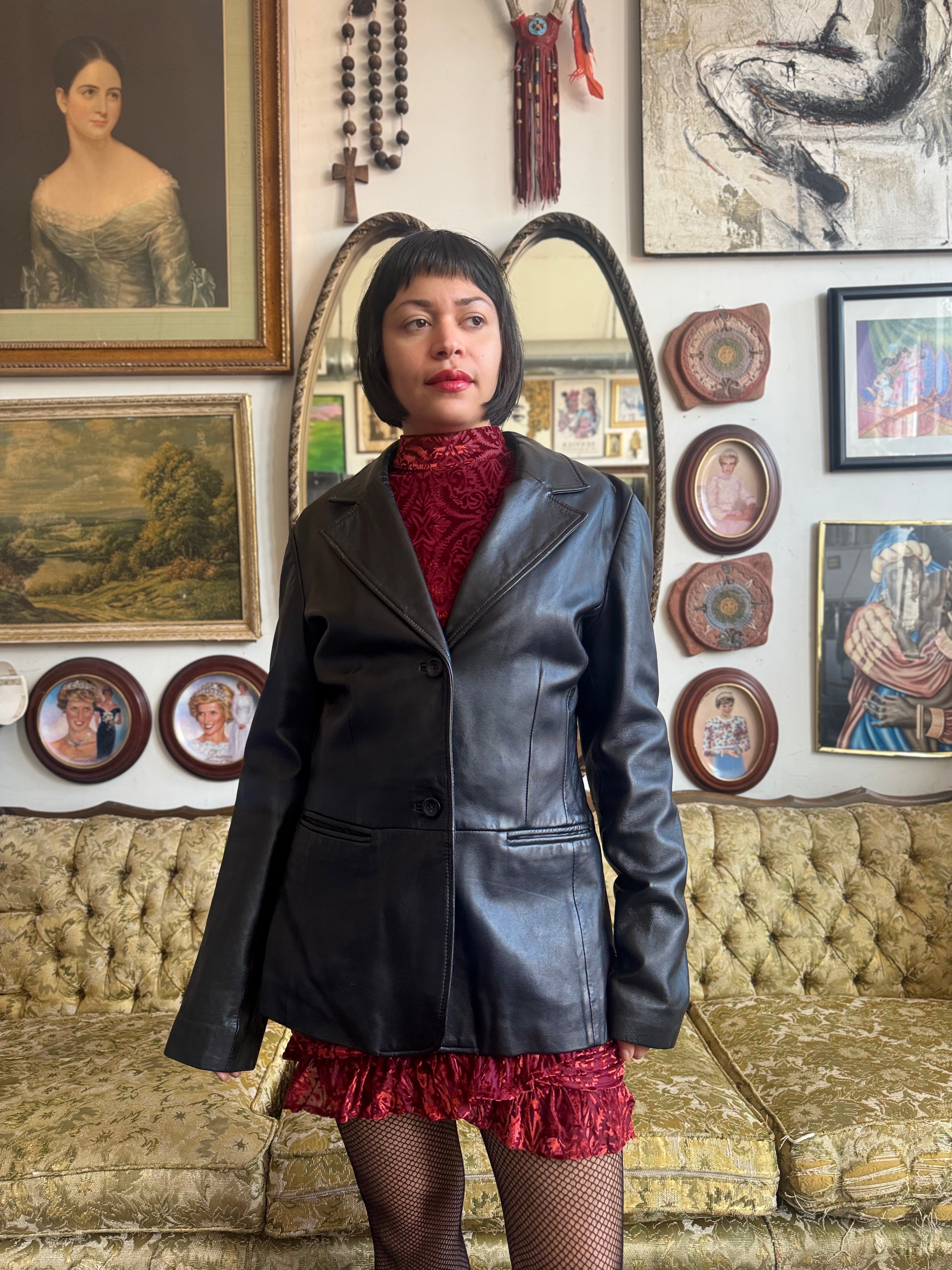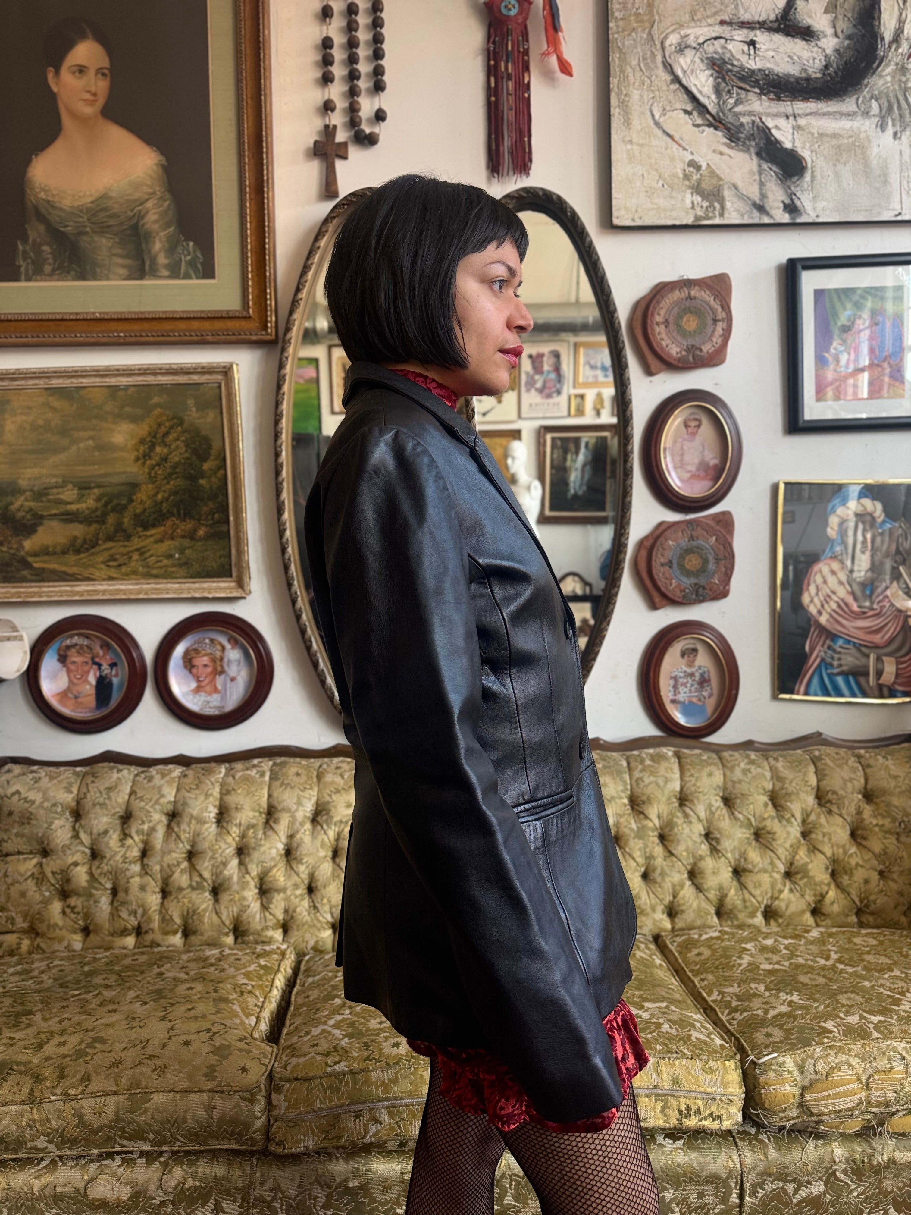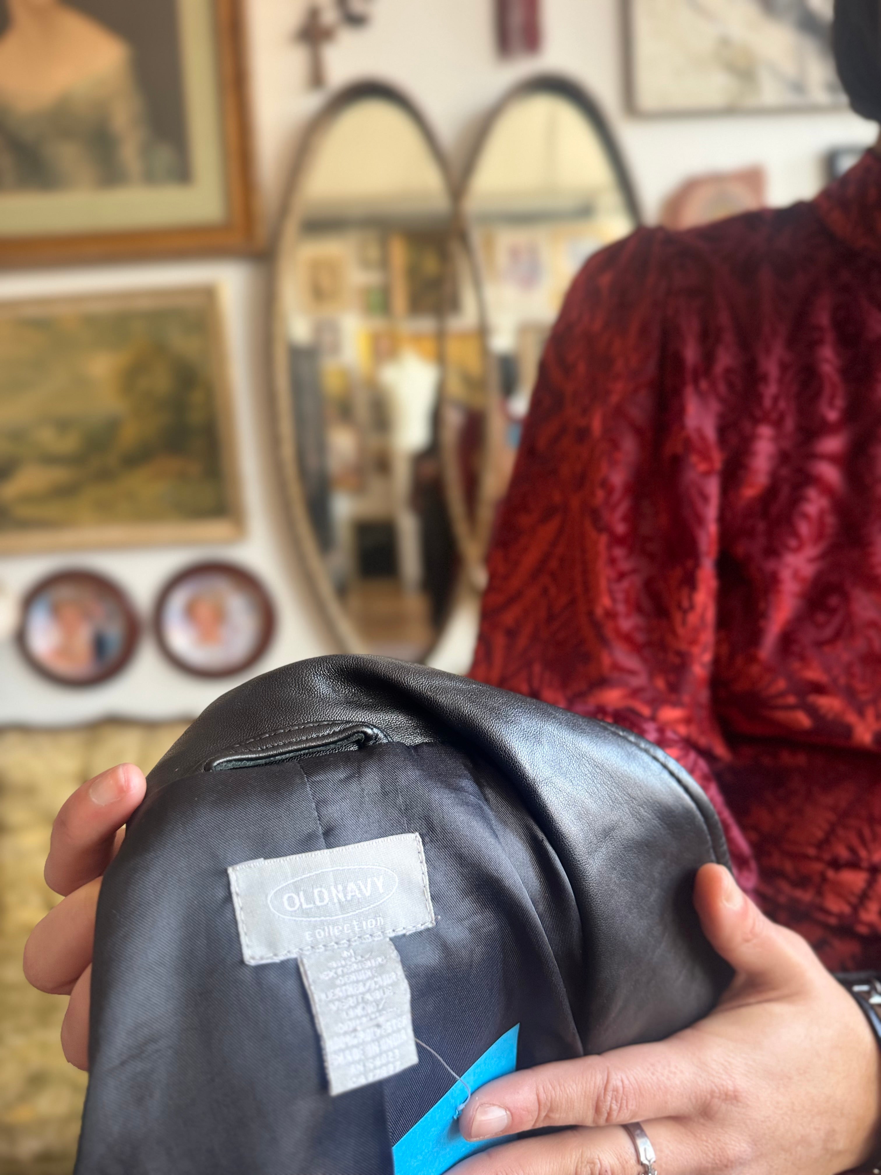 Vintage Old Navy Black Leather Trench Coat Ladies Medium