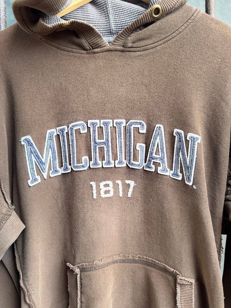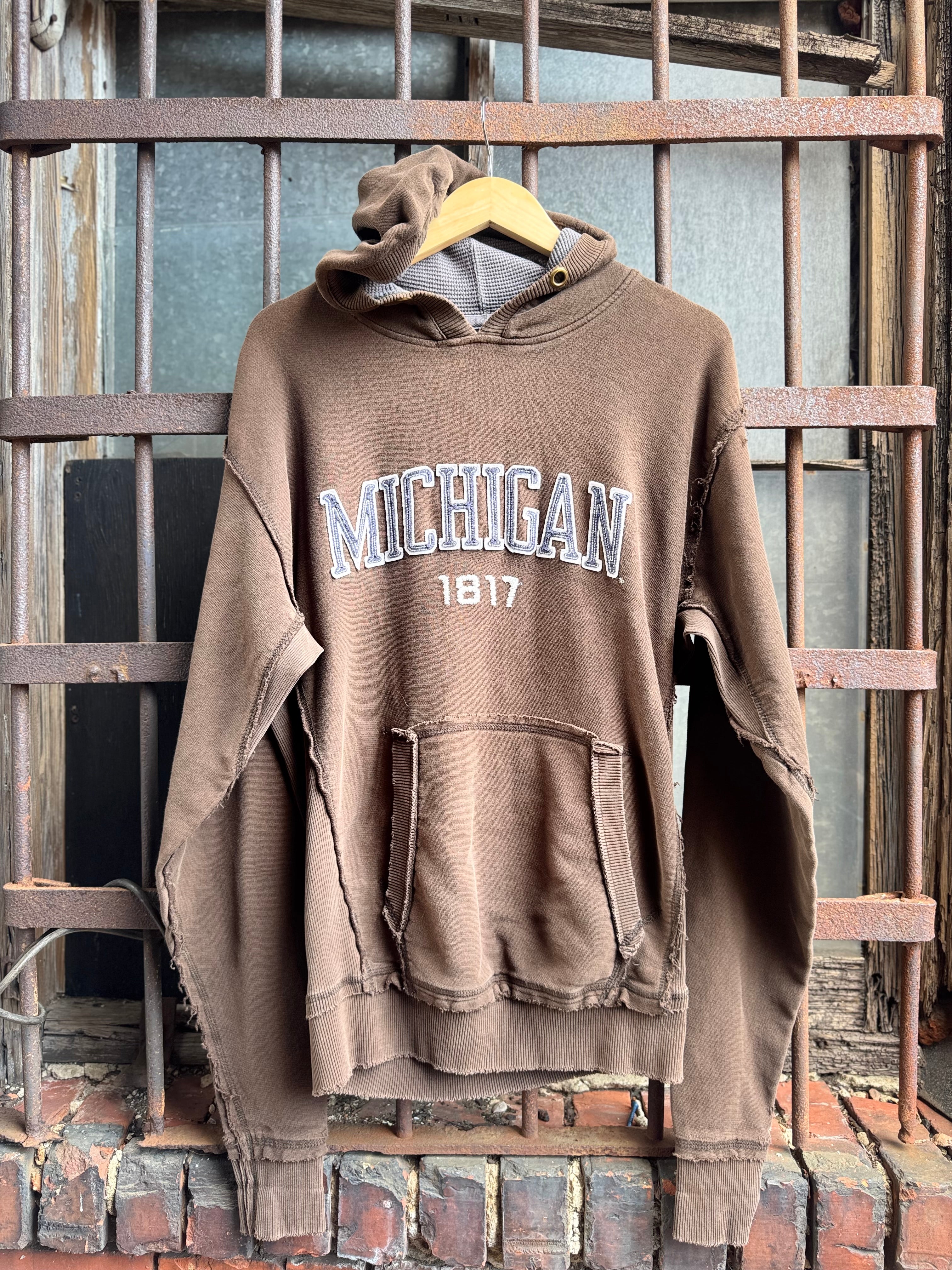Vintage Distressed Thermal Hooded Michigan Collegiate Sweatshirt