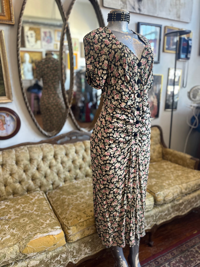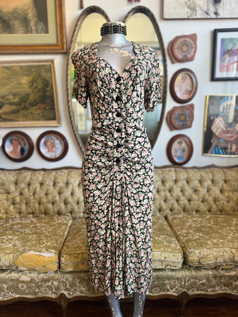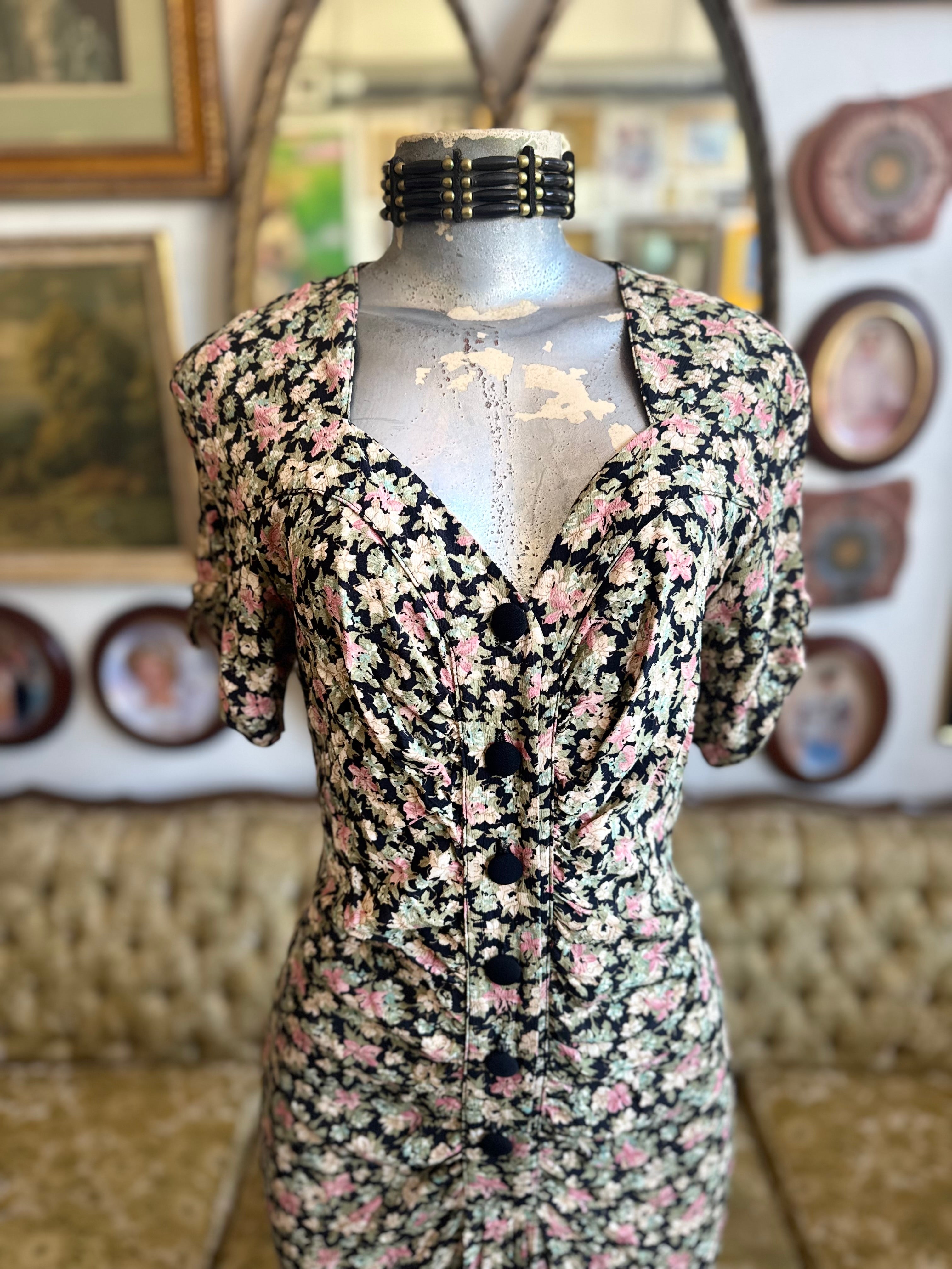 Vintage Cottage Core Shelli Segal Floral Button Down Dress Size 10/Small