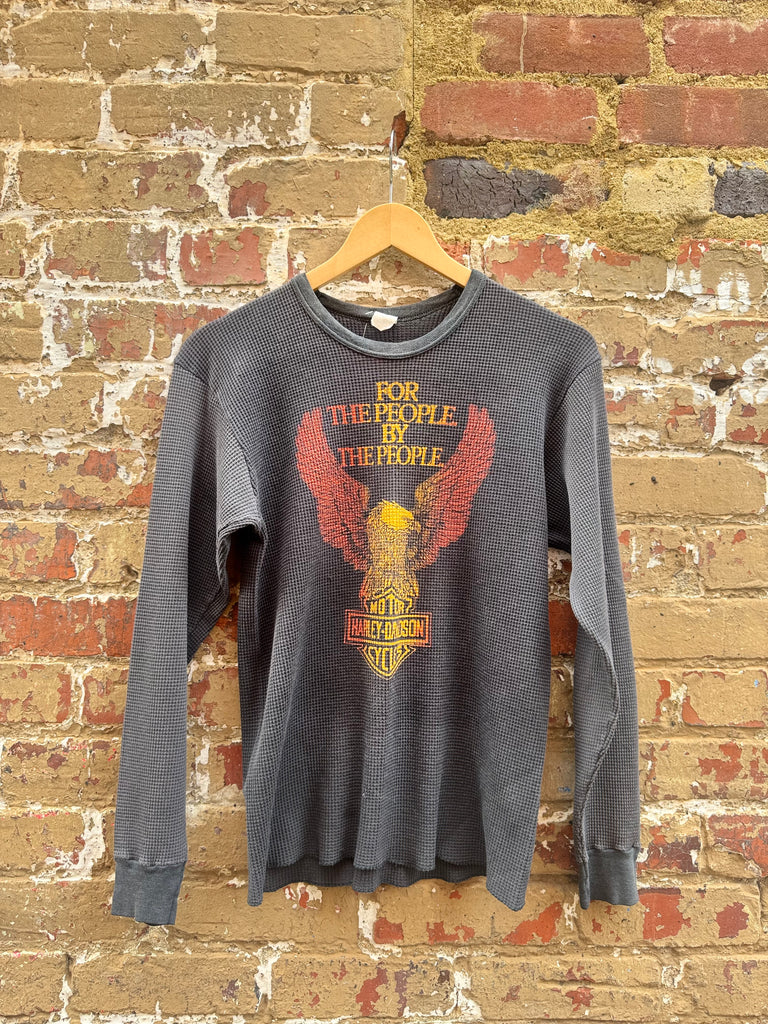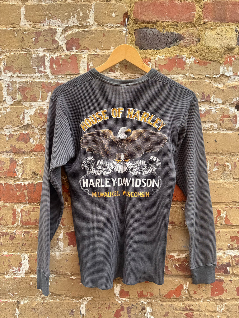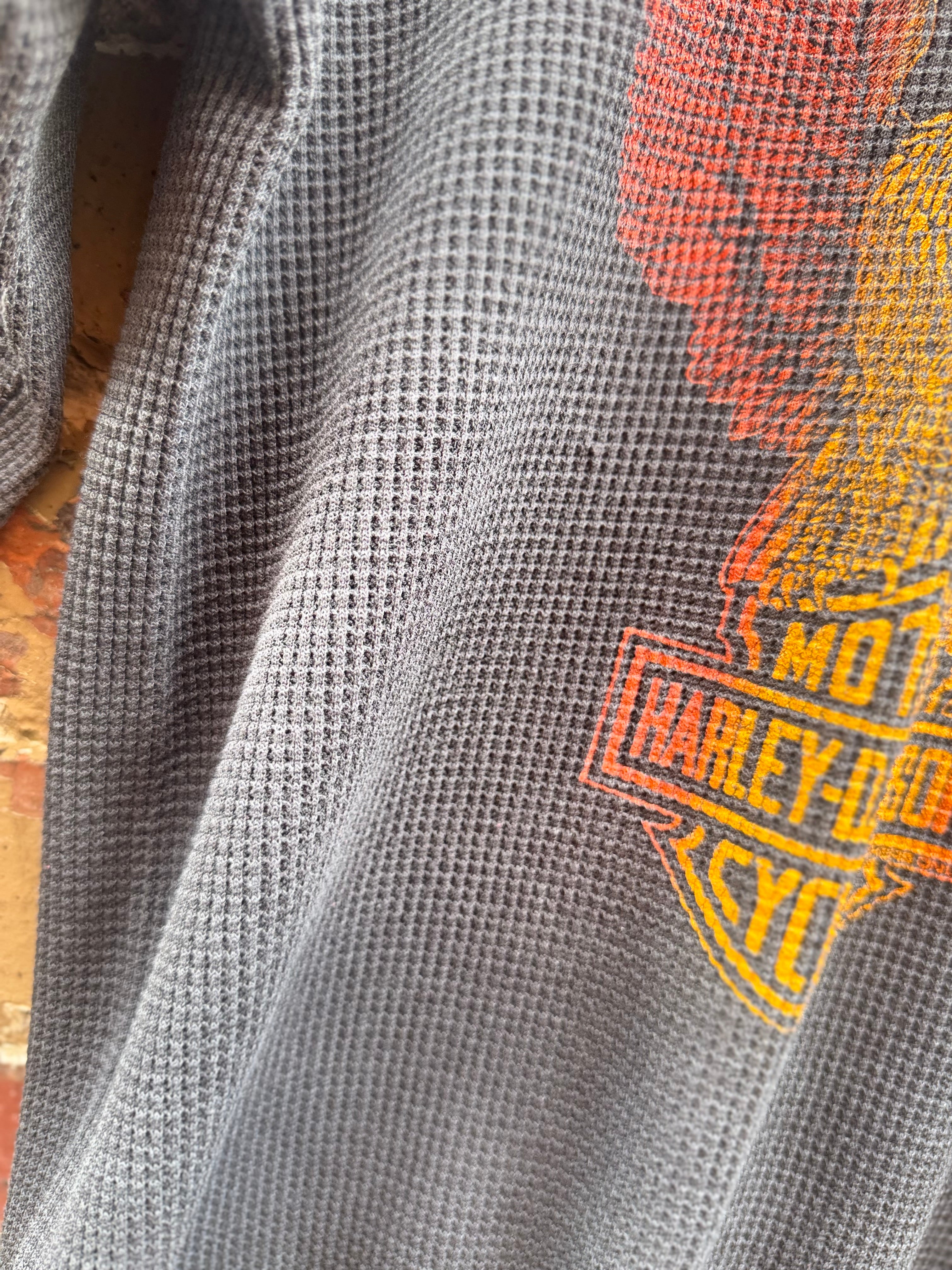 Vintage Harley Davidson Thermal Grey and Black Long Sleeve Top Mens Medium