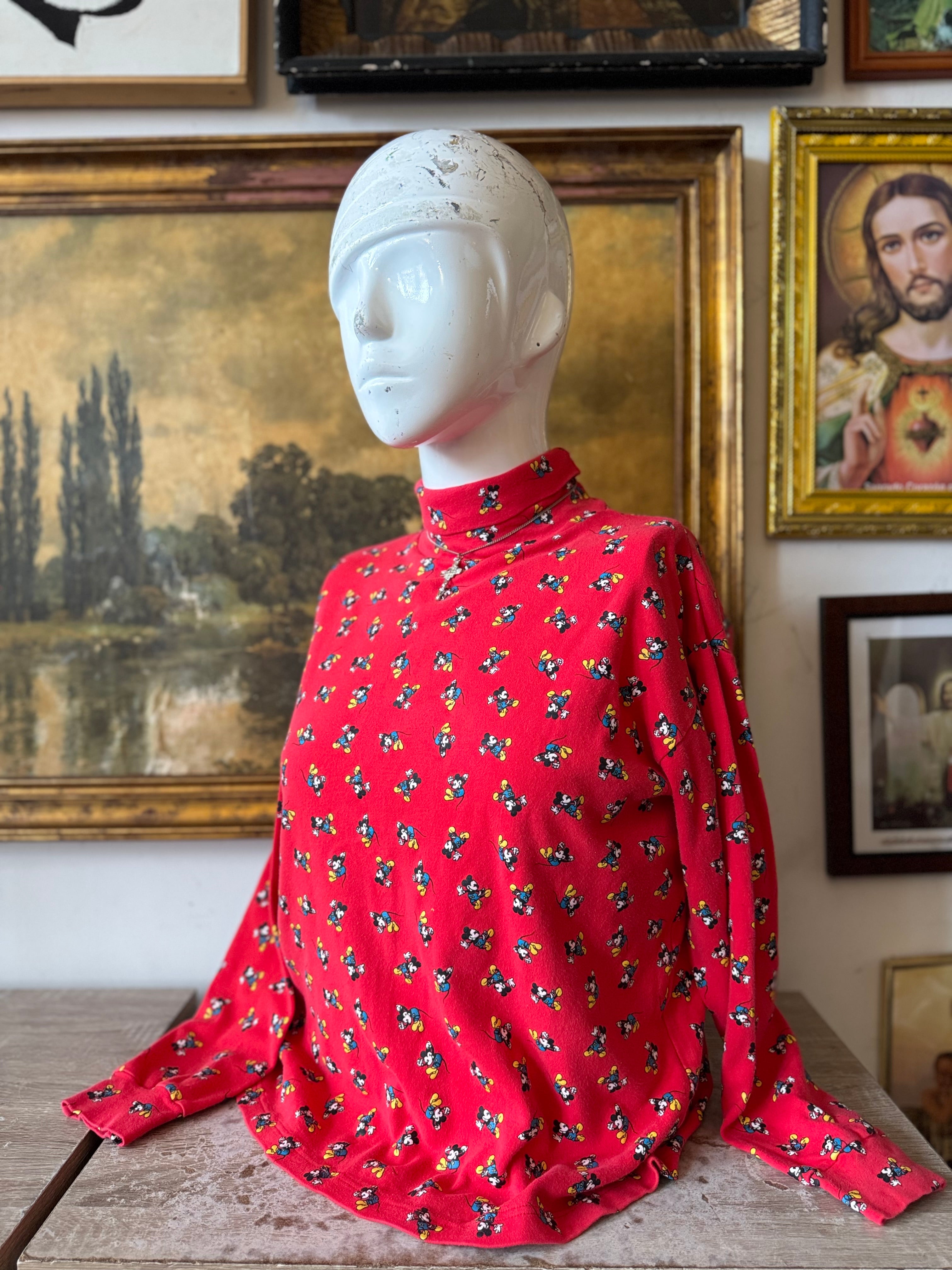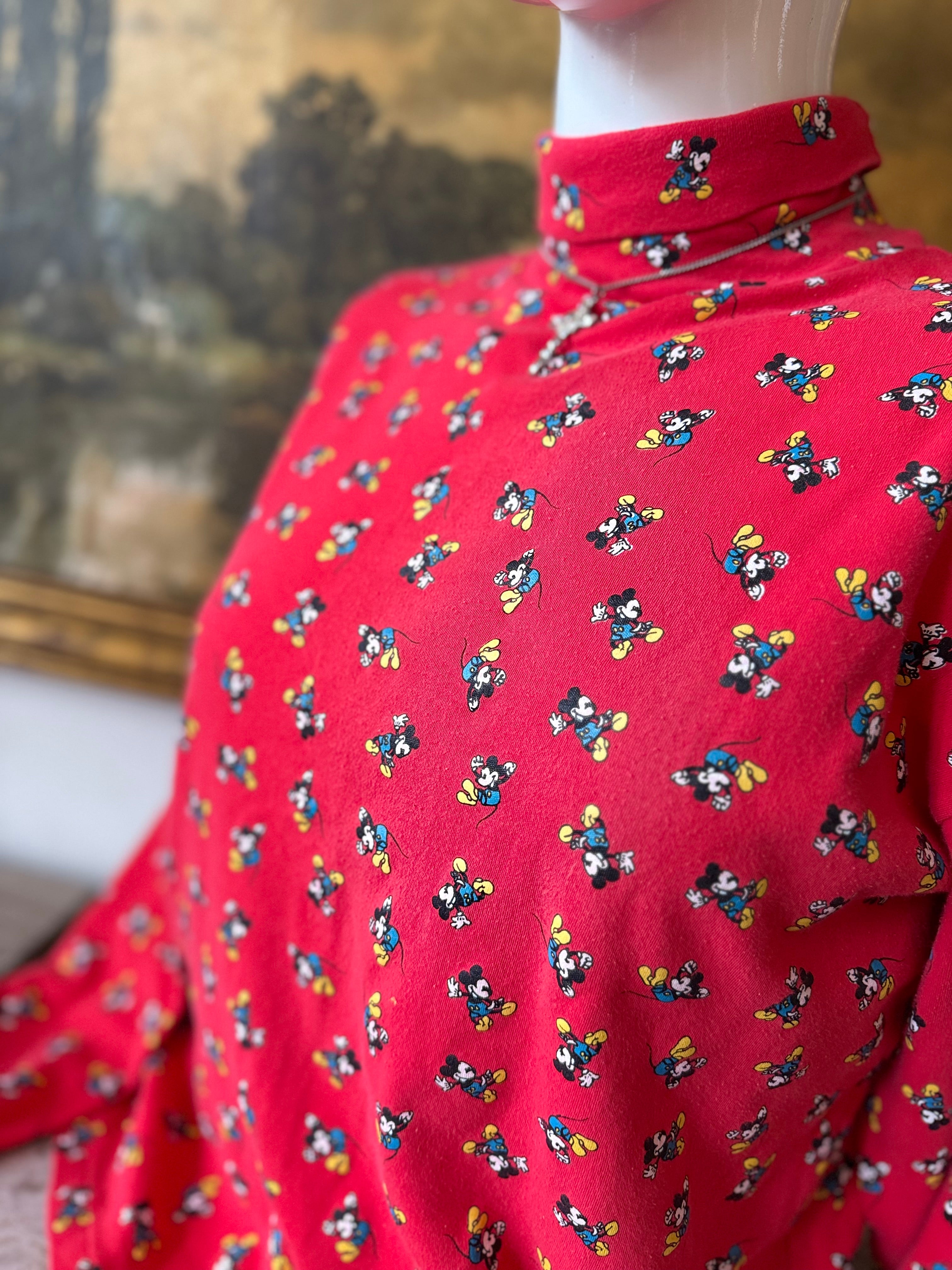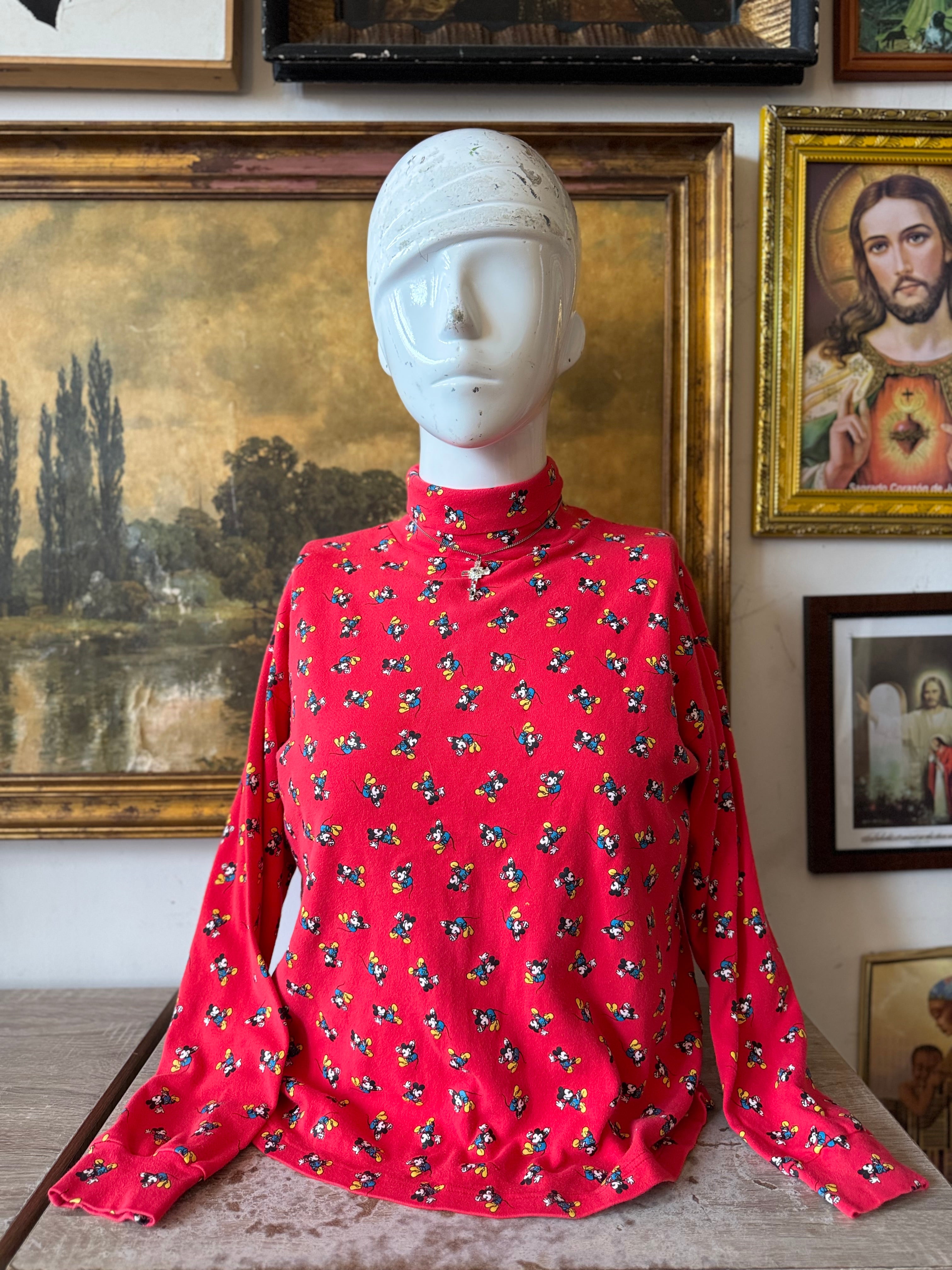 Vintage 90s Disney Mickey & Co. Red All Over Print Turtleneck Longsleeve Top Size L