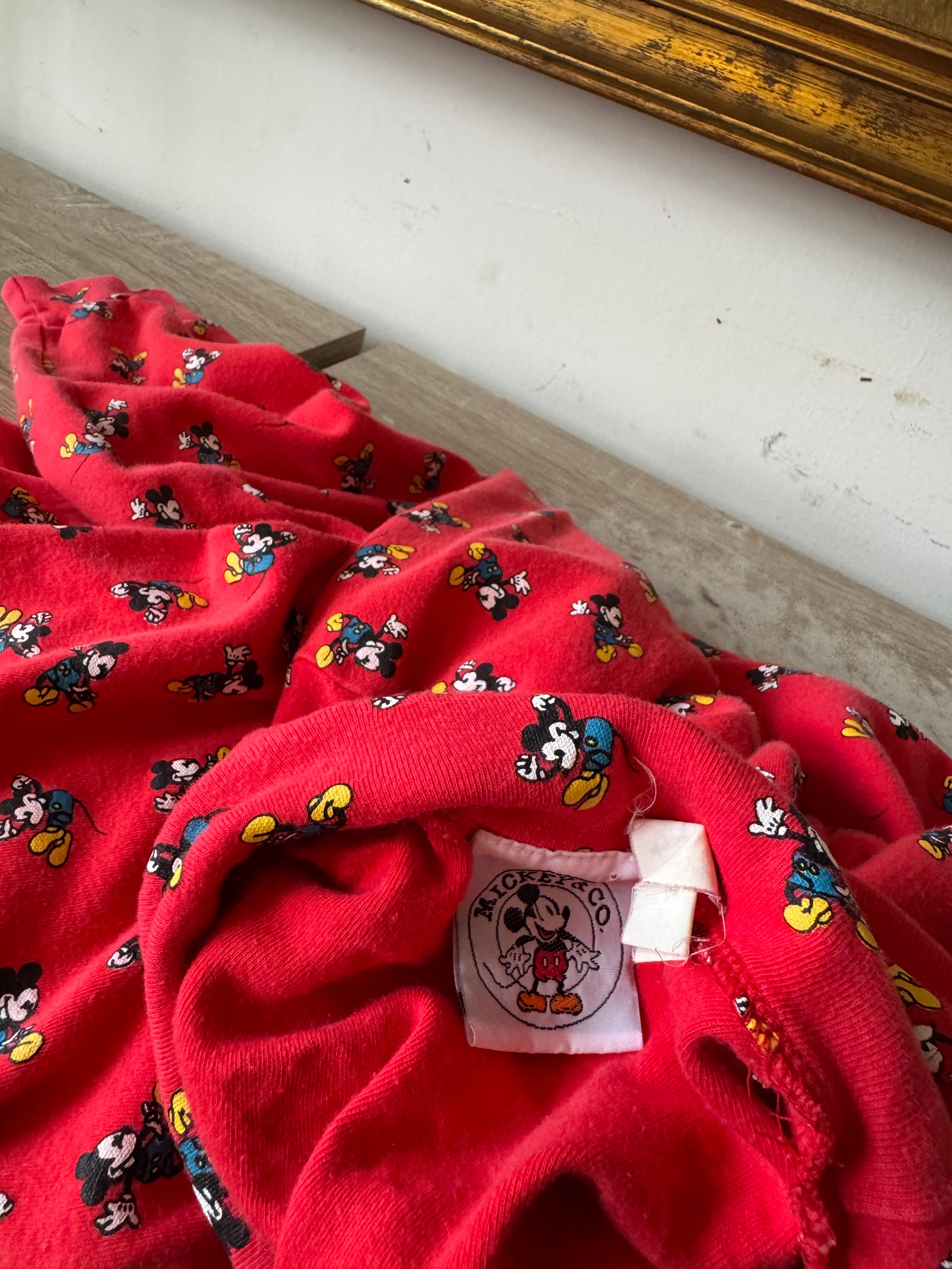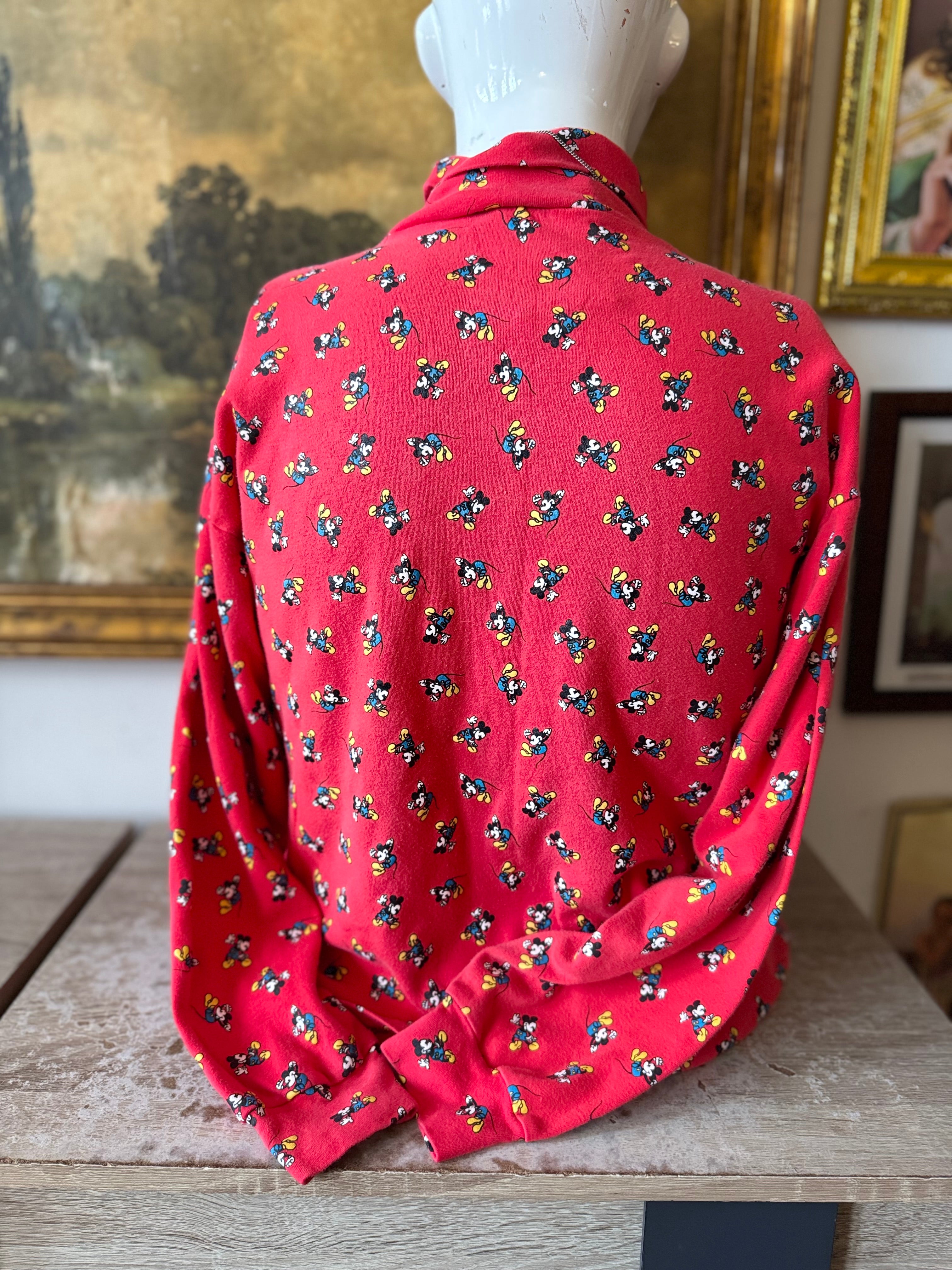 Vintage Disney Mickey & Co. Red All Over Print Turtleneck Longsleeve Top Size L