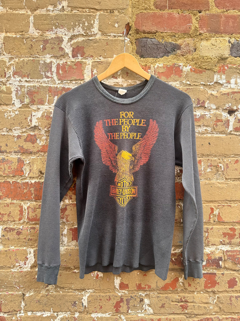 Vintage Harley Davidson Thermal Grey and Black Long Sleeve Top Mens Medium