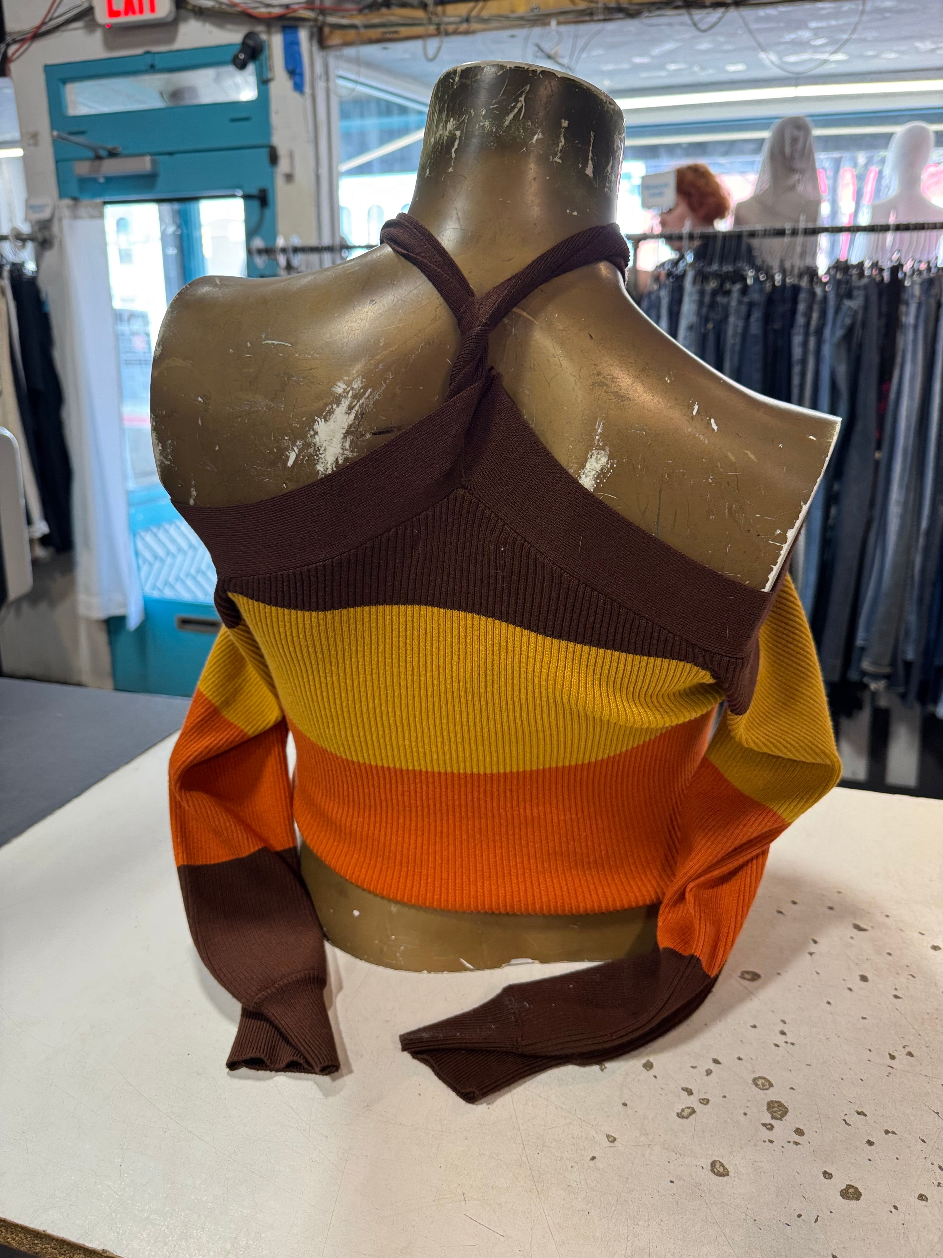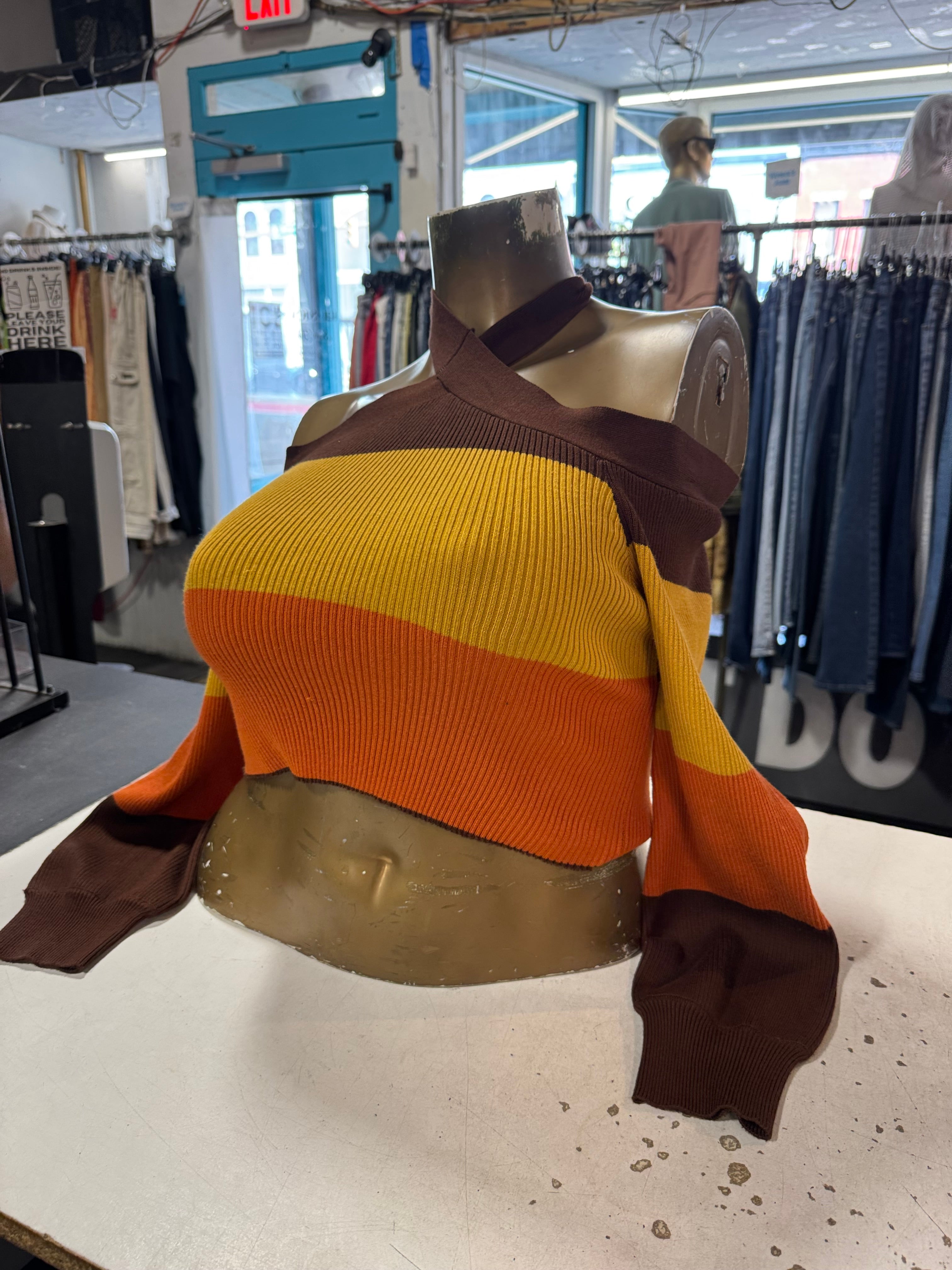 Description: Color Block Long Sleeve Sweater With Off The Shoulder Halter Design Size XL By Love Always
