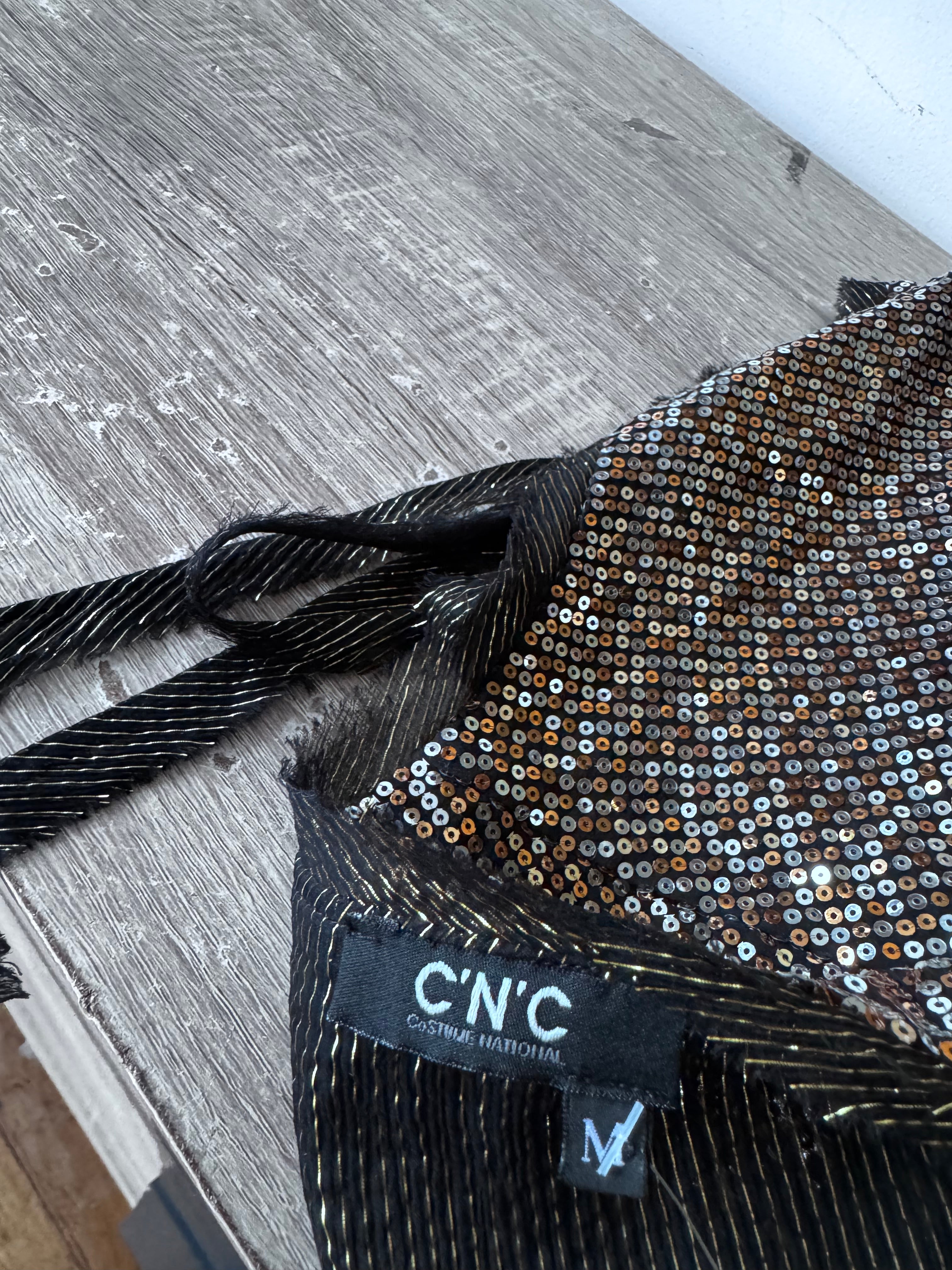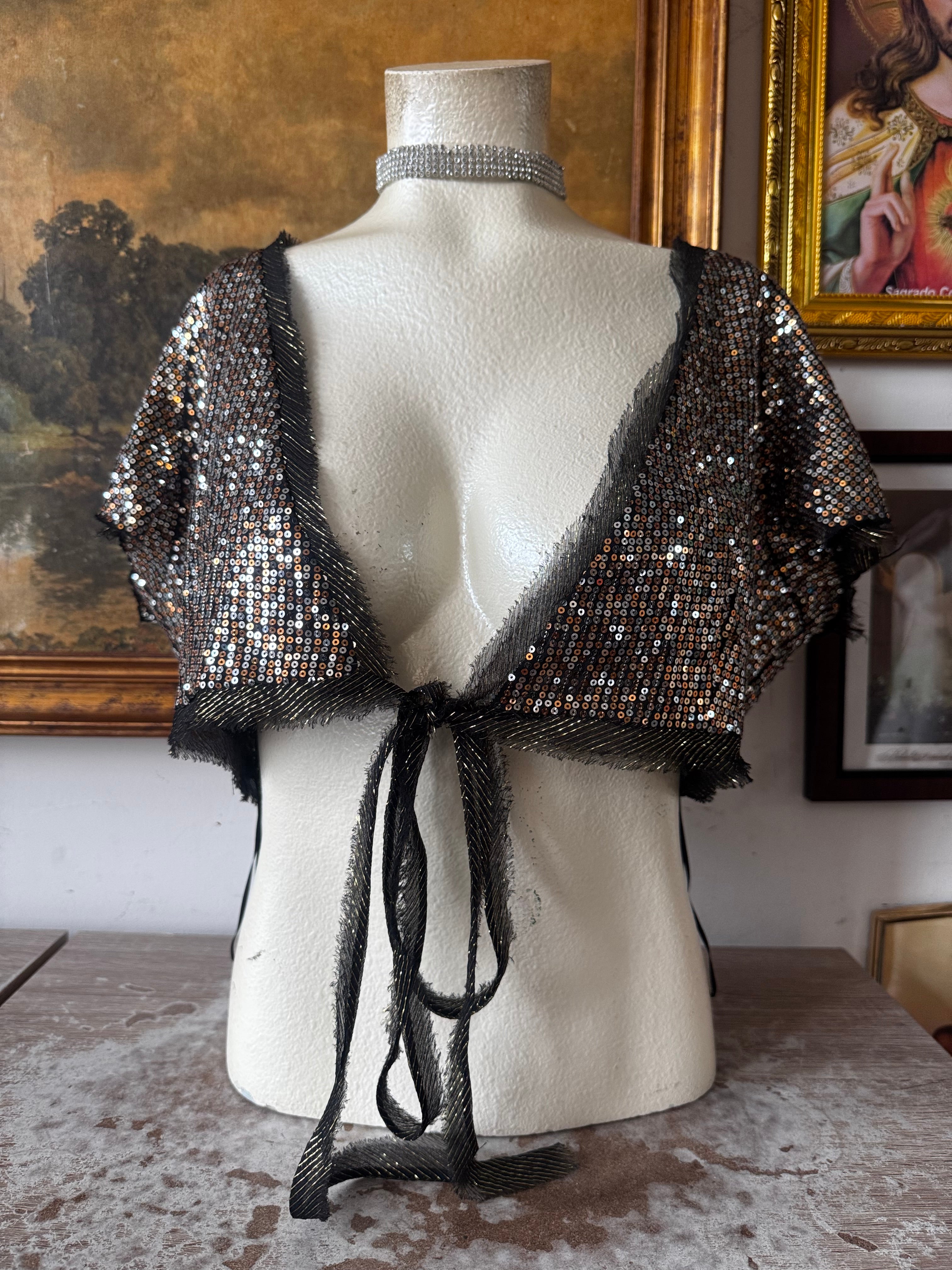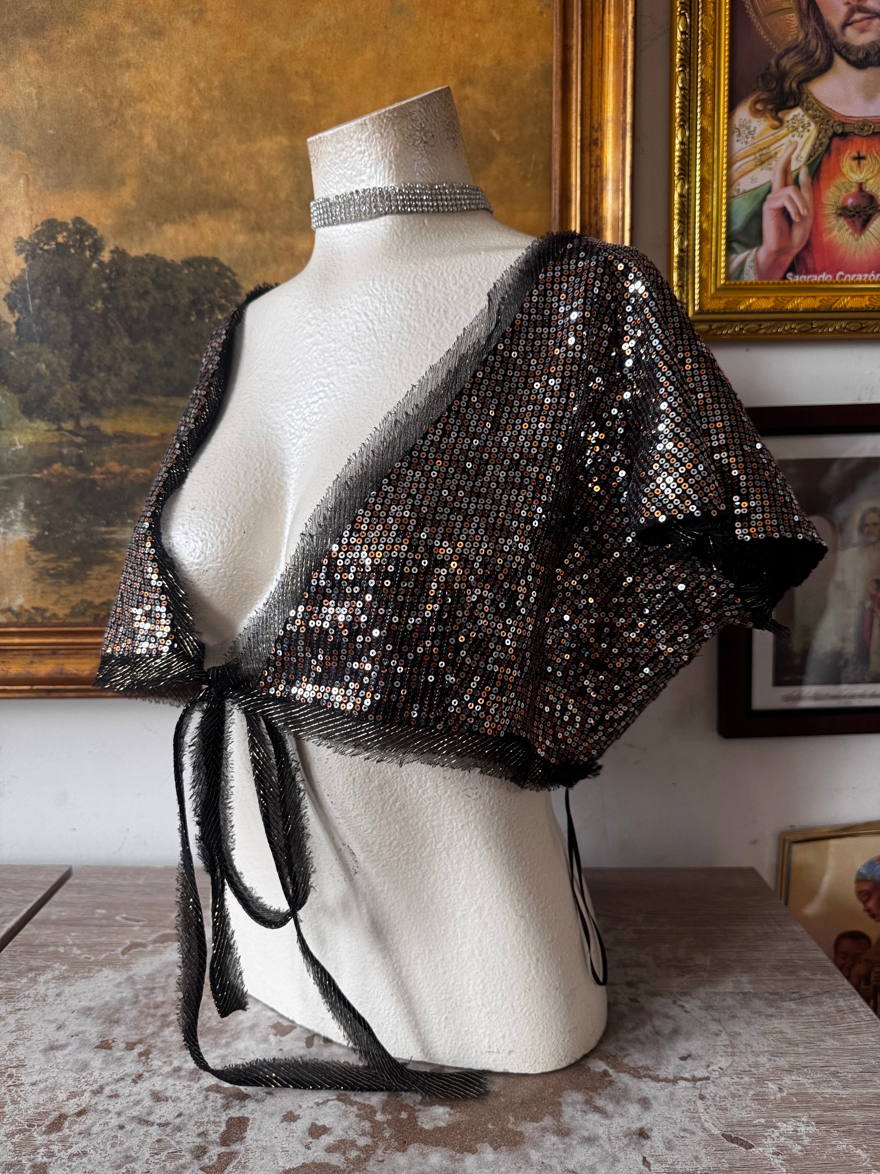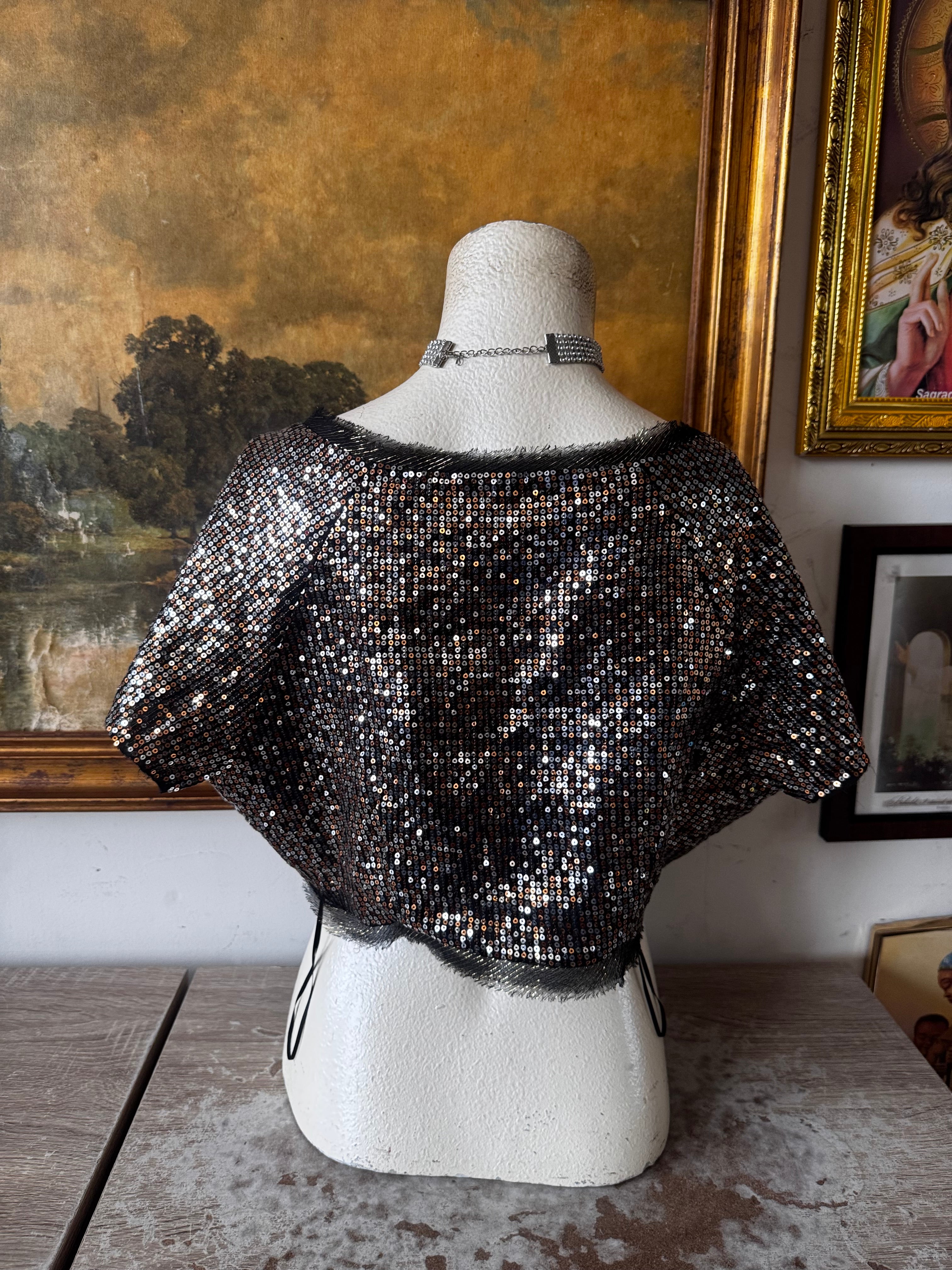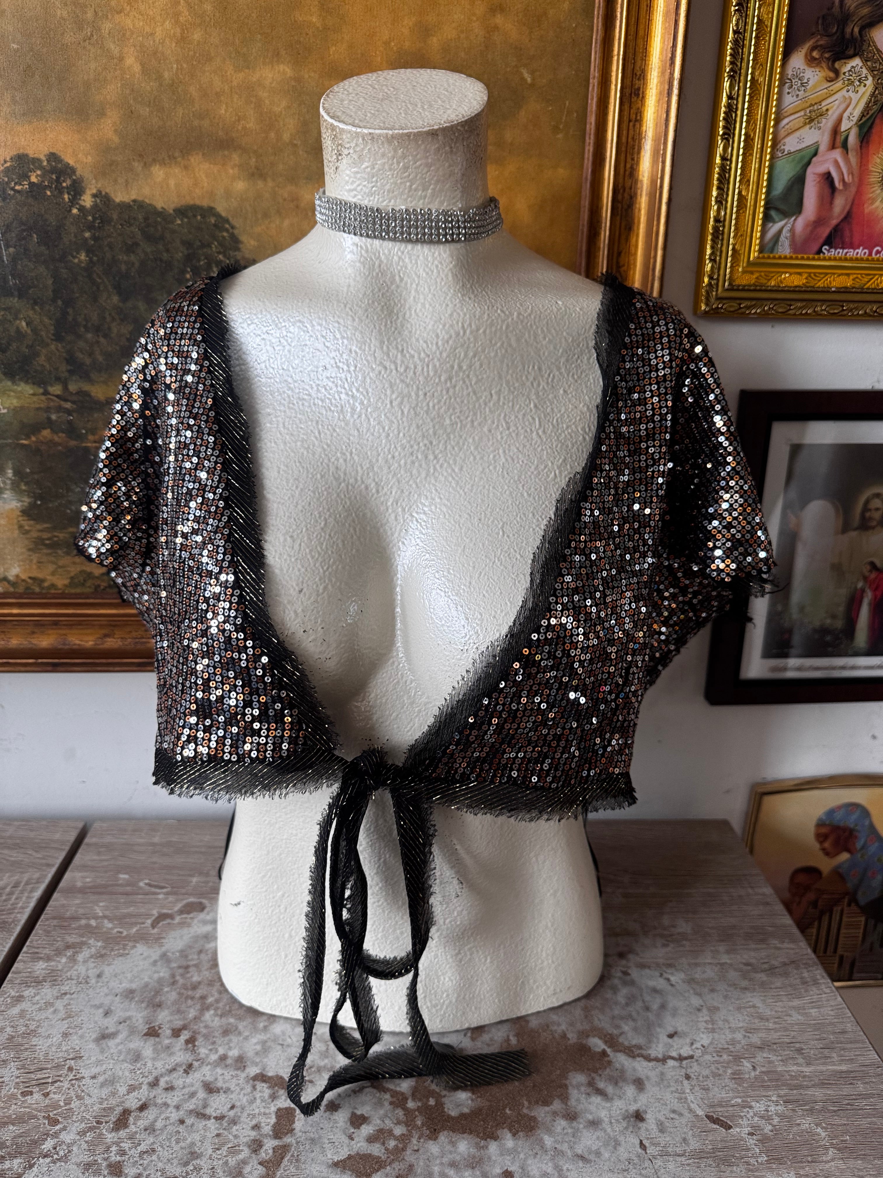 Y2k C.N.C. Sequined Tie Front Crop Top Size M