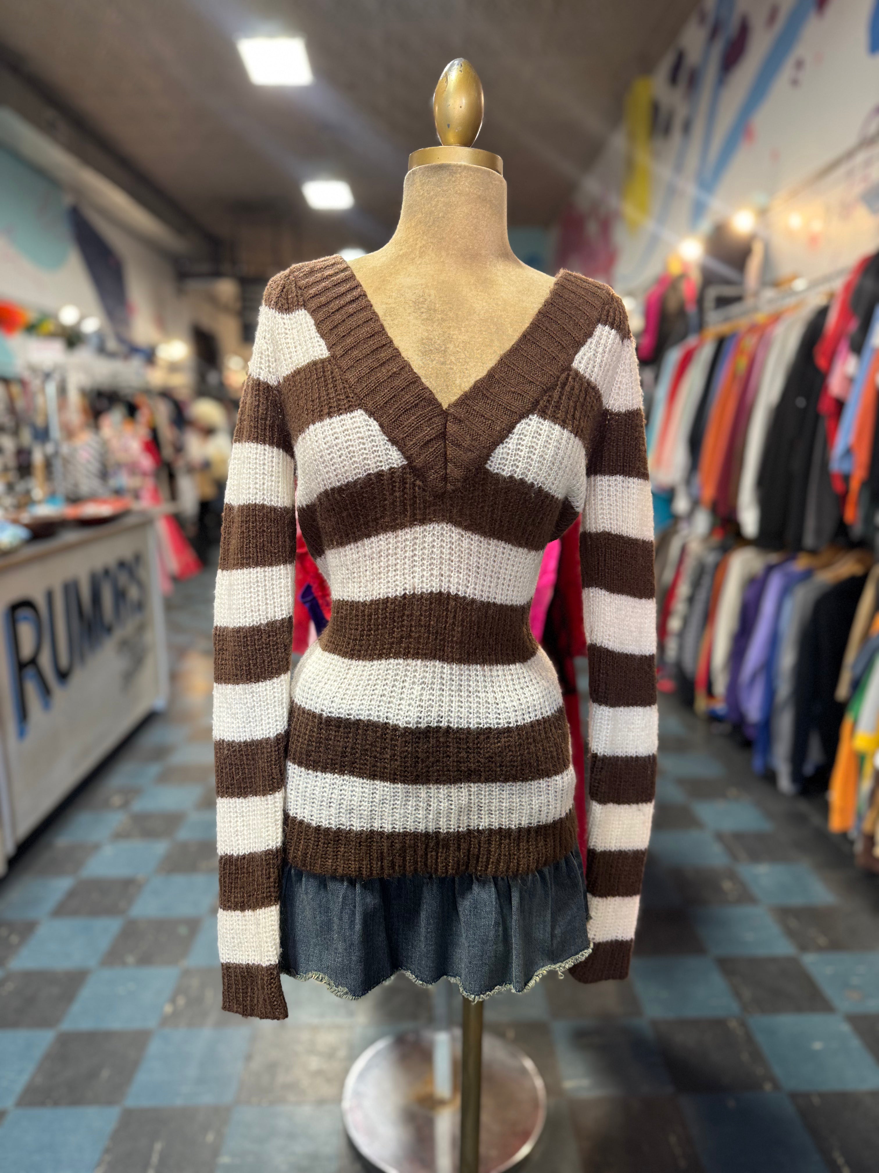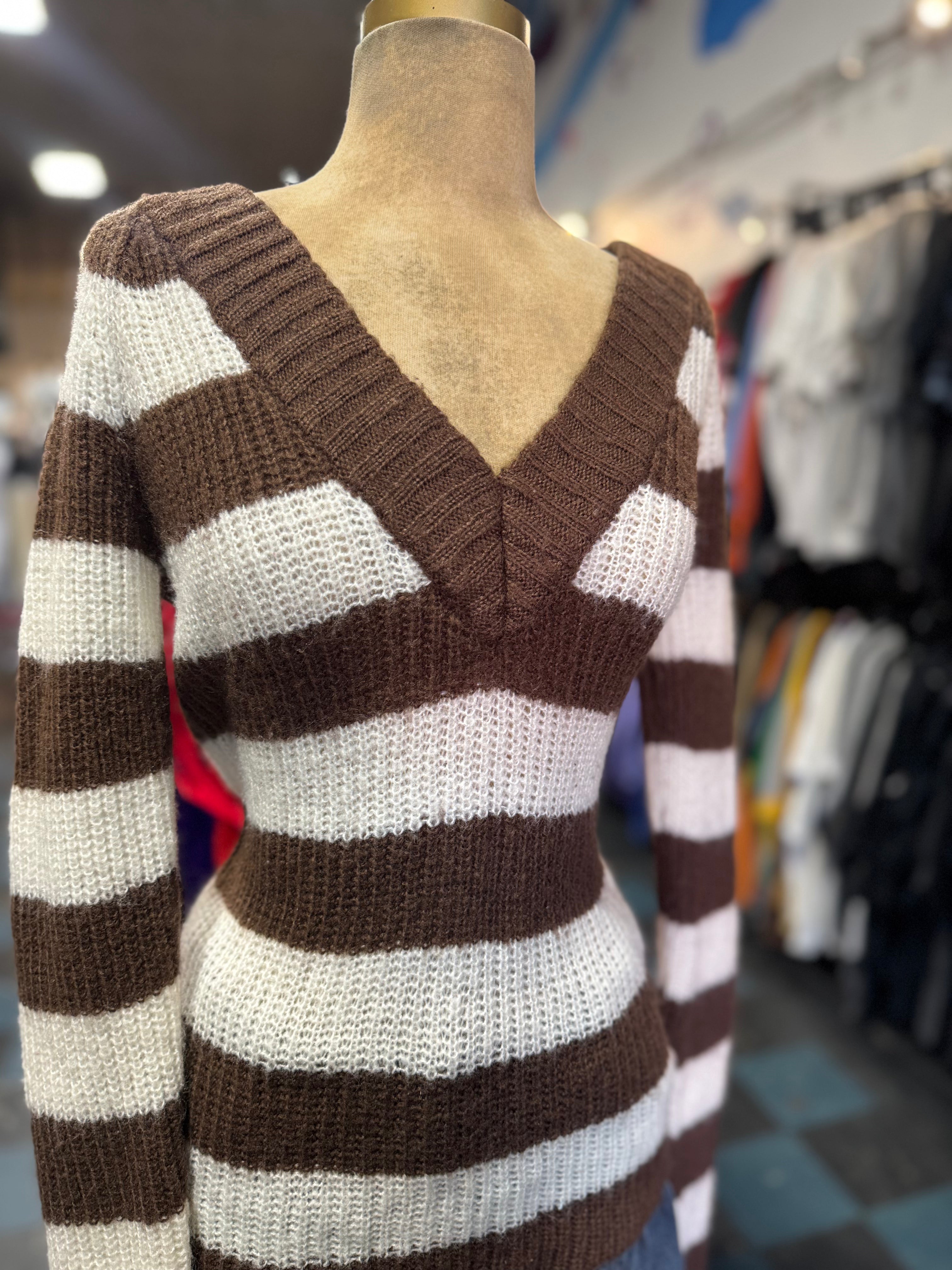 Witch + Wolf Arizona Striped V-Neck Sweater Size L