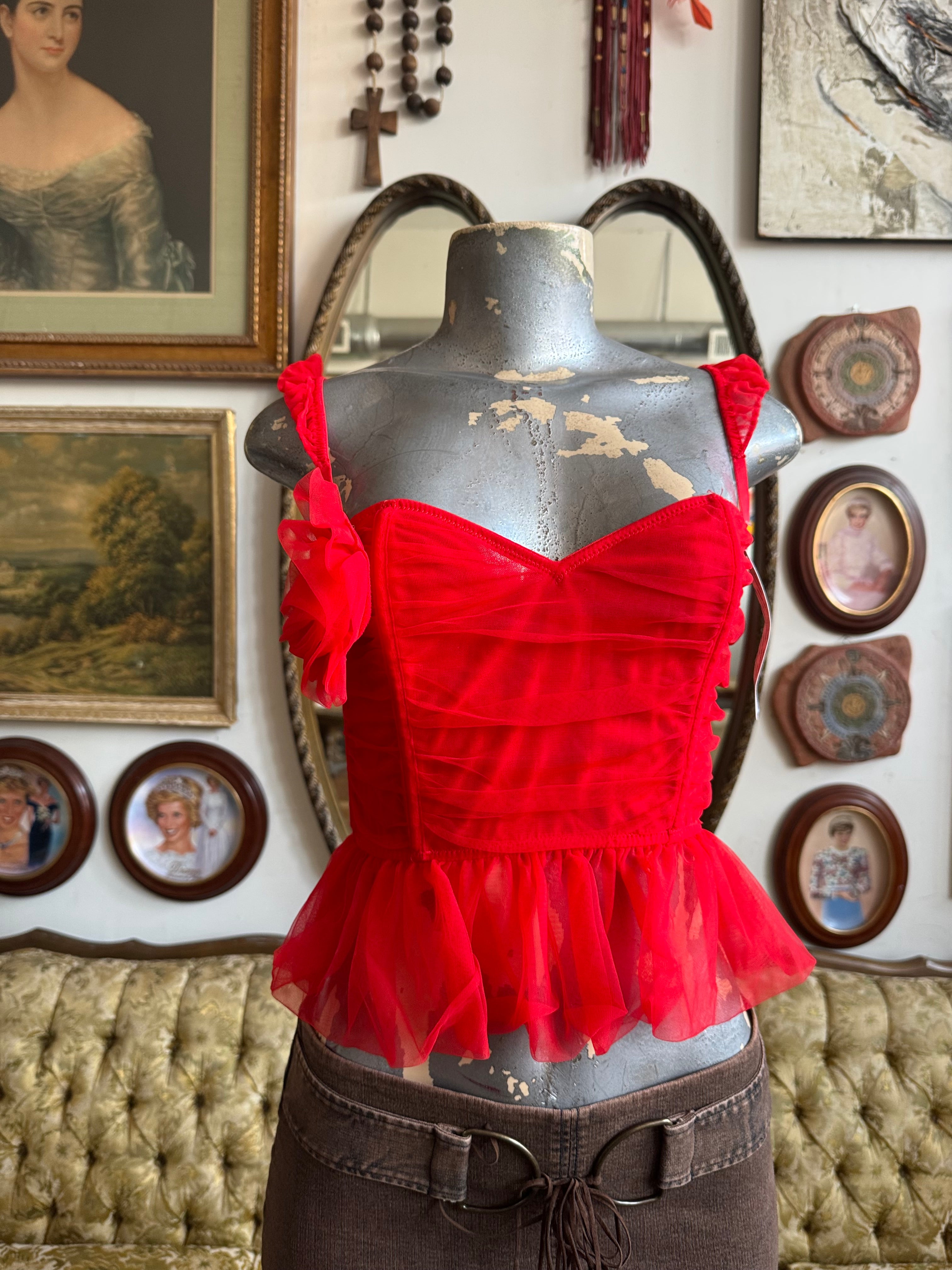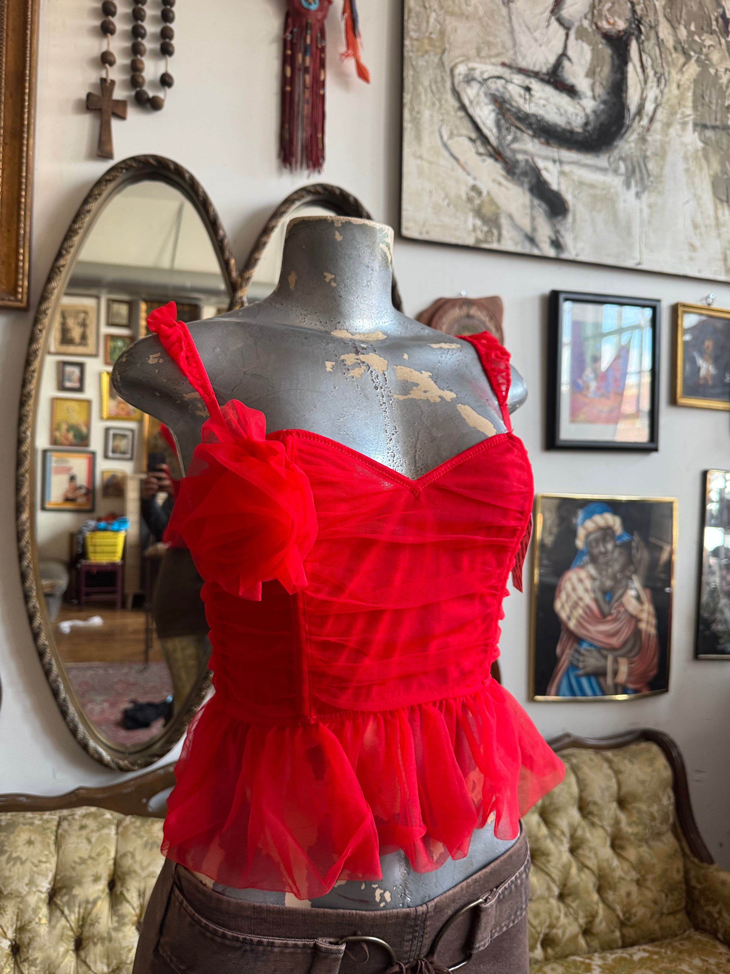 NWT Urban Outfitters Out from Under Red Tulle Bustier Size M