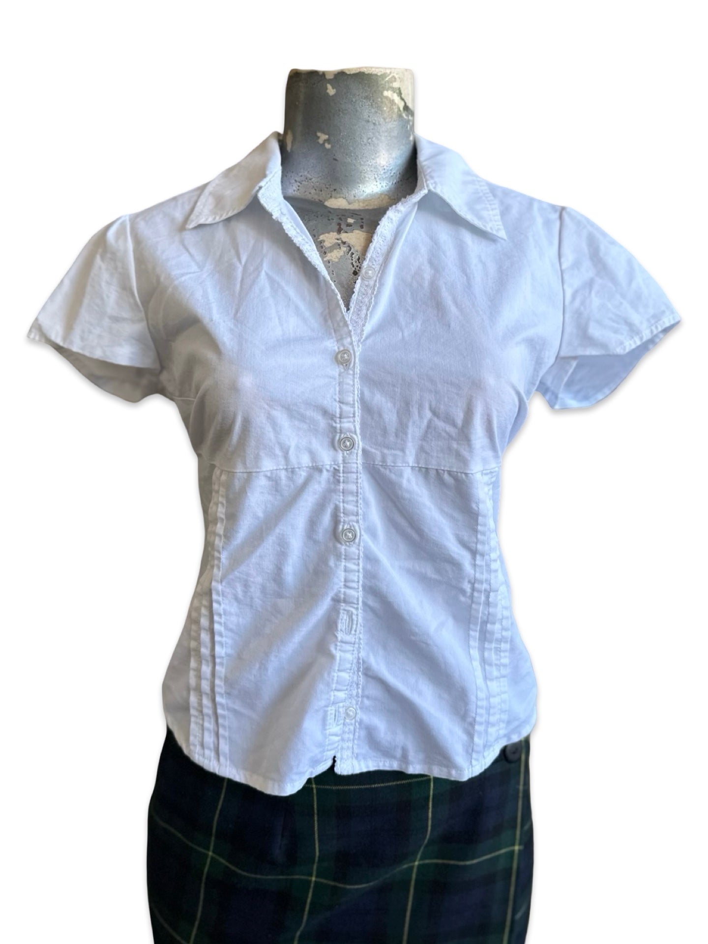 Hollister Fitted White Baby Doll Button Up Size XS
