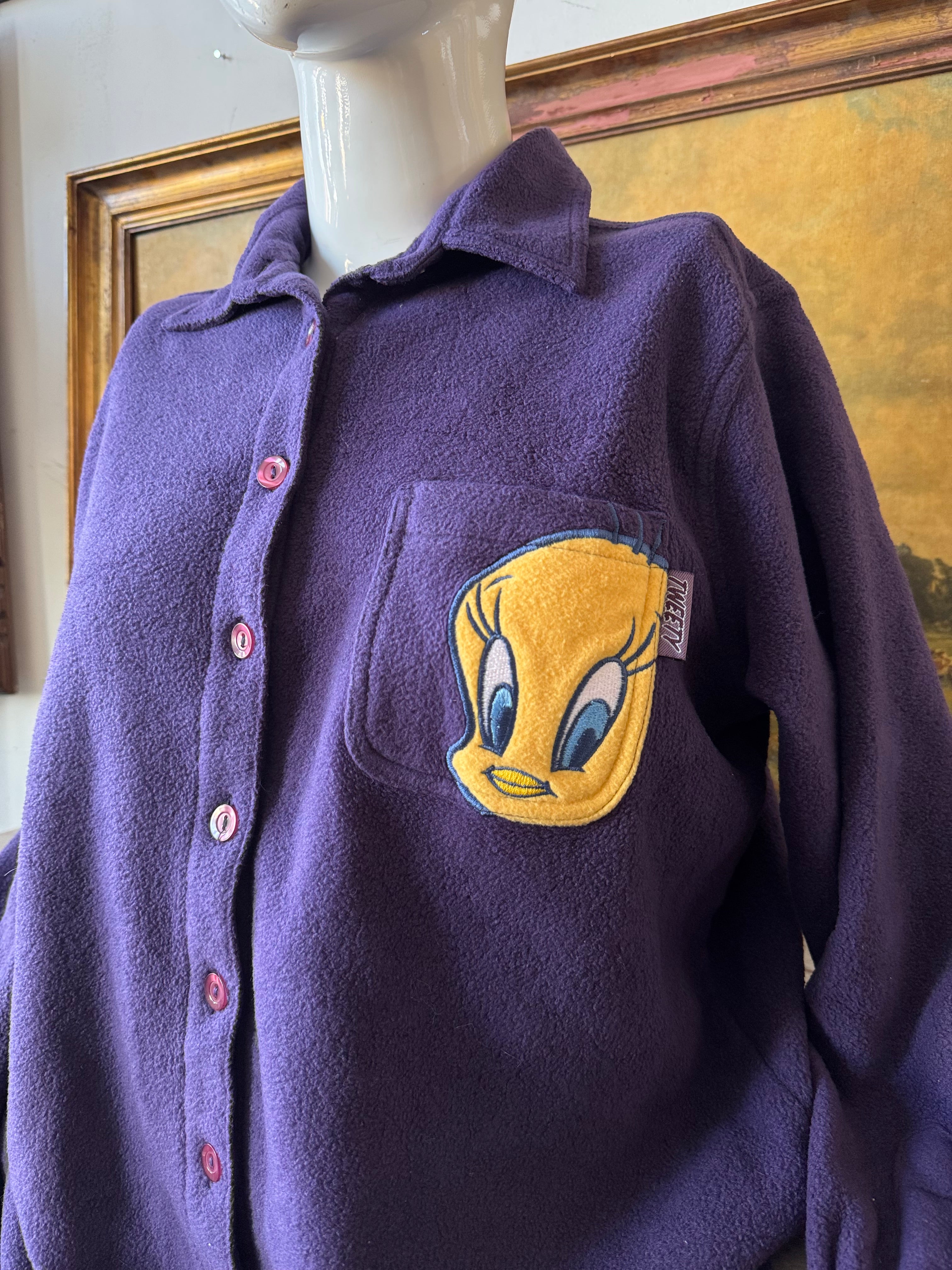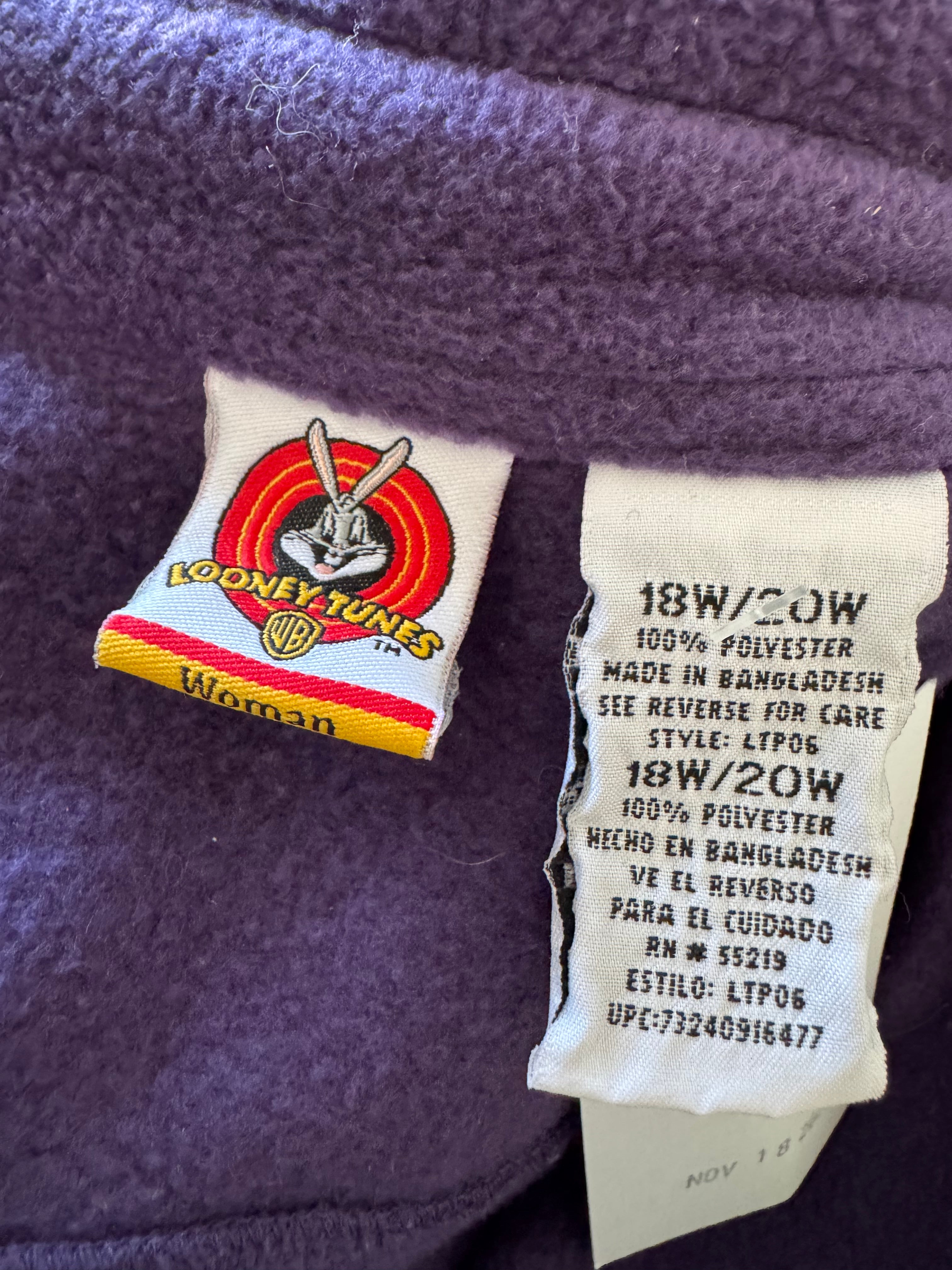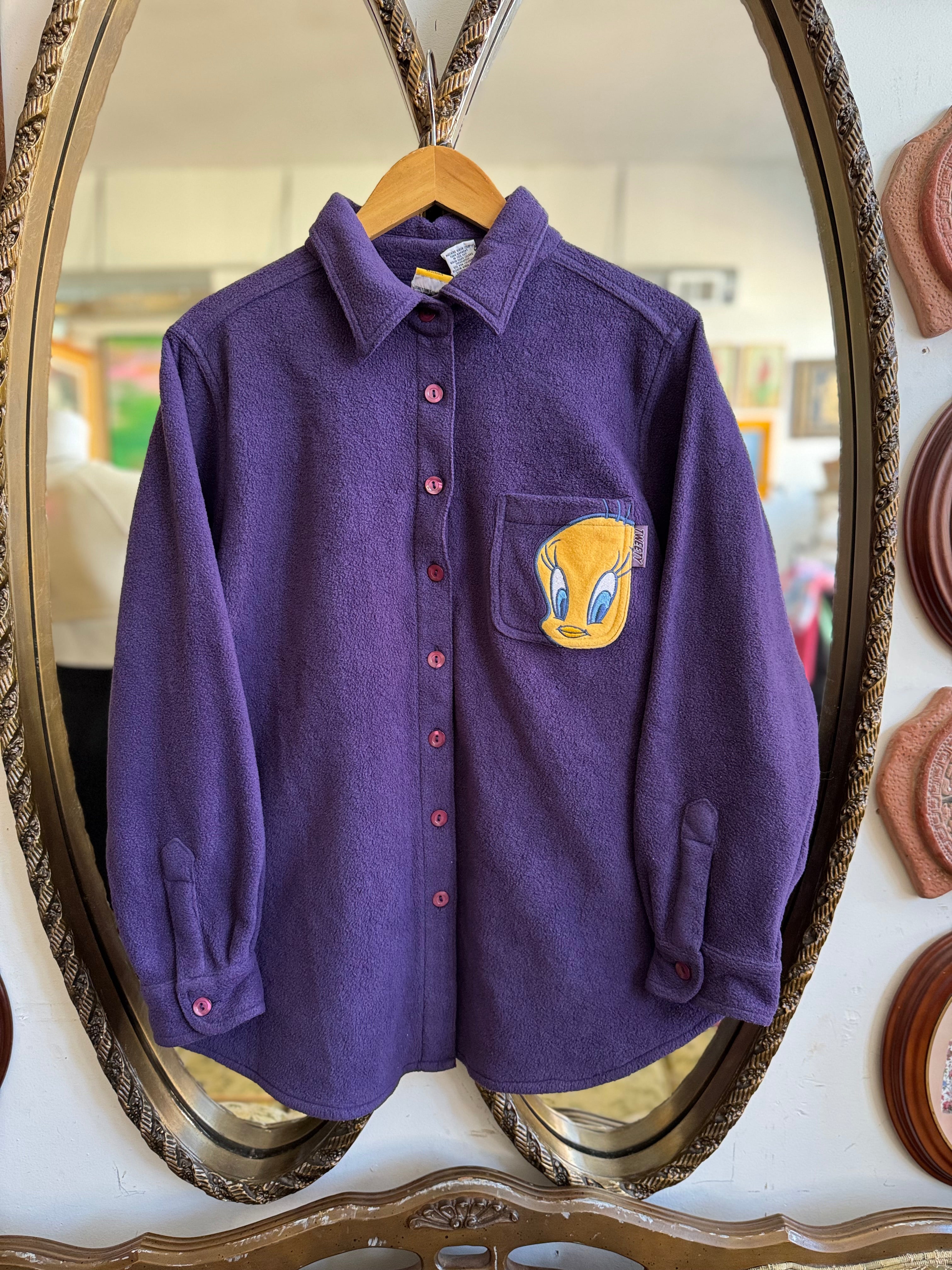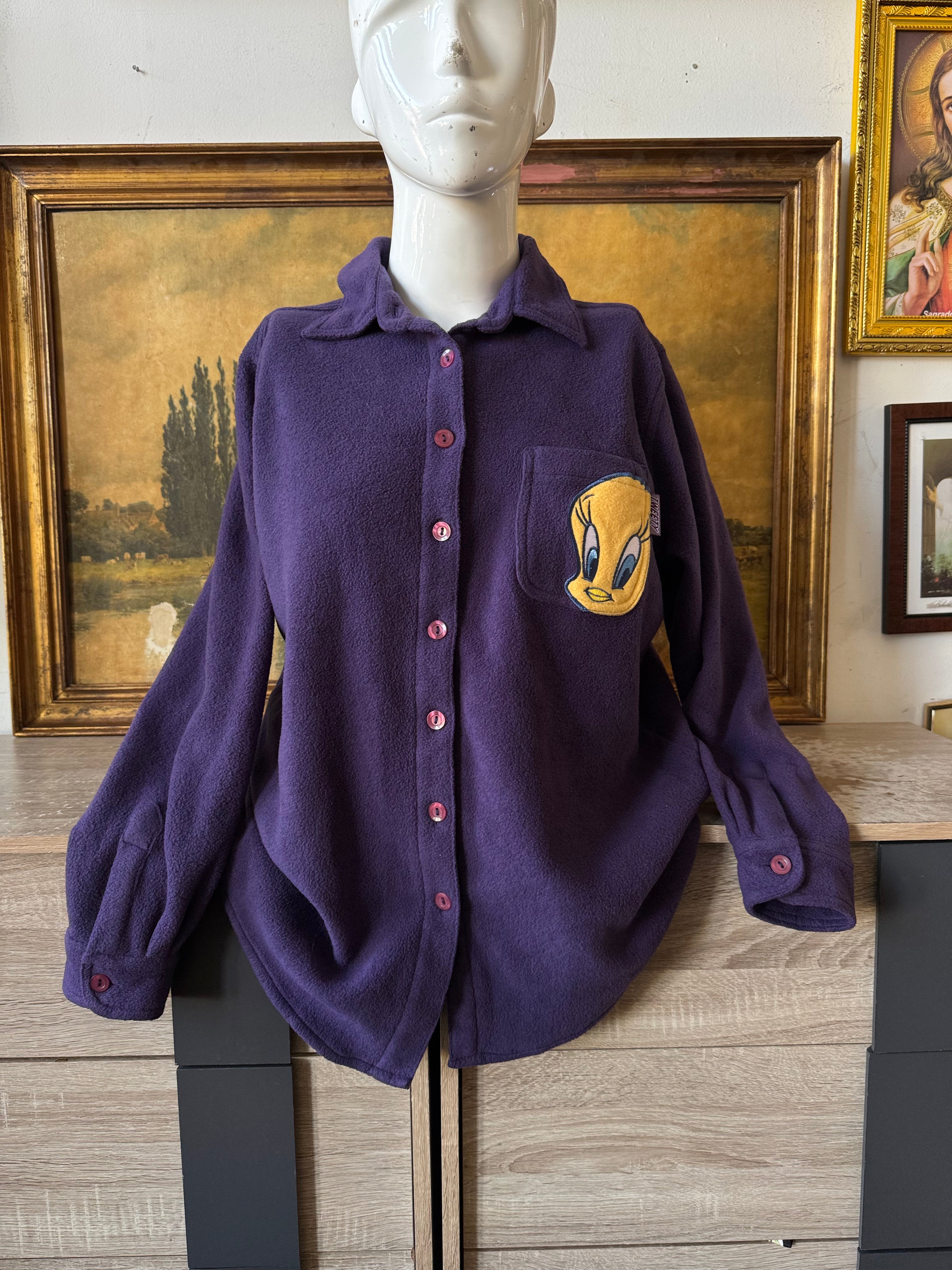 Vintage 90s Tweety Purple Fleece Button Front Top Size 18/20