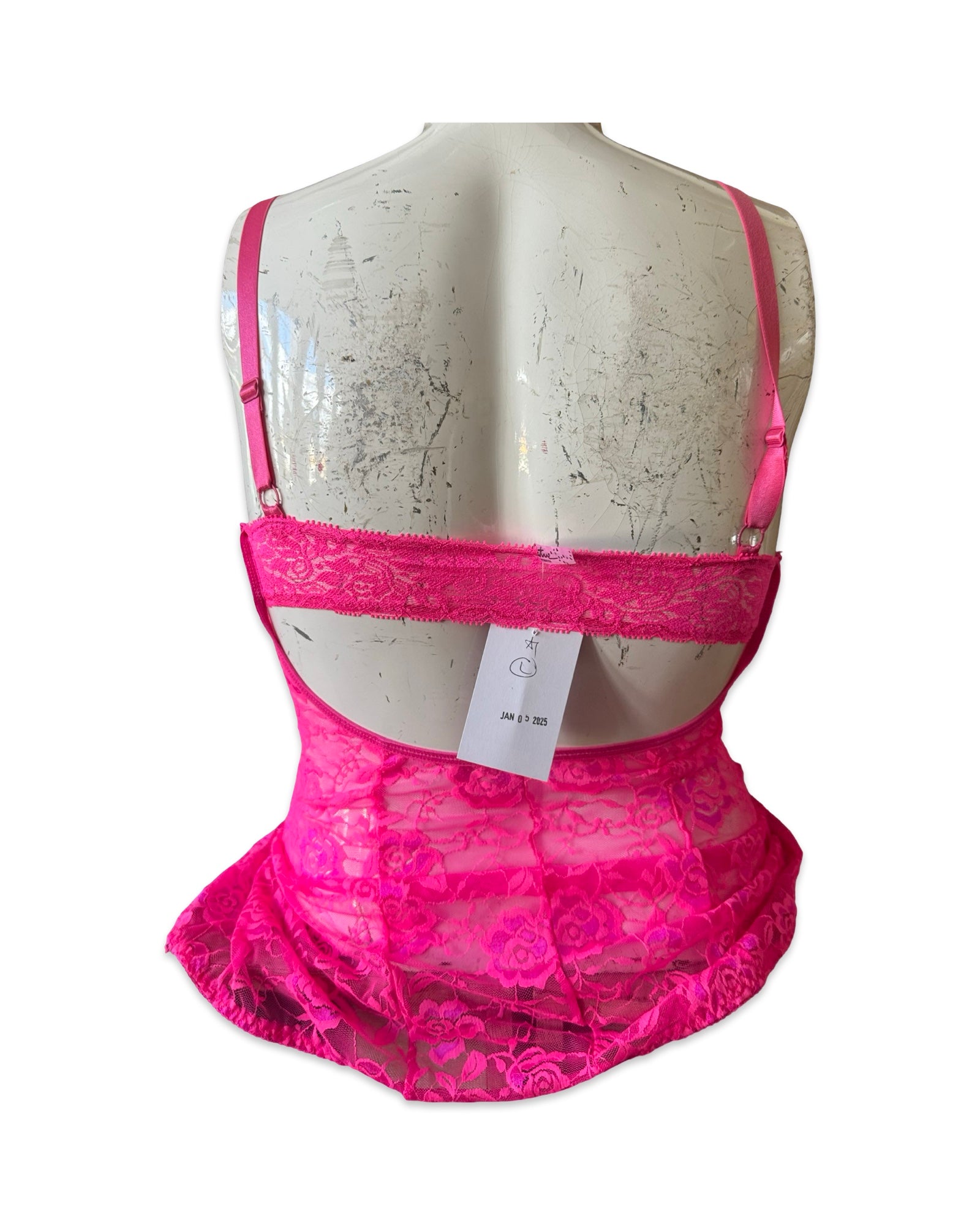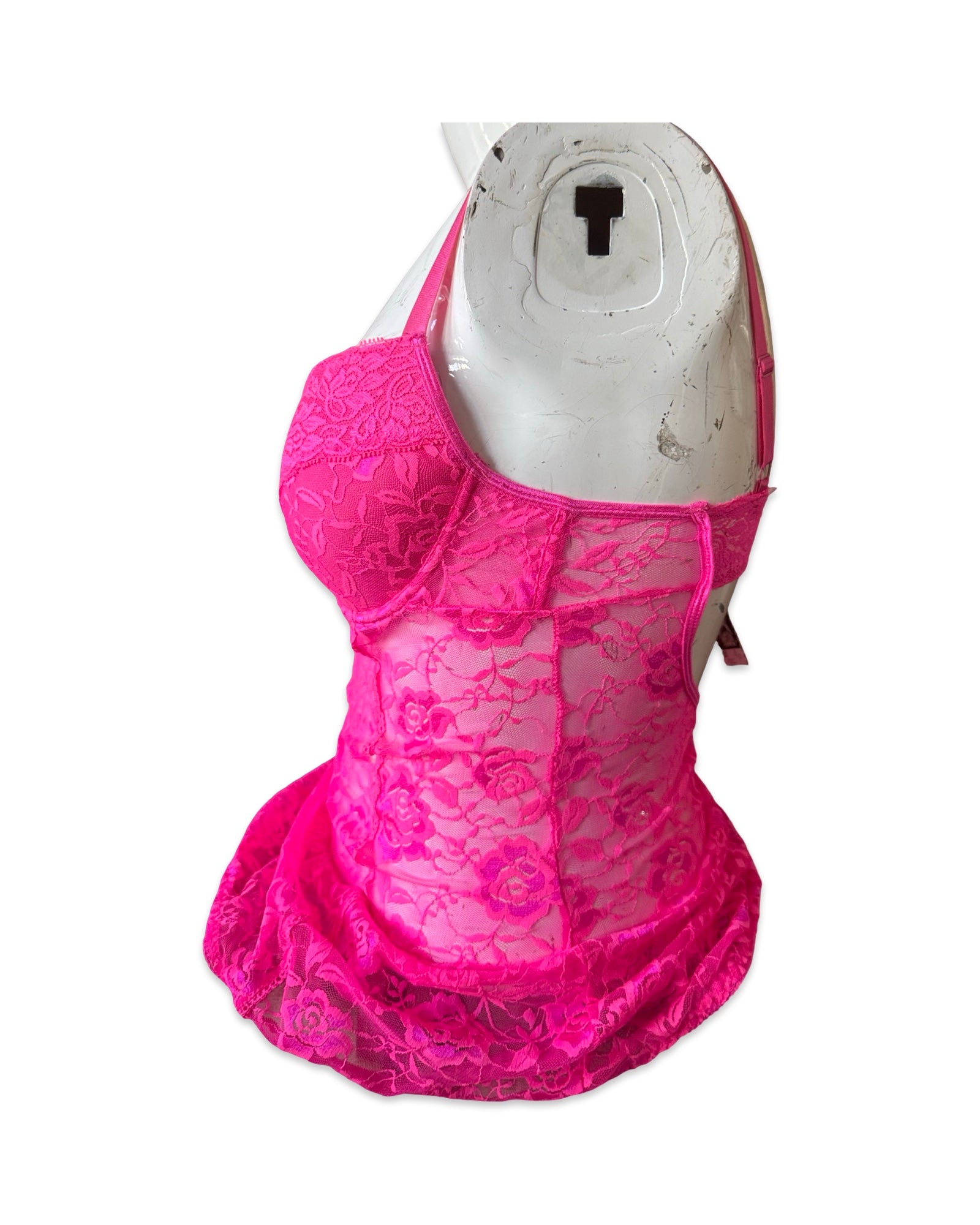 Description: Hot Pink Lace Bustier Top Size 38C