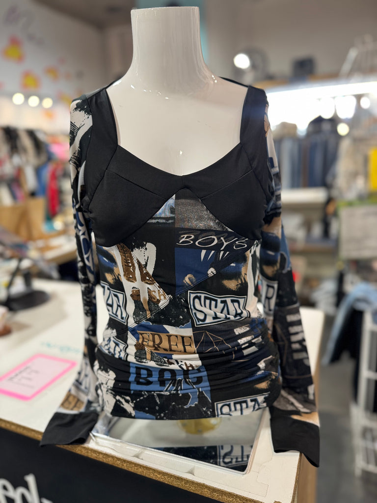 Y2k Photo Print Fitted Top Size S