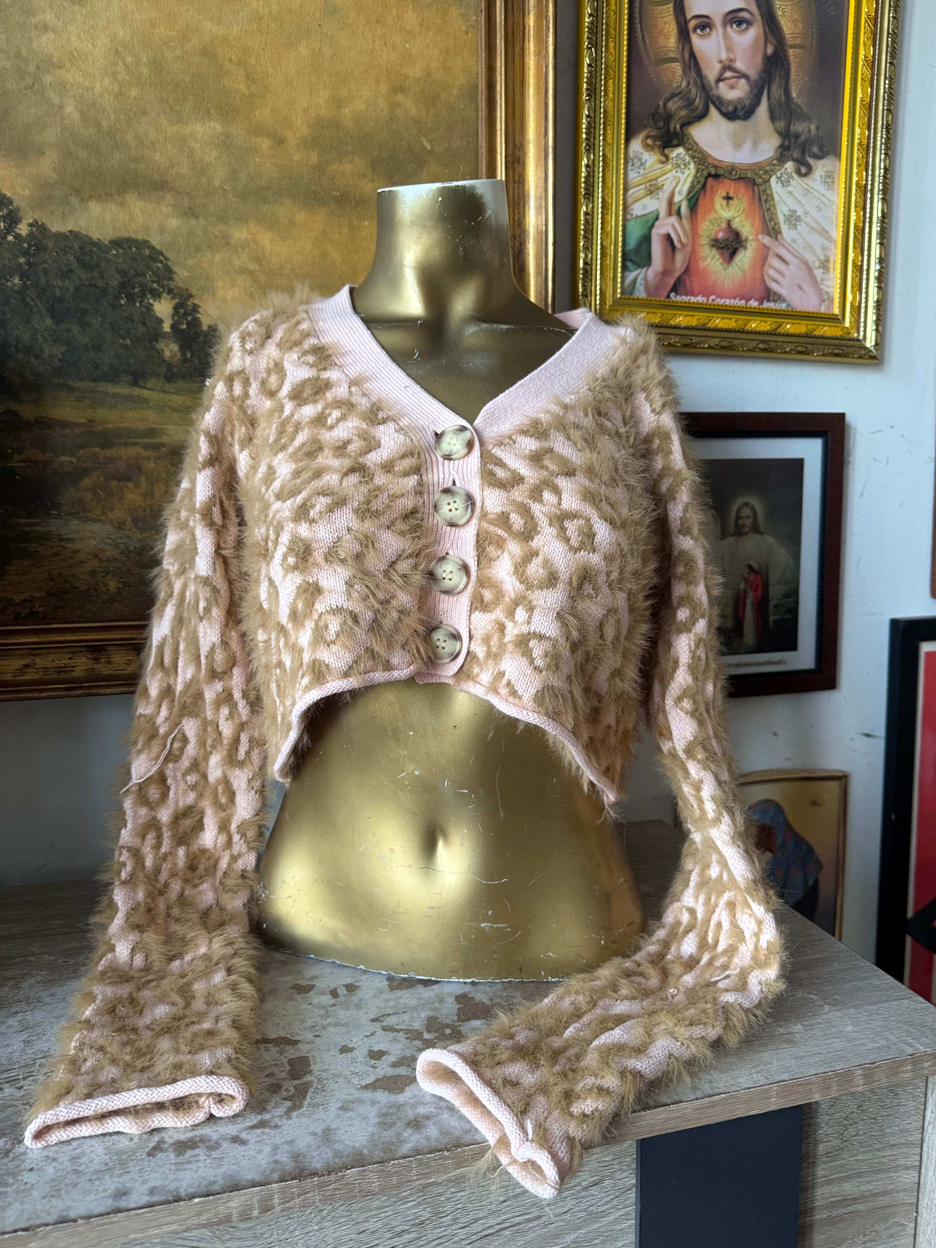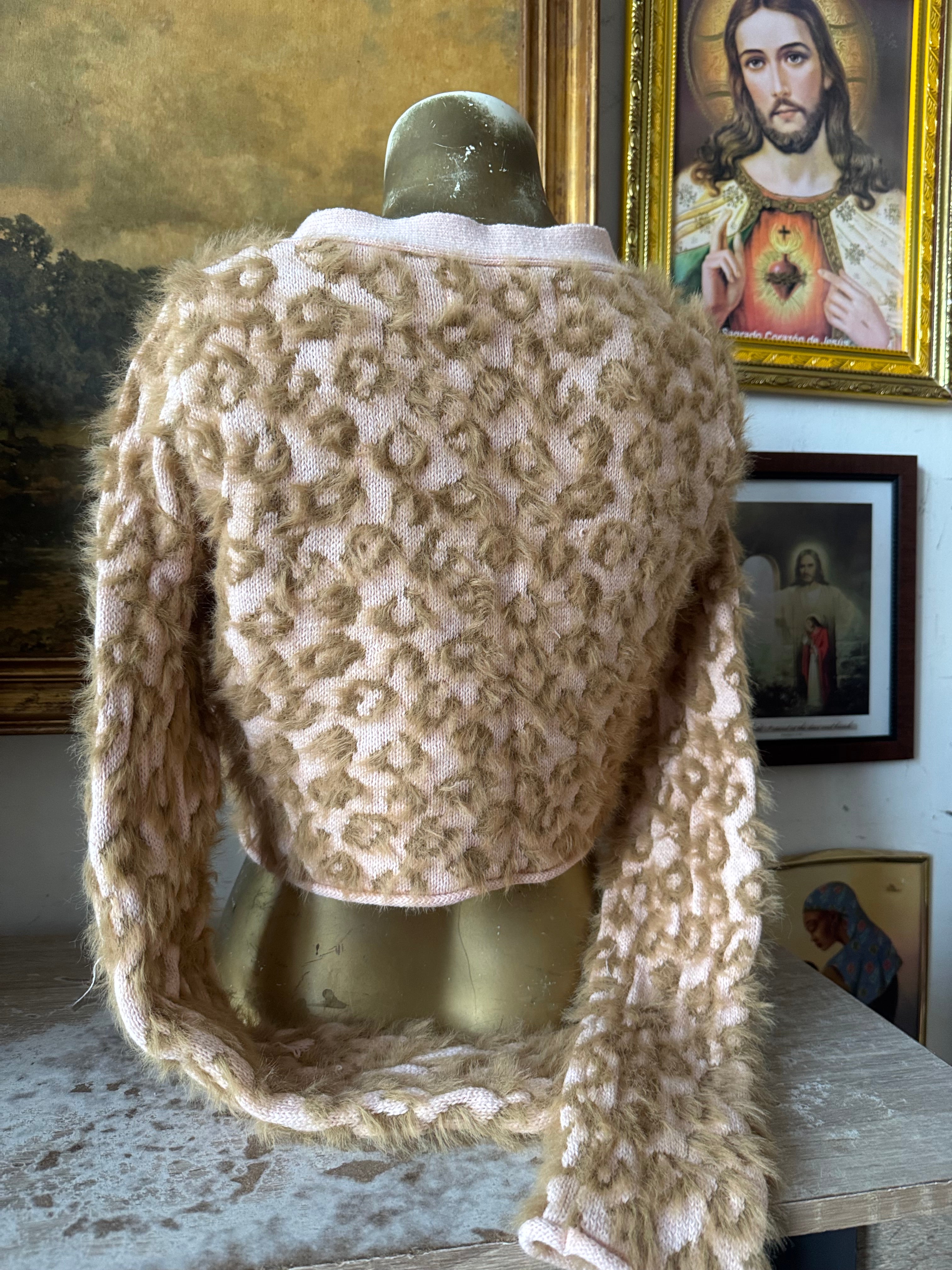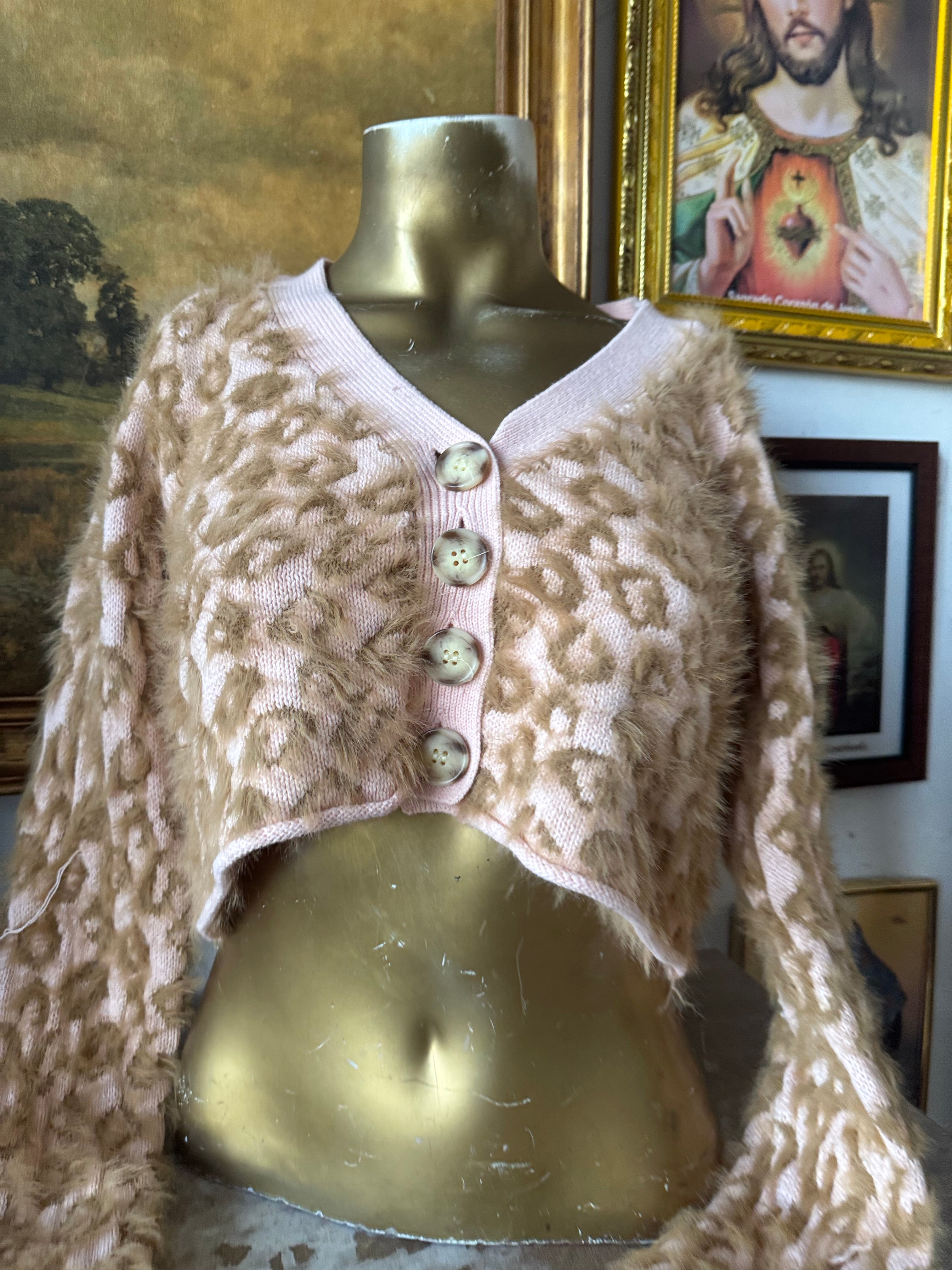 Kimchi Blue Fuzzy Cheetah Print Cropped Cardigan Size Small