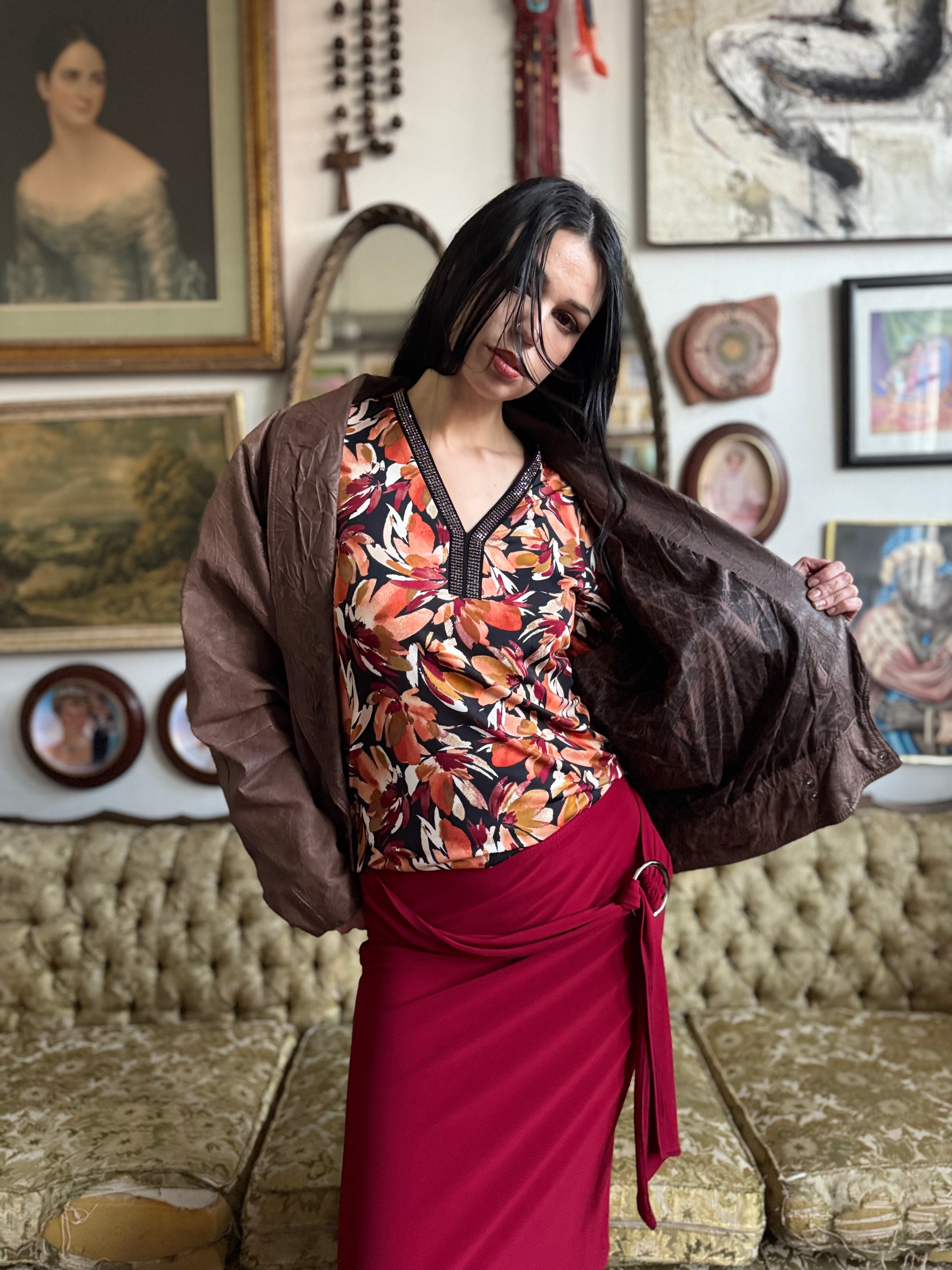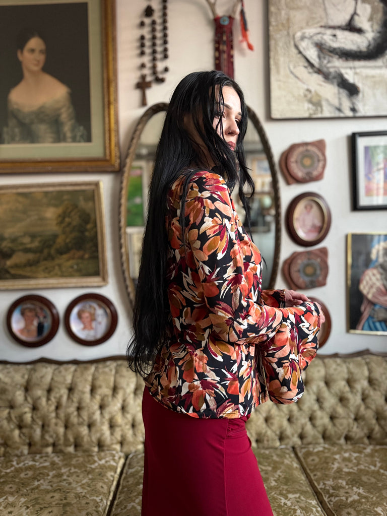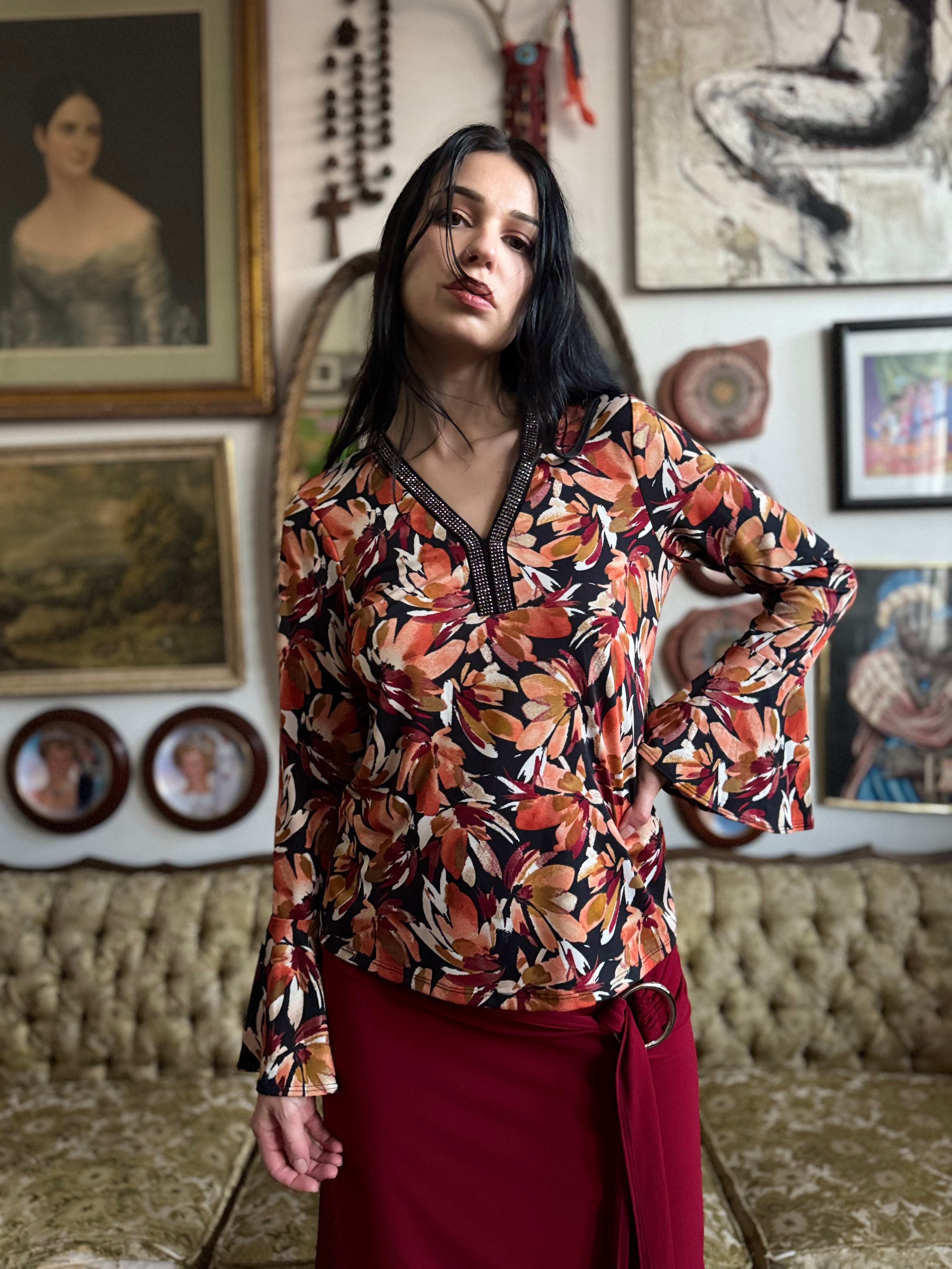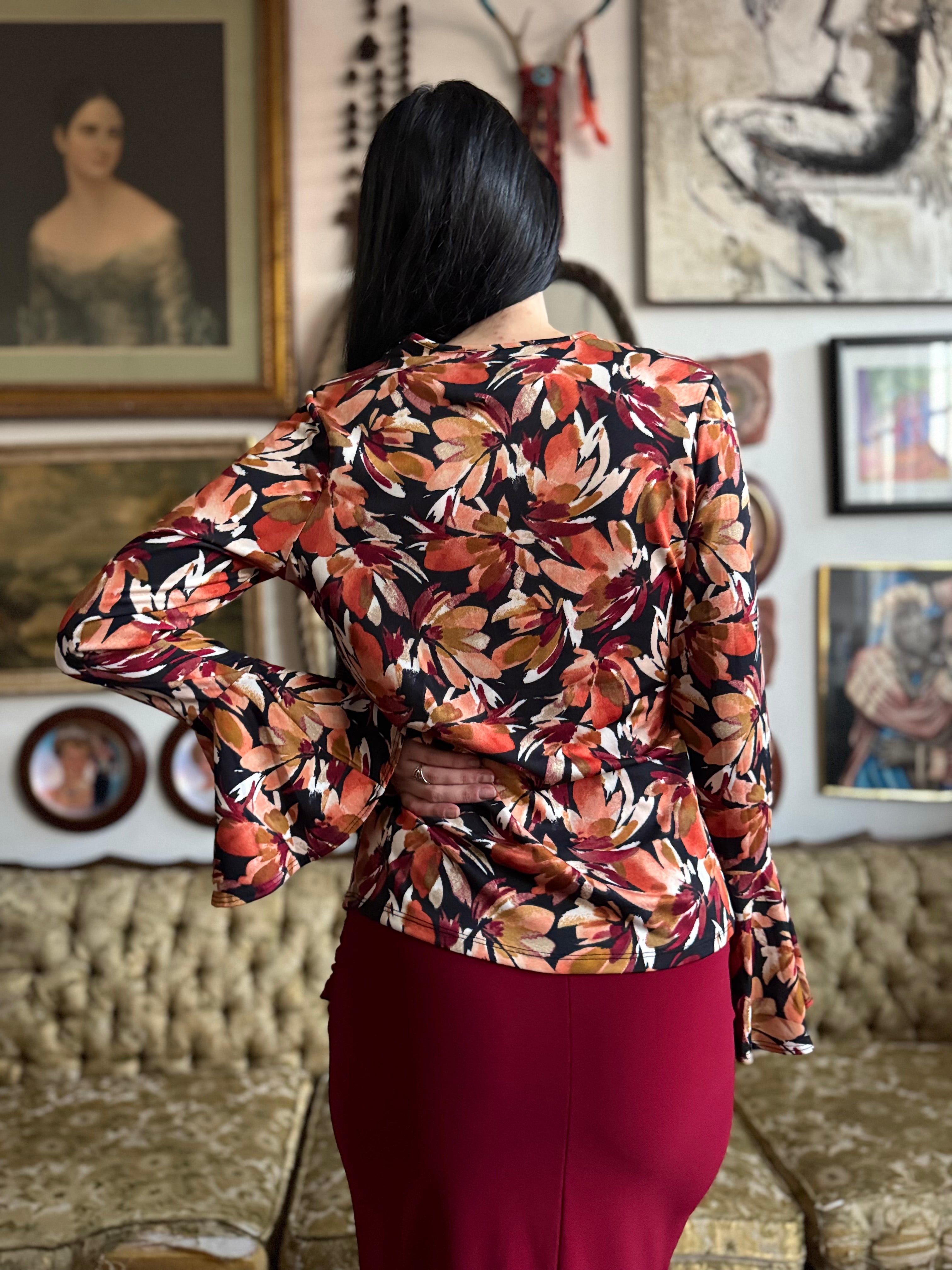 Floral Print Bell Sleeve Top Size S