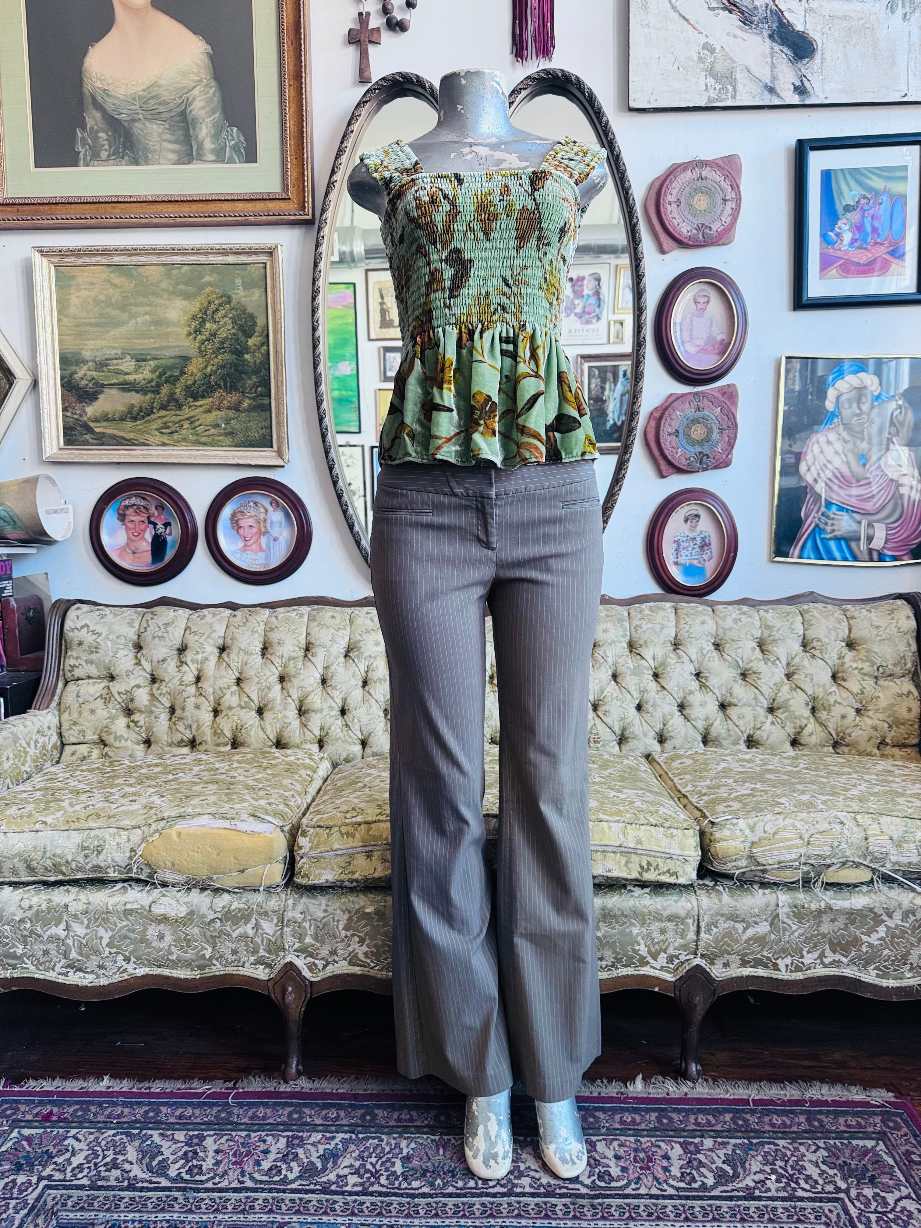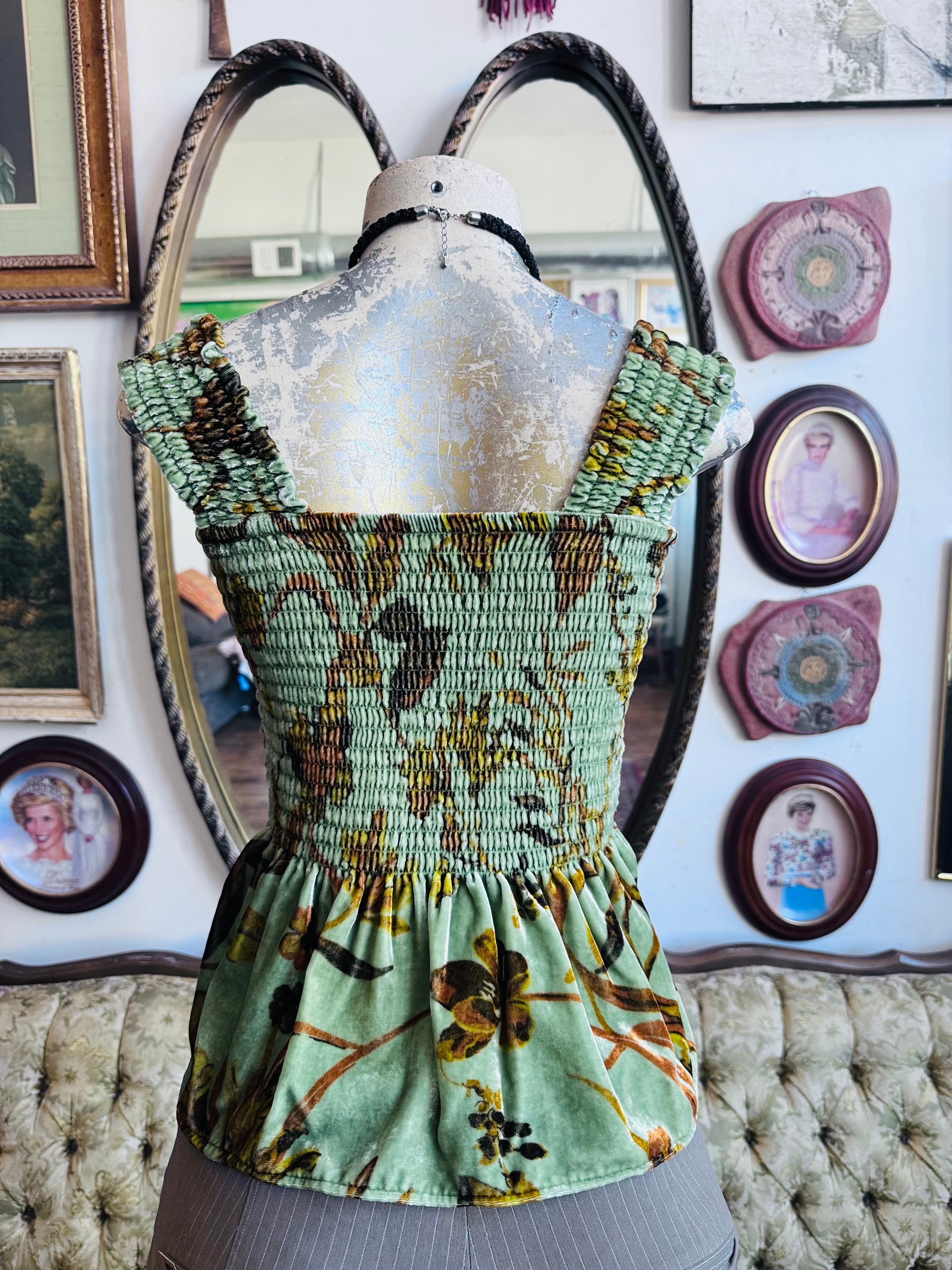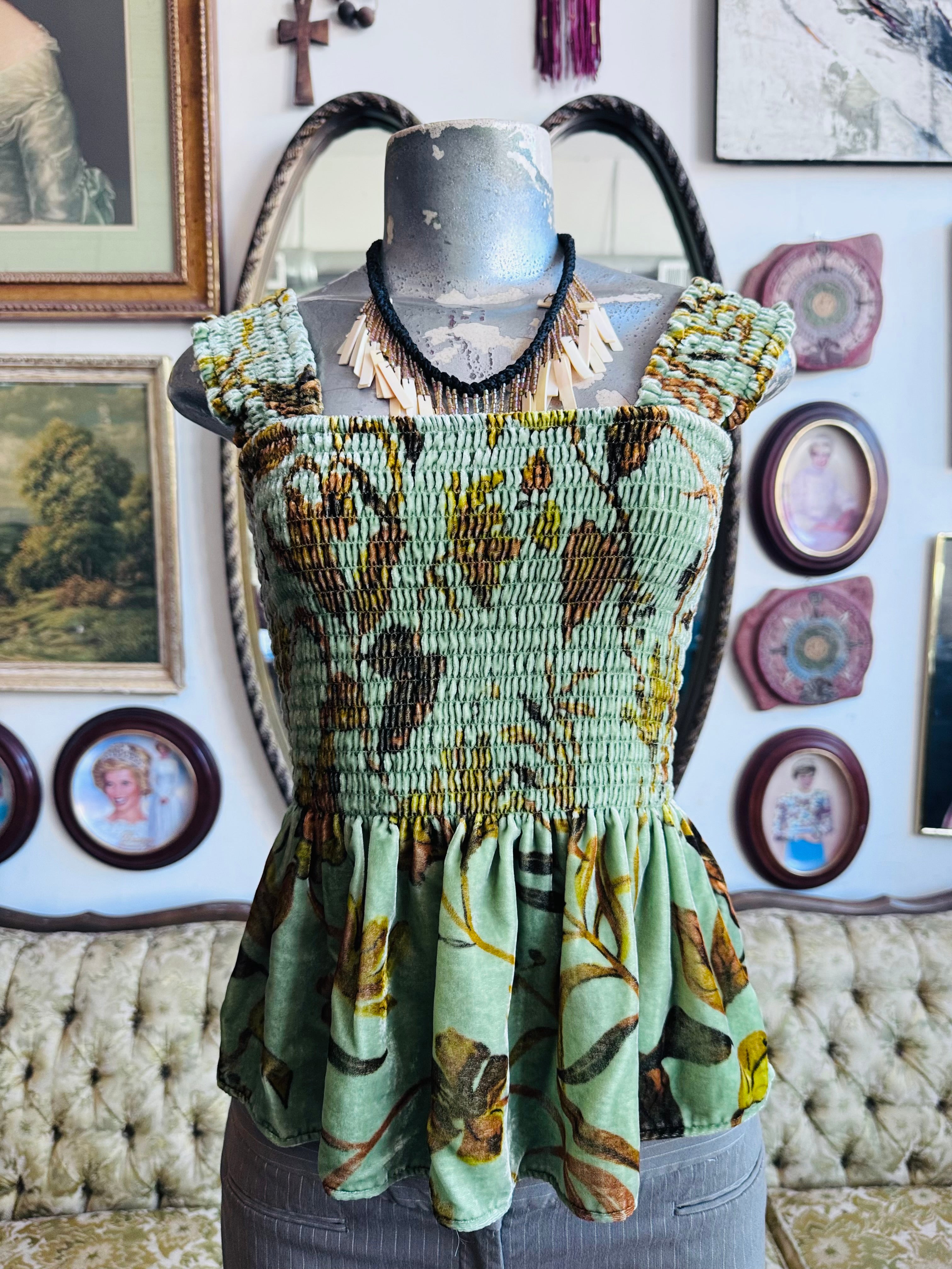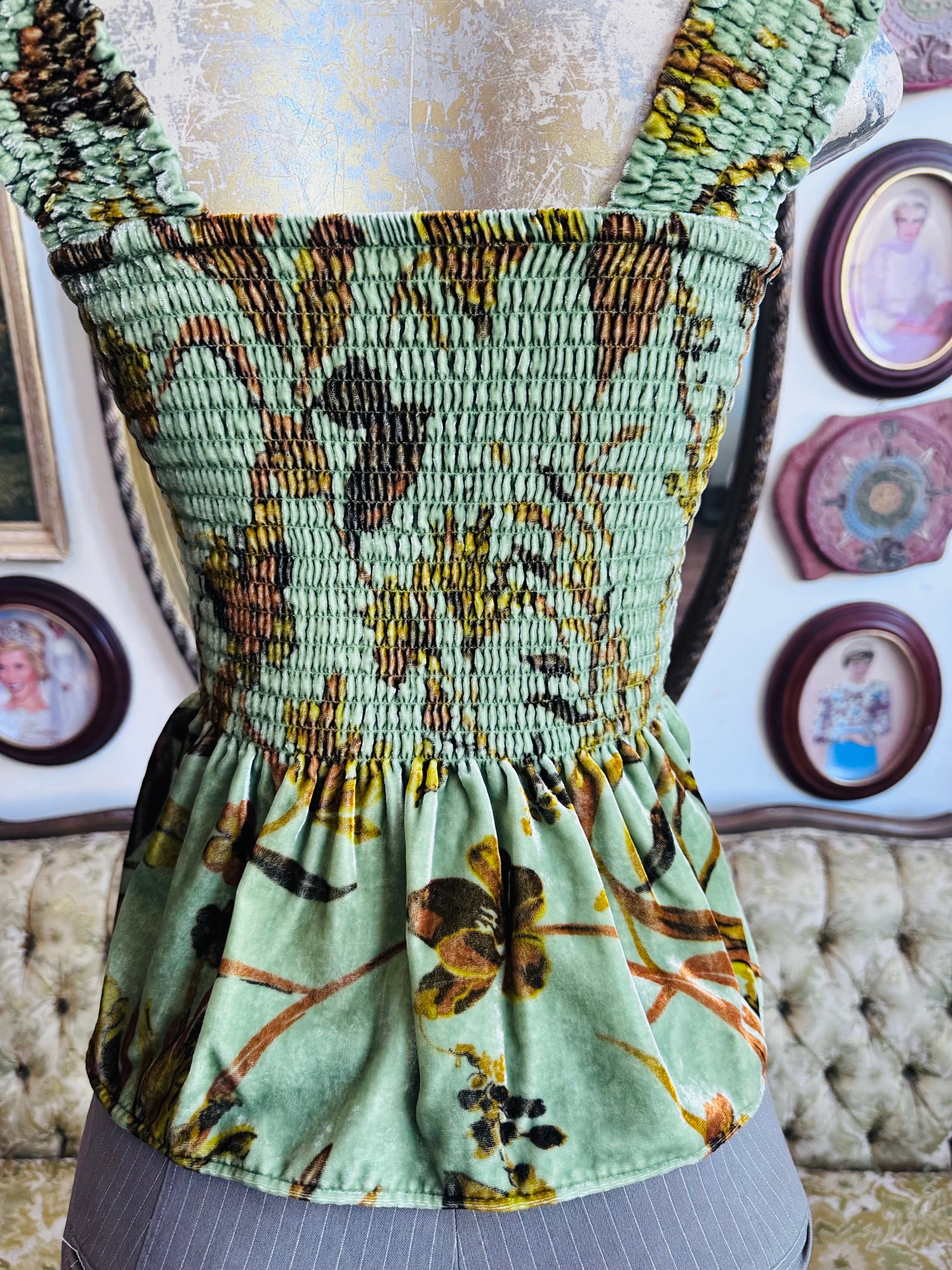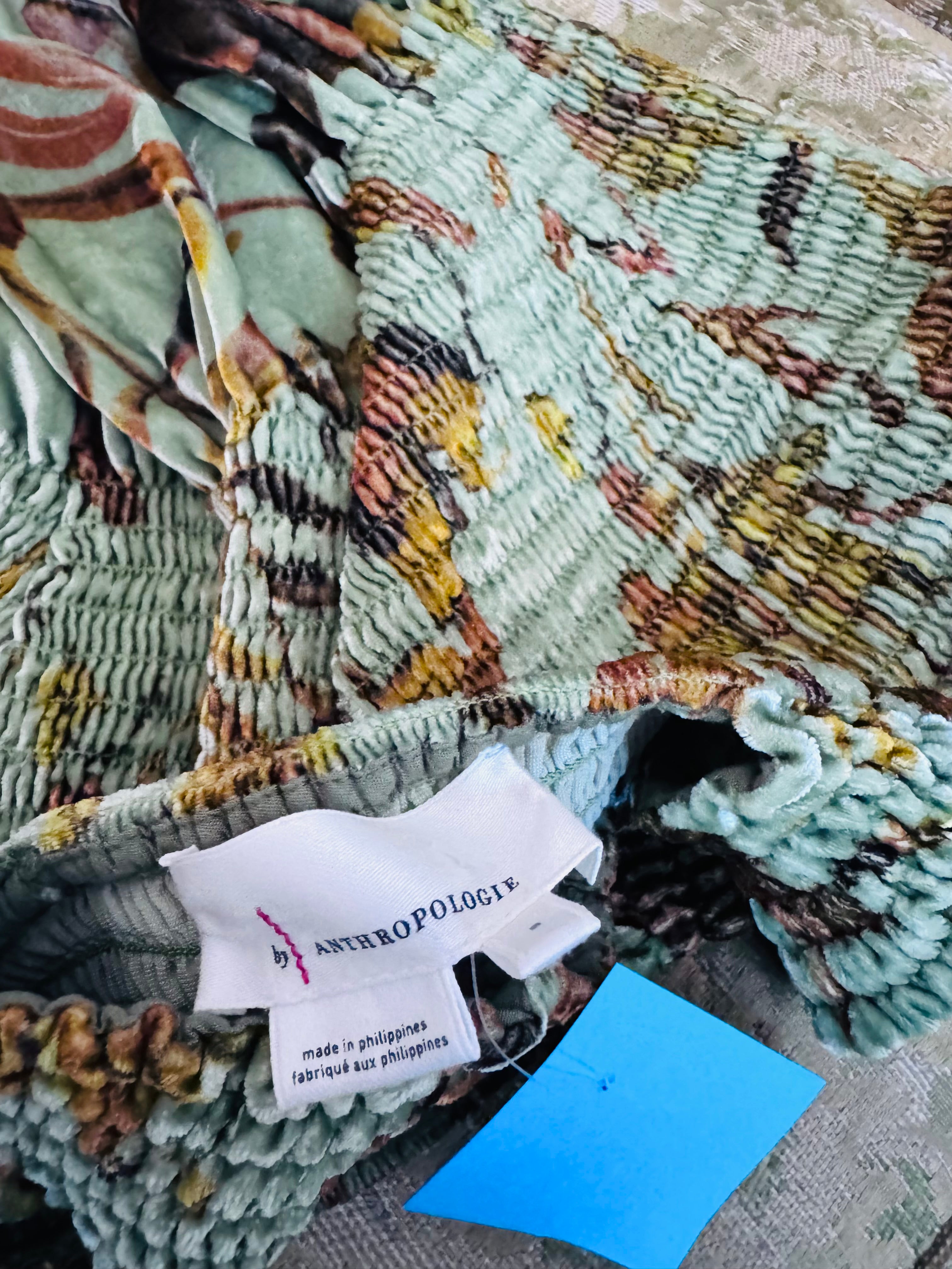 Anthropology Smocked Velvet Sage Baby Doll Top Size Small