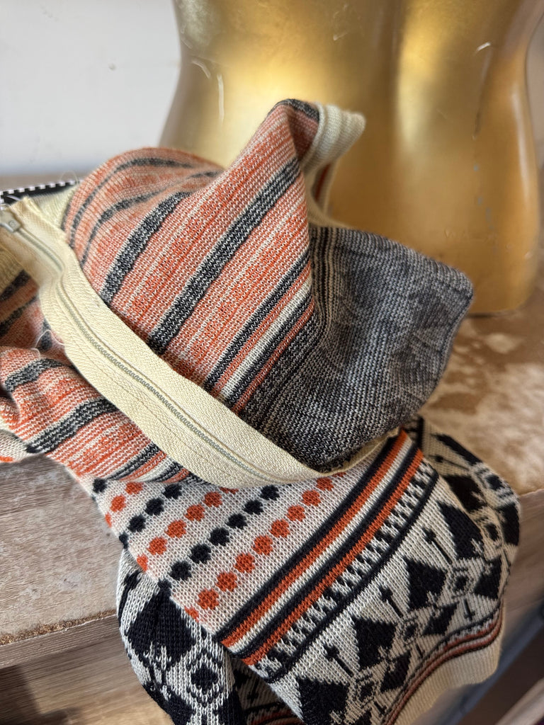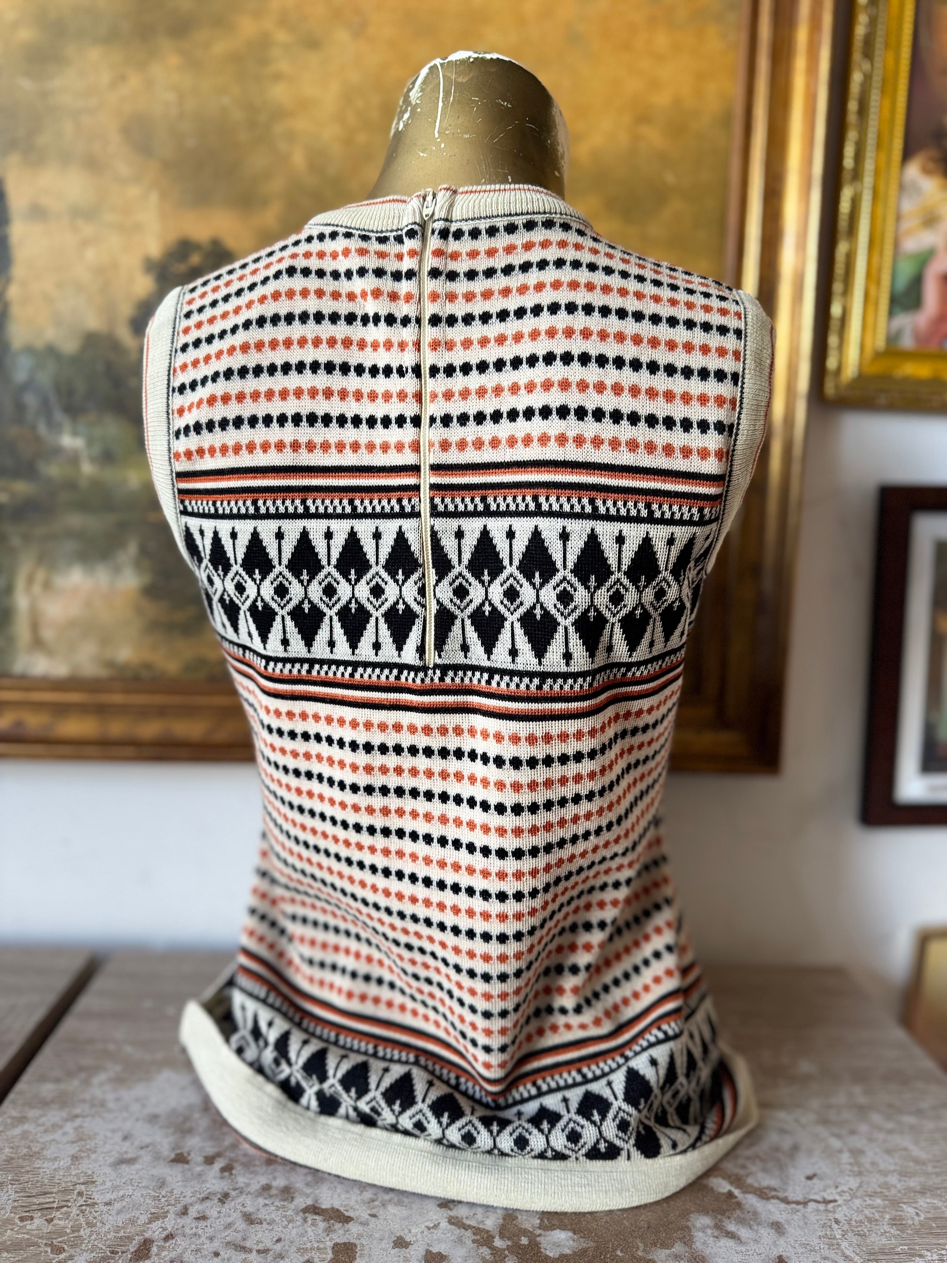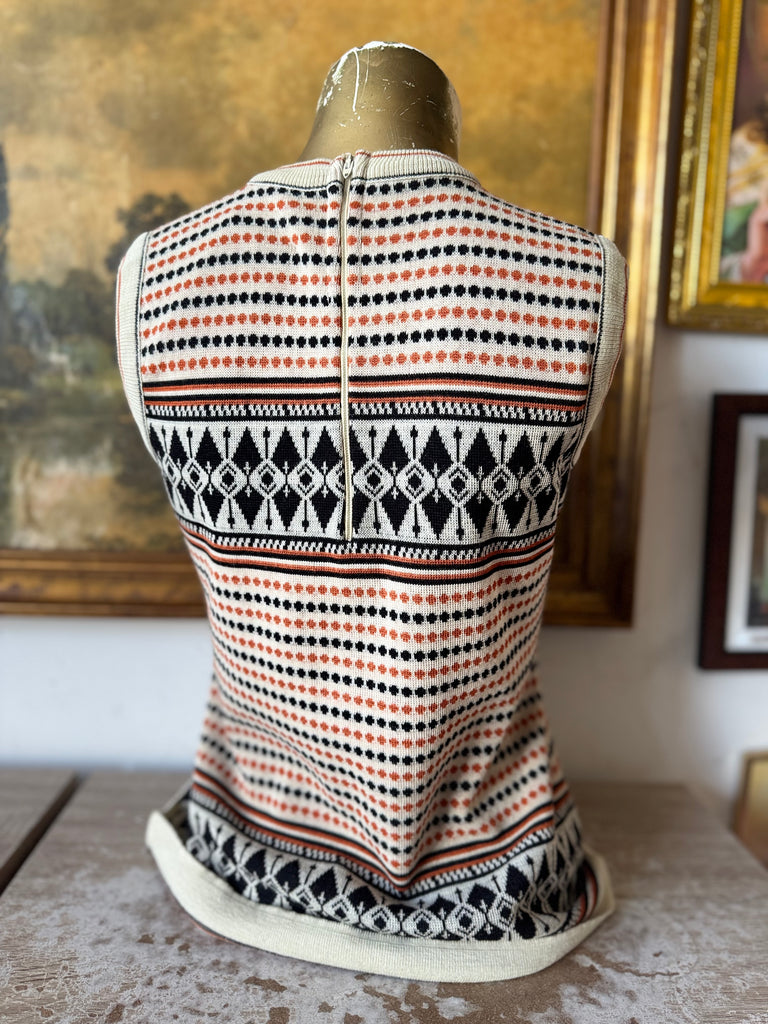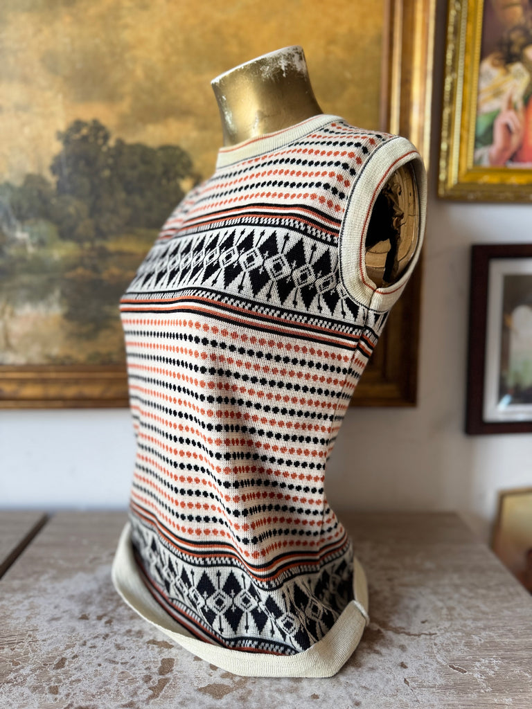 Vintage 70s Cream Orange Black Knit Tank Top Size M