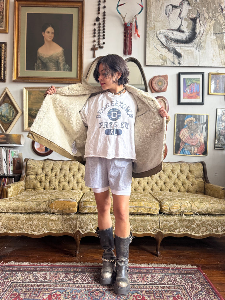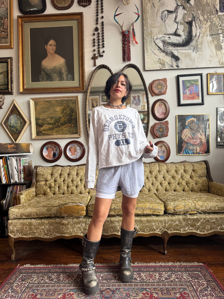 Vintage Georgetown Physical Education White Crop Sweatshirt Size Large
