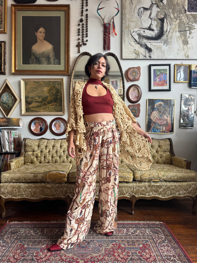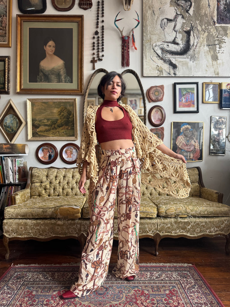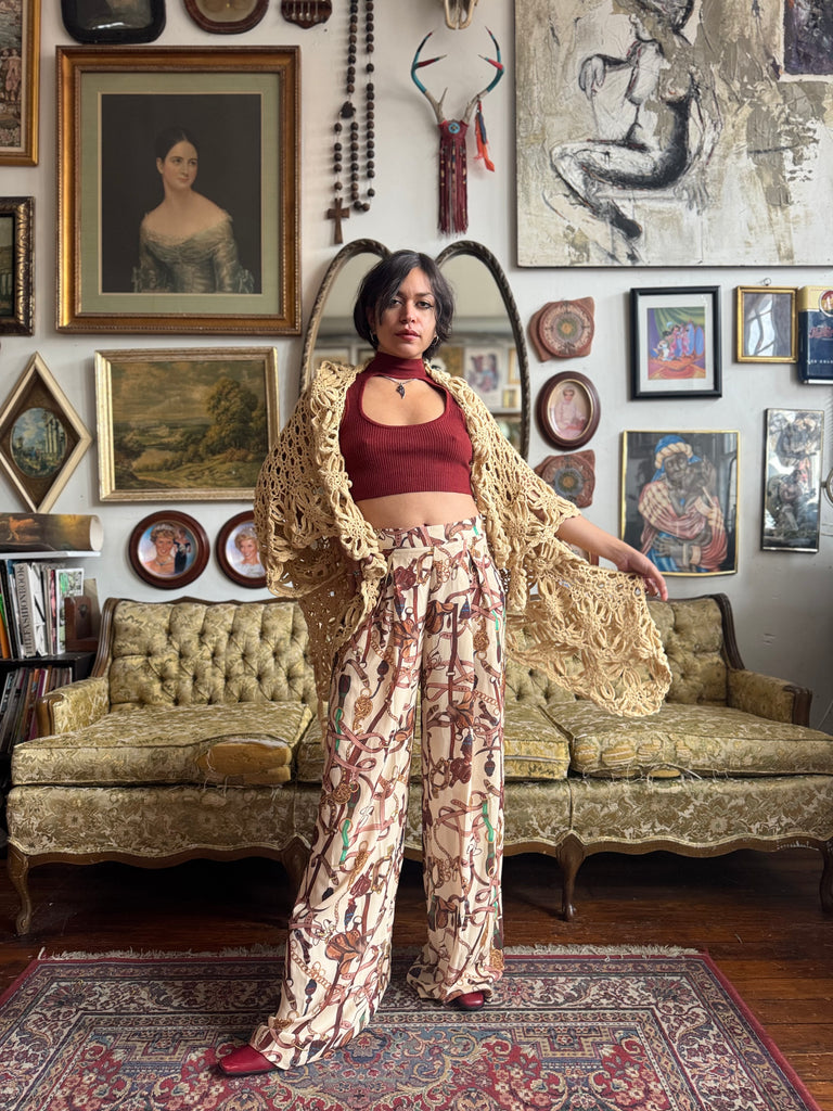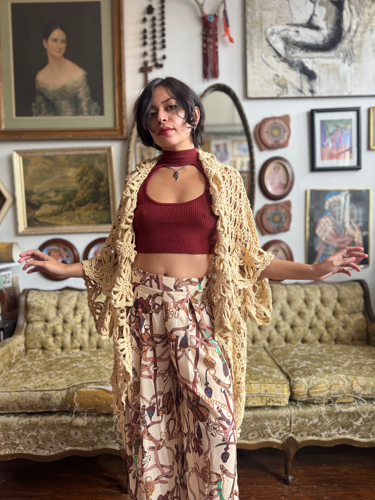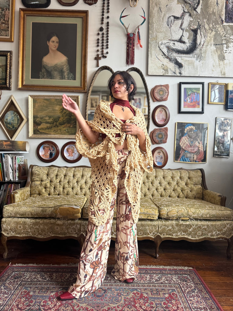 VTG Boho Light Yellow Knit Daisy Shawl w Arm Openings by Cami One Size Fits Most